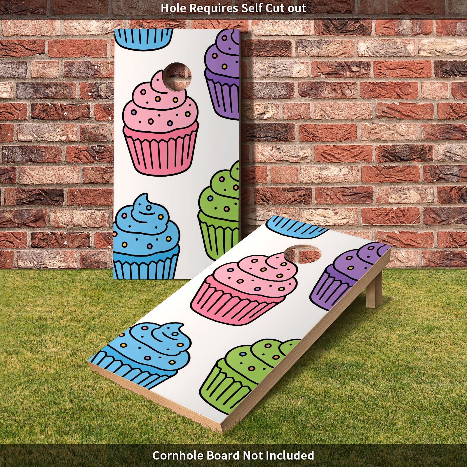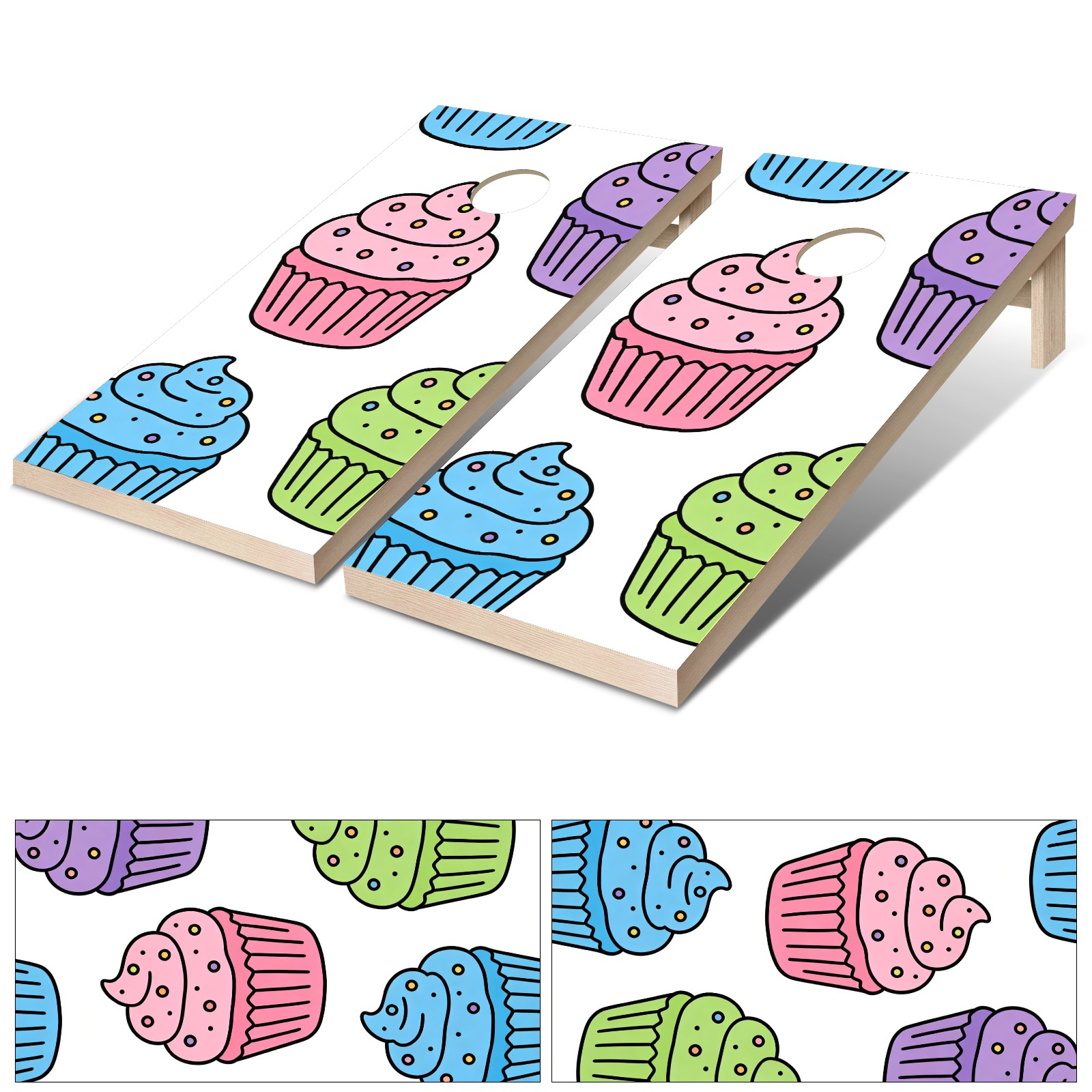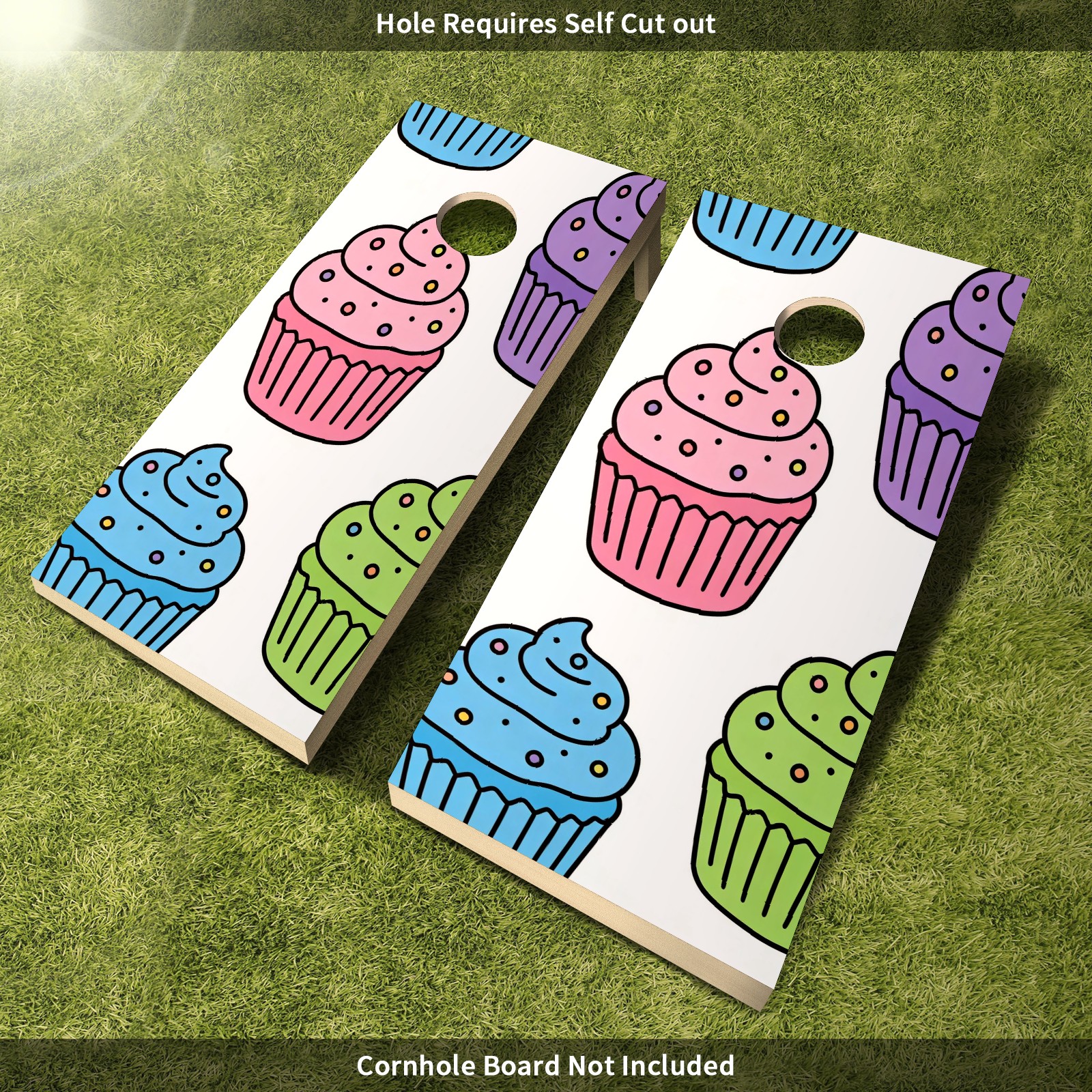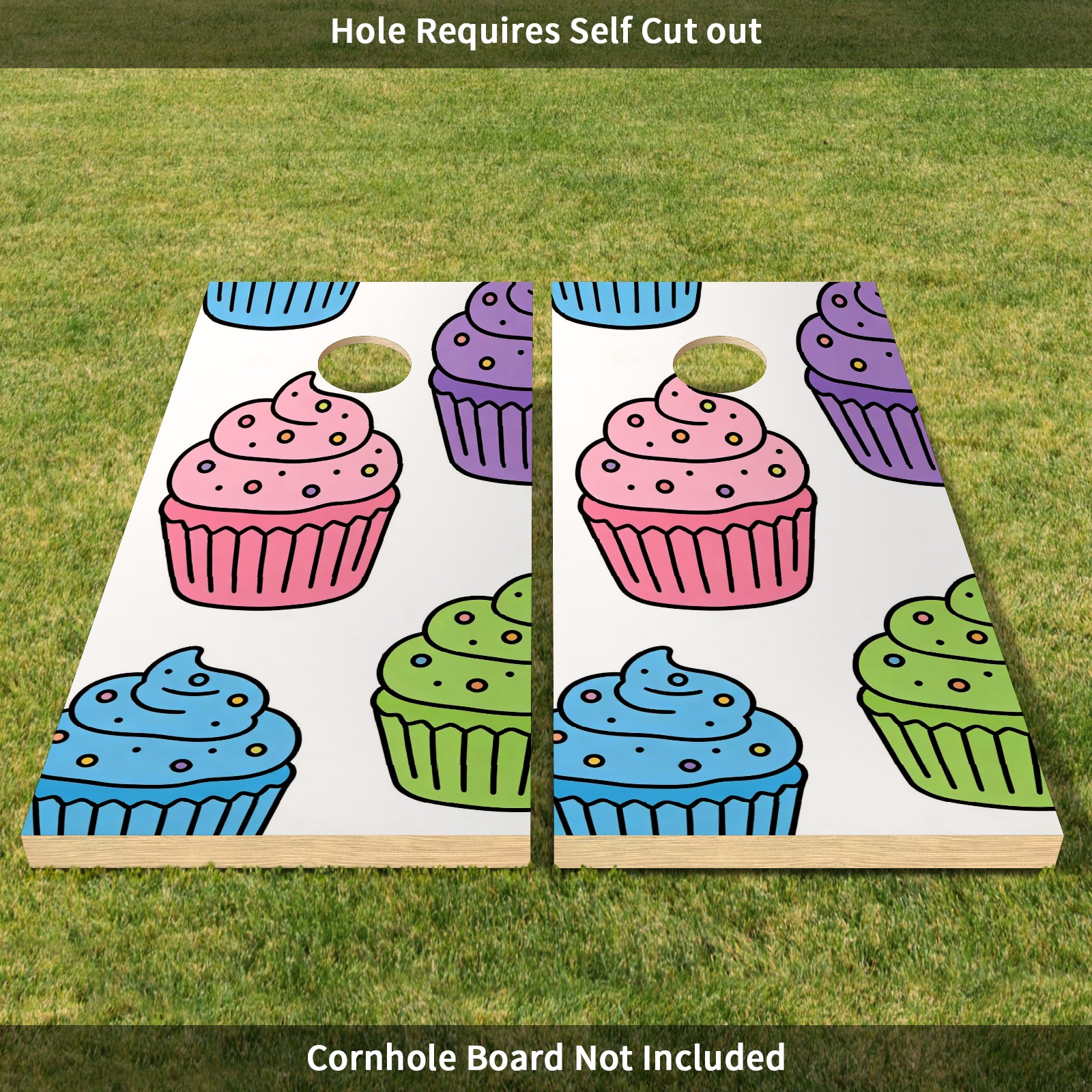 Portable 4x2 Ft Cornhole Boards Set with Two-piece Game Sticker(Decals ONLY), Easy to Apply - Corn Hole Games for Adults Outdoor Bean Bag Toss Game Colorful Cake Pattern