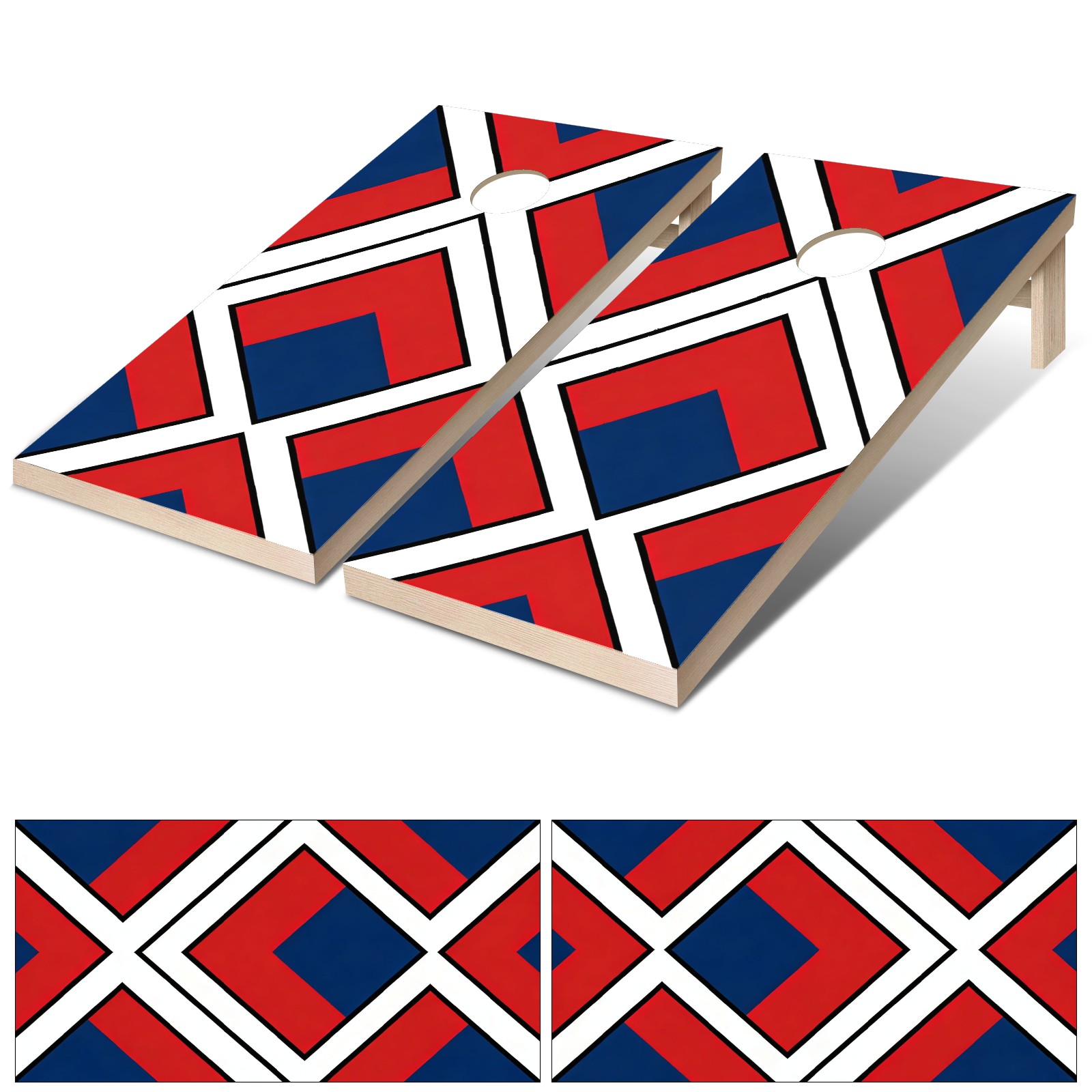 Portable 4x2 Ft Cornhole Boards Set with Two-piece Game Sticker(Decals ONLY), Easy to Apply - Corn Hole Games for Adults Outdoor Bean Bag Toss Game Red Blue Plaid Pattern