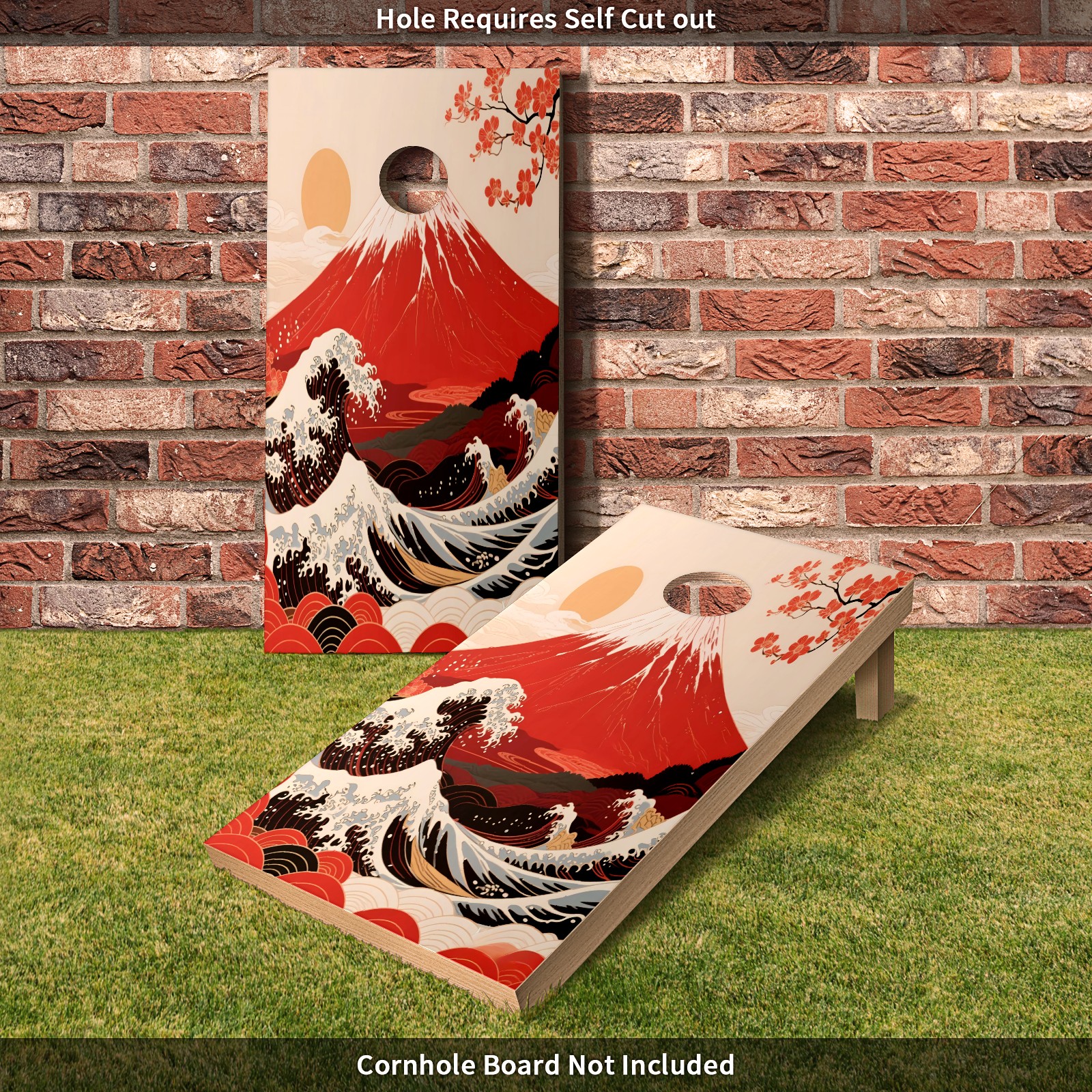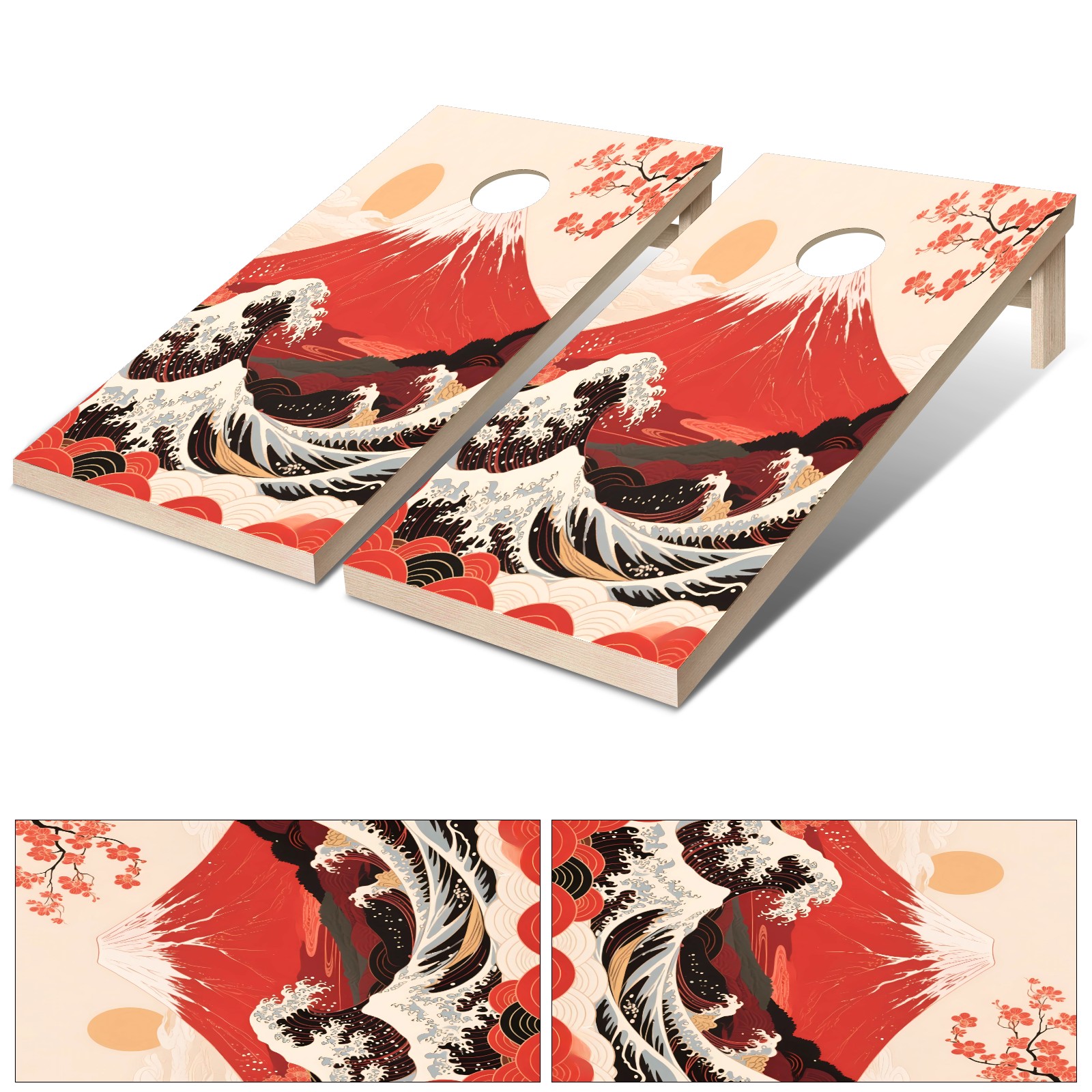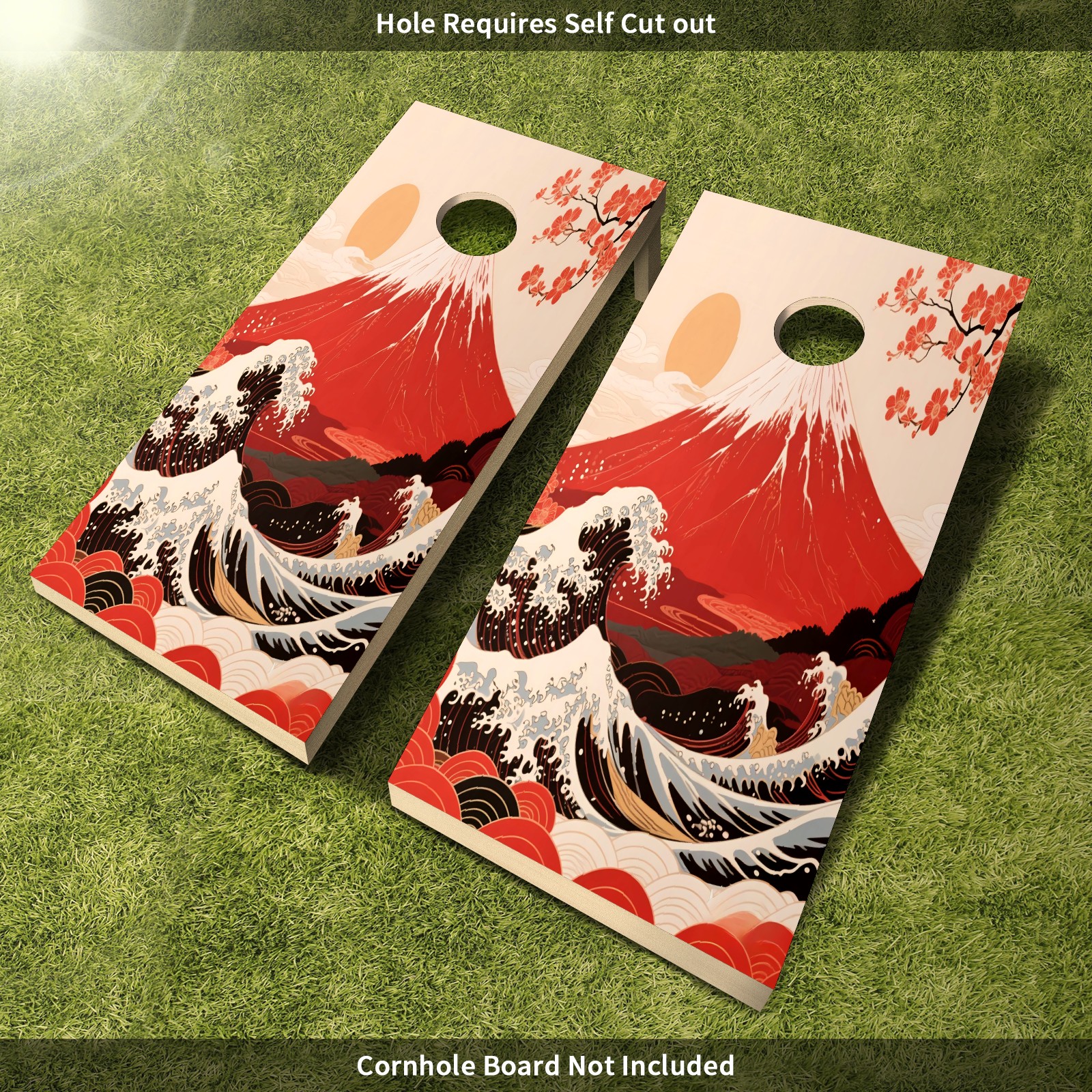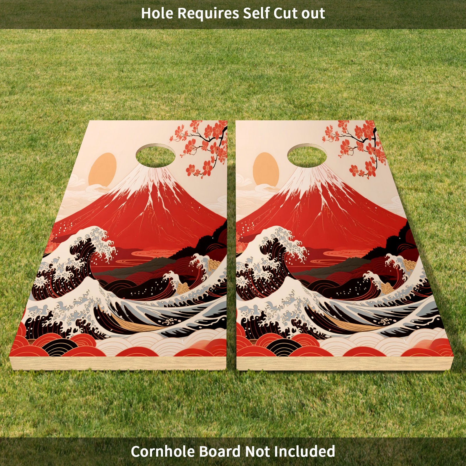Portable 4x2 Ft Cornhole Boards Set with Two-piece Game Sticker(Decals ONLY), Easy to Apply - Corn Hole Games for Adults Outdoor Bean Bag Toss Game Mountain (1) (1)