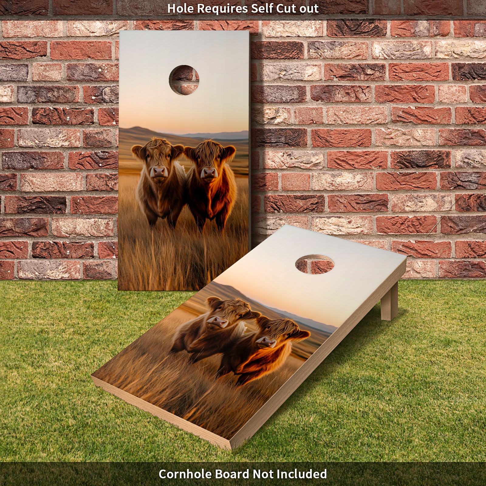 Portable 4x2 Ft Cornhole Boards Set with Two-piece Game Sticker(Decals ONLY), Easy to Apply - Corn Hole Games for Adults Outdoor Bean Bag Toss Game Cow Pattern (1)