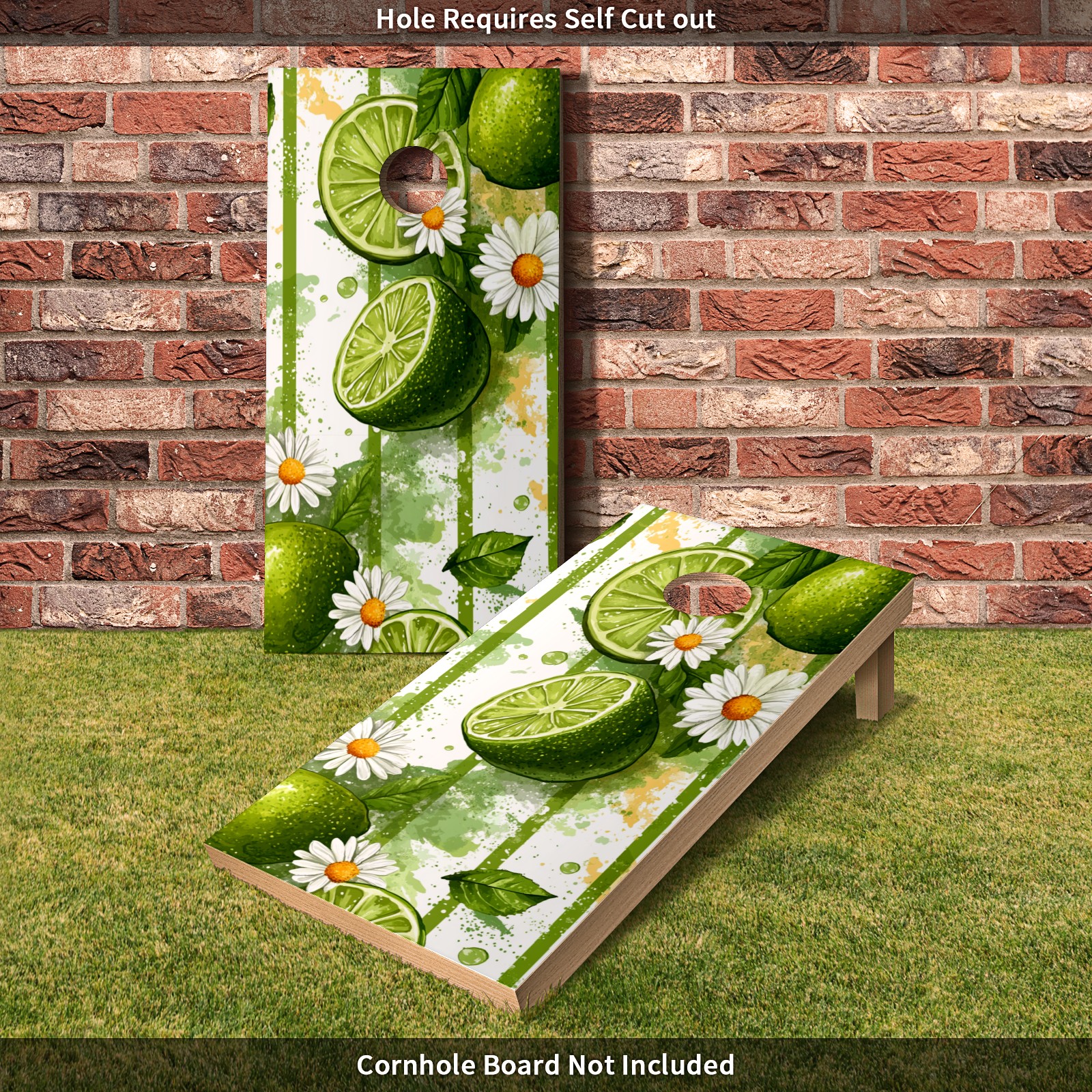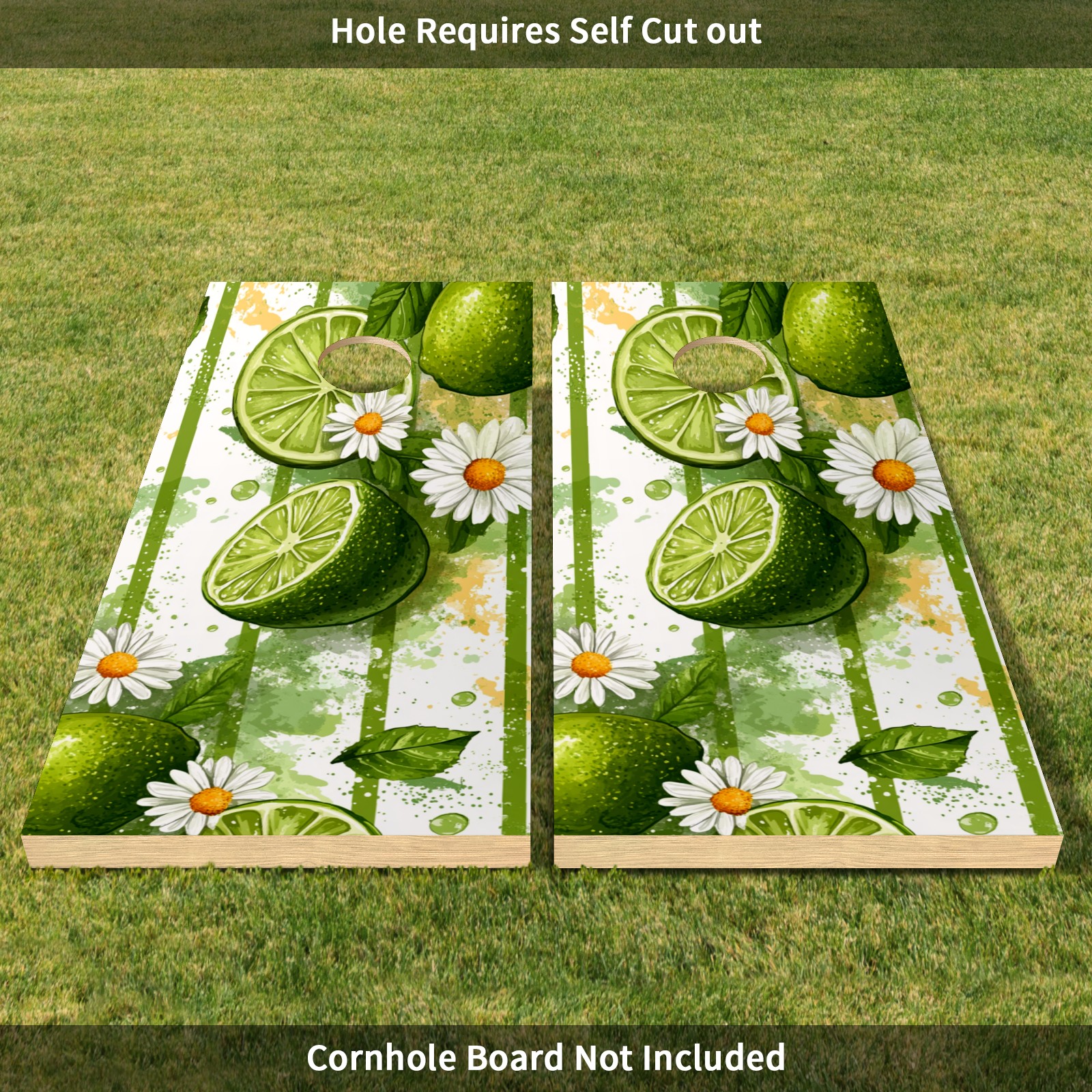 Portable 4x2 Ft Cornhole Boards Set with Two-piece Game Sticker(Decals ONLY), Easy to Apply - Corn Hole Games for Adults Outdoor Bean Bag Toss Game Lime Daisy Pattern3