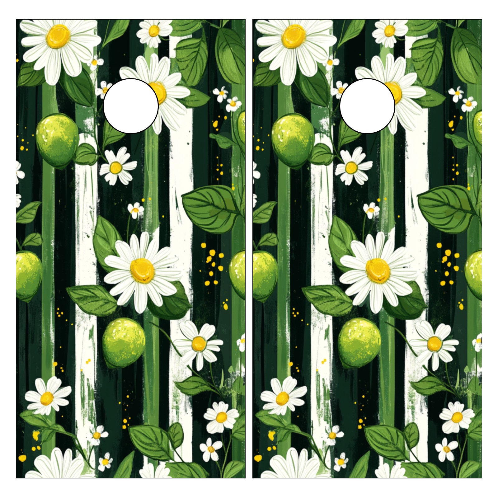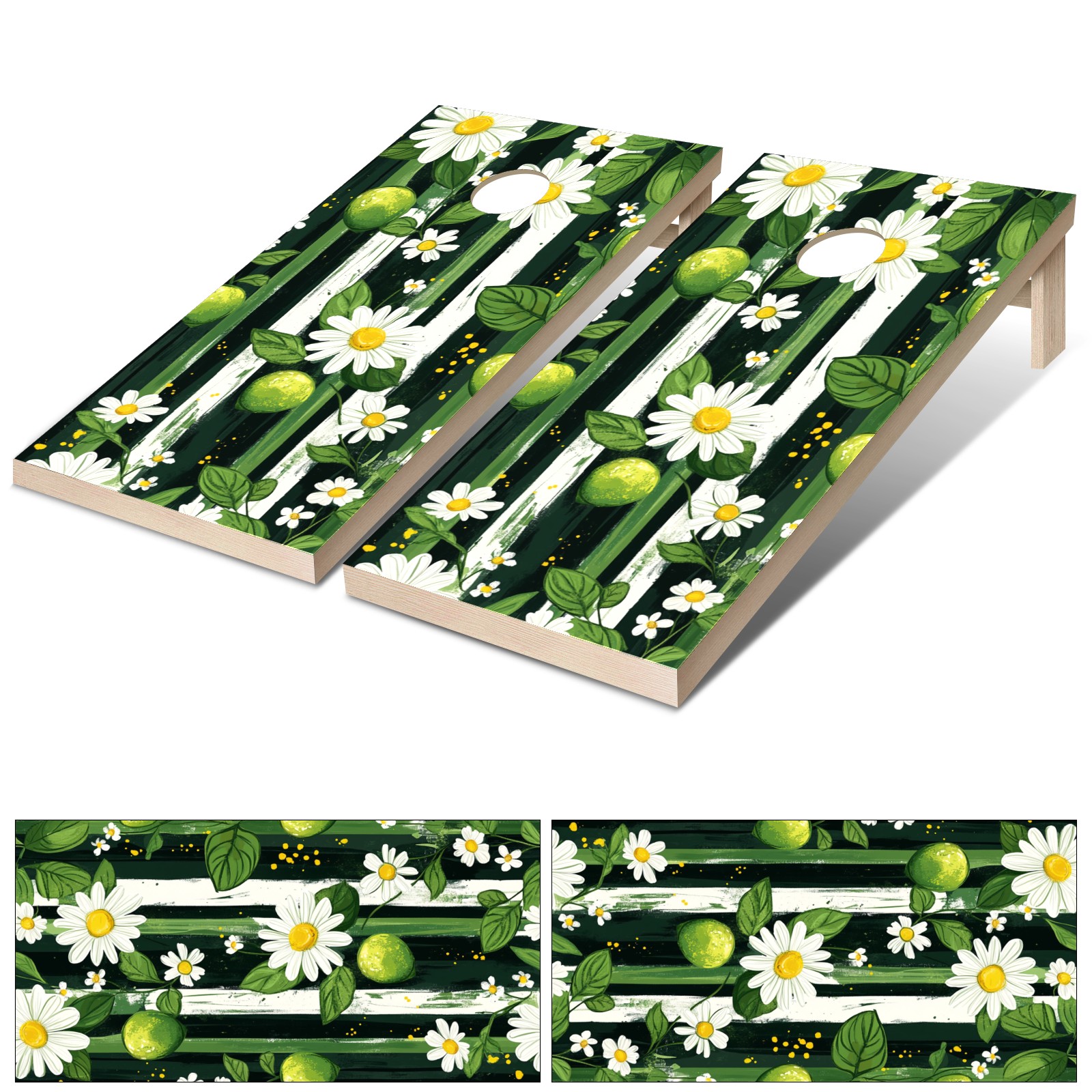 Portable 4x2 Ft Cornhole Boards Set with Two-piece Game Sticker(Decals ONLY), Easy to Apply - Corn Hole Games for Adults Outdoor Bean Bag Toss Game Lime Daisy Pattern1