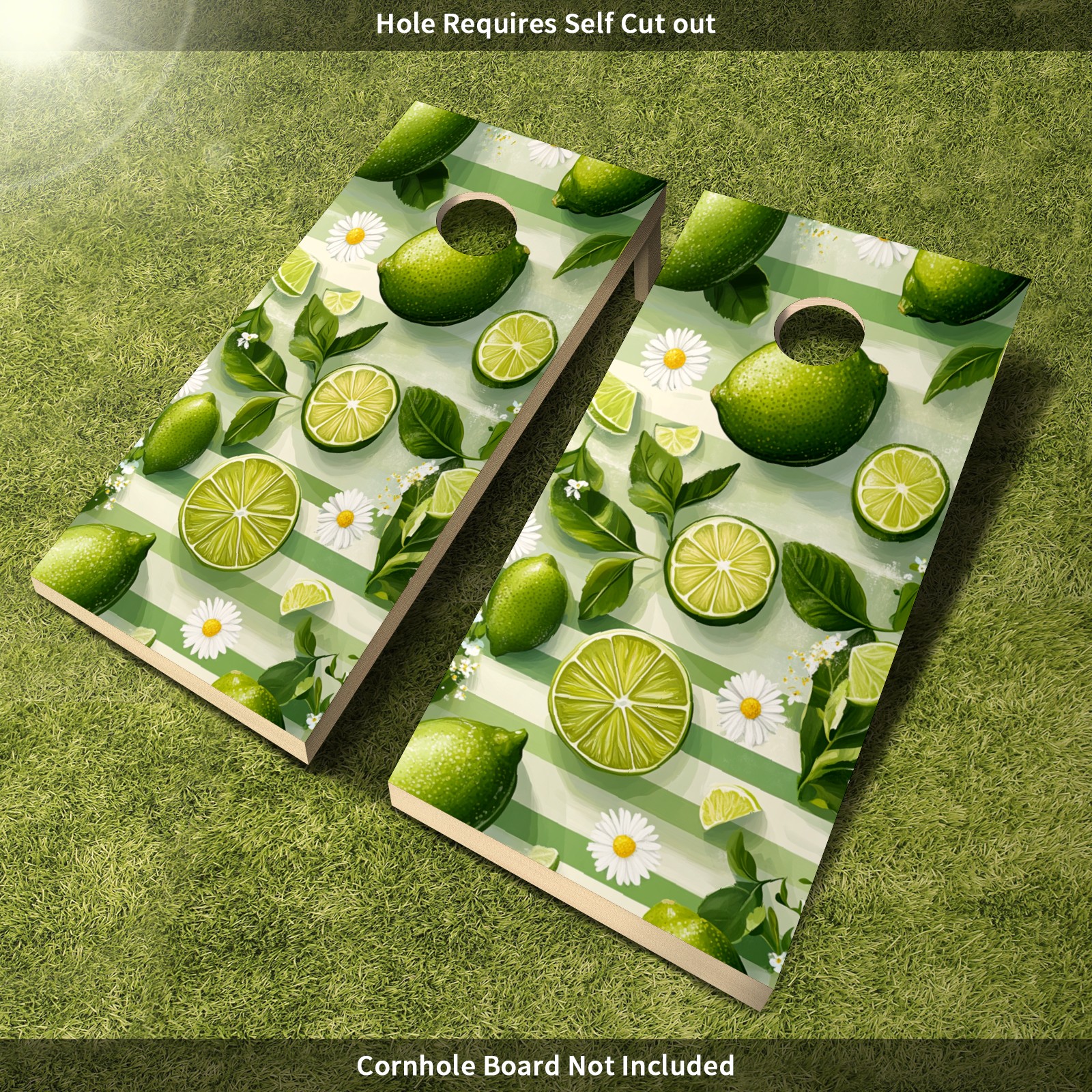 Portable 4x2 Ft Cornhole Boards Set with Two-piece Game Sticker(Decals ONLY), Easy to Apply - Corn Hole Games for Adults Outdoor Bean Bag Toss Game Lime Daisy Pattern7