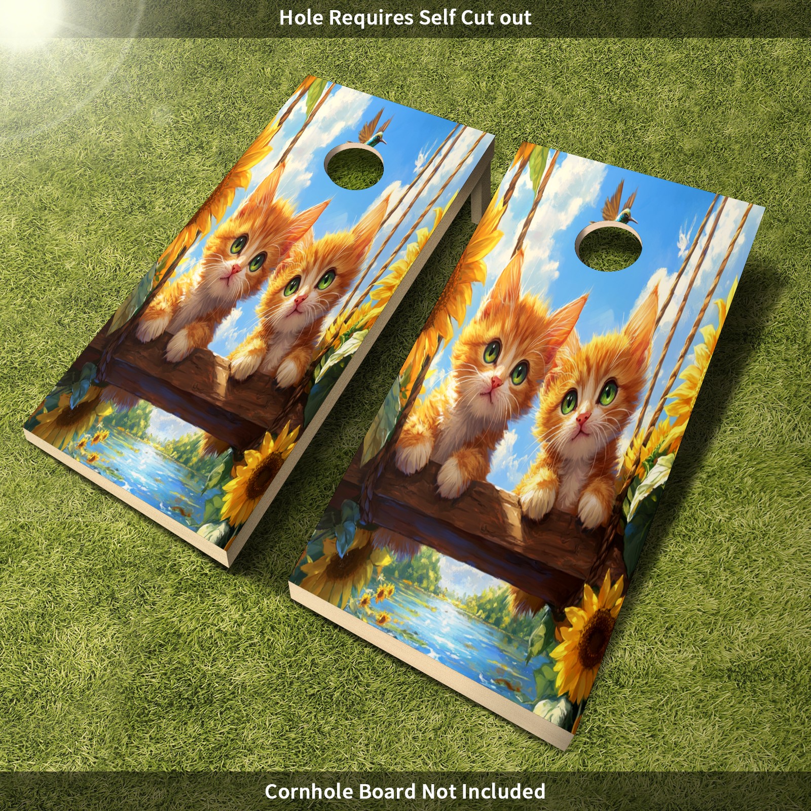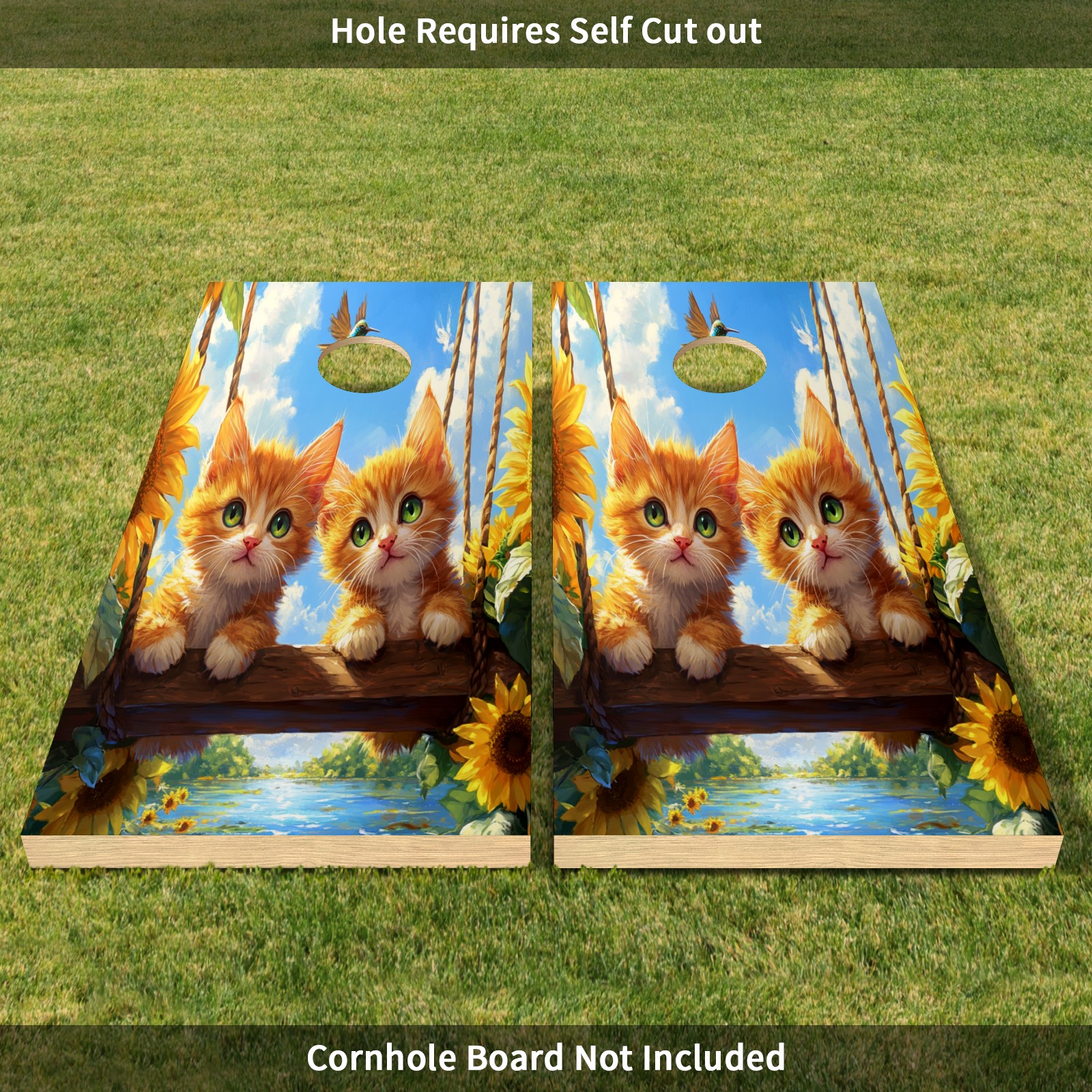 Portable 4x2 Ft Cornhole Boards Set with Two-piece Game Sticker(Decals ONLY), Easy to Apply - Corn Hole Games for Adults Outdoor Bean Bag Toss Game Cat Swing Pattern