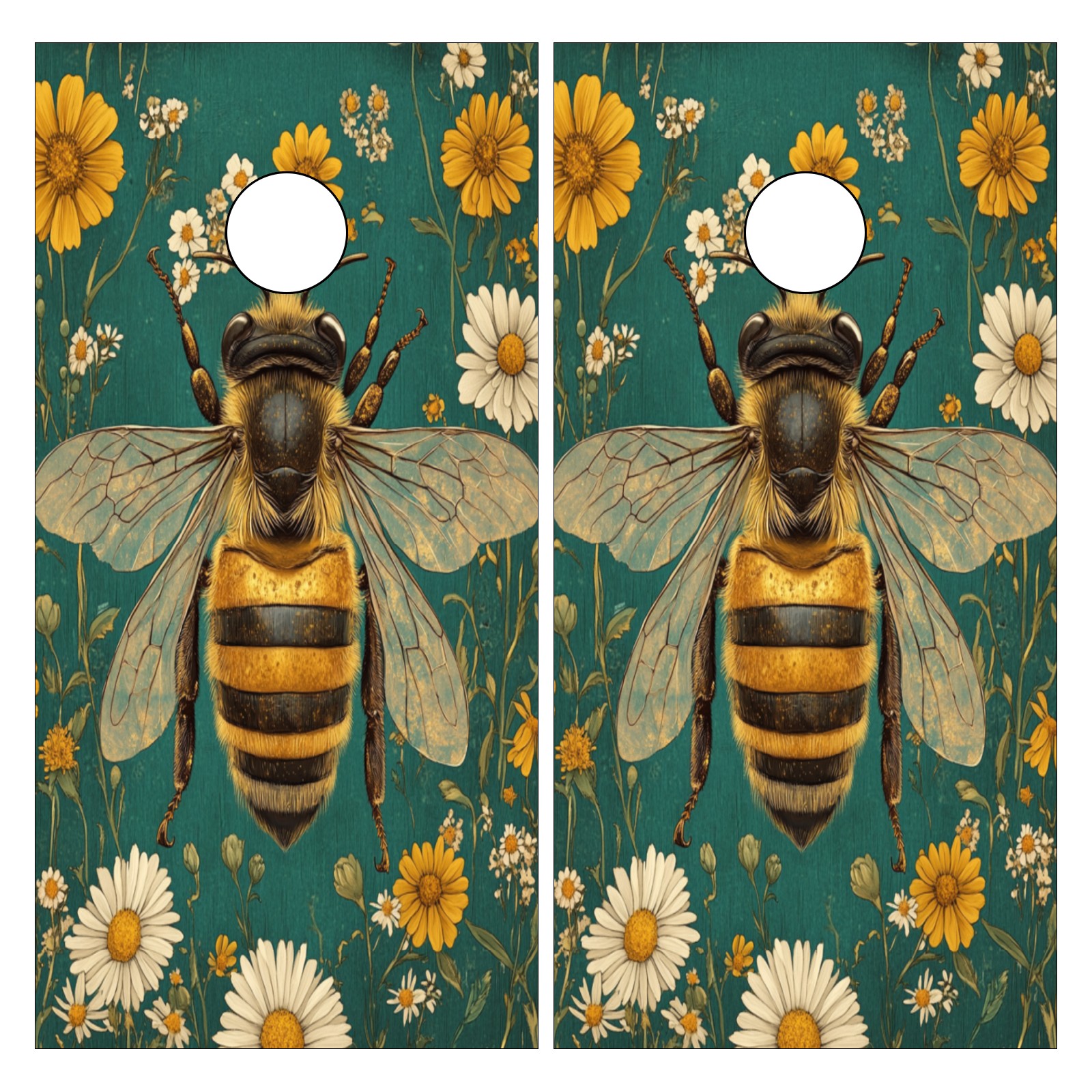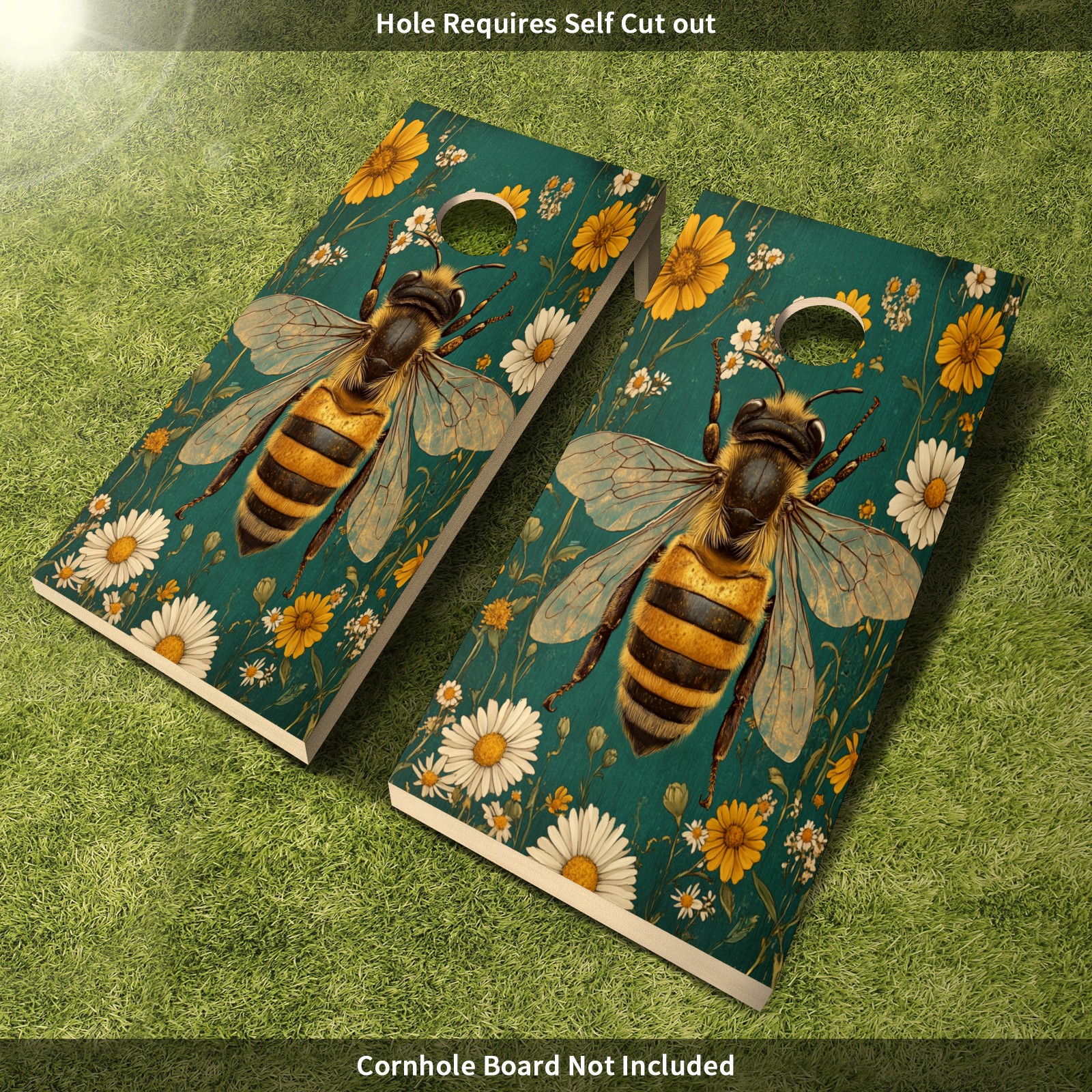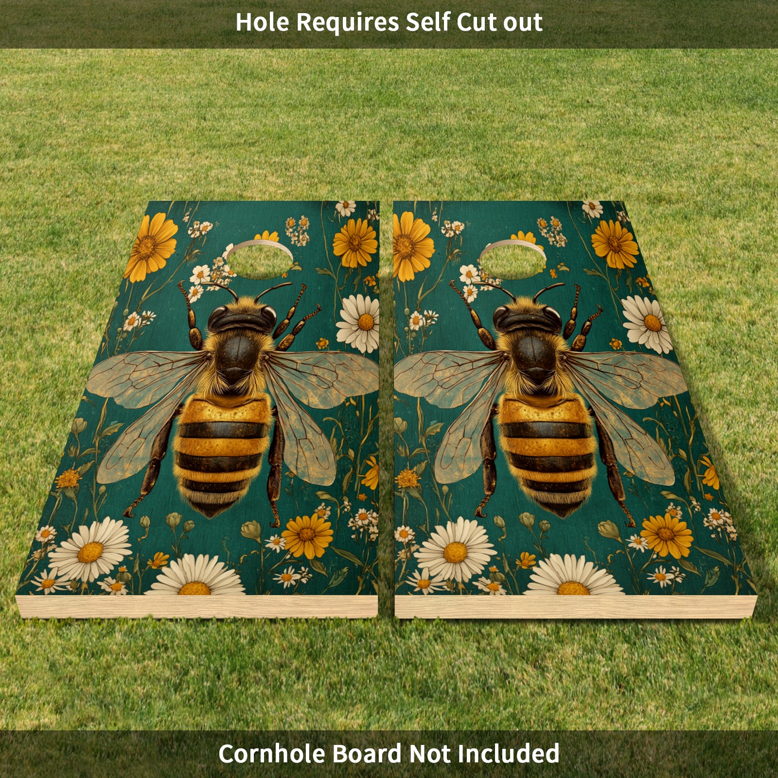 Portable 4x2 Ft Cornhole Boards Set with Two-piece Game Sticker(Decals ONLY), Easy to Apply - Corn Hole Games for Adults Outdoor Bean Bag Toss Game Big Bee Pattern2