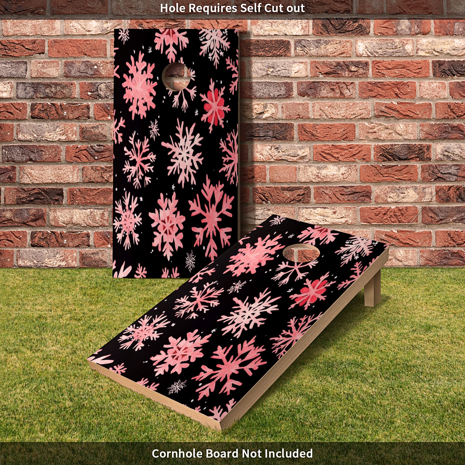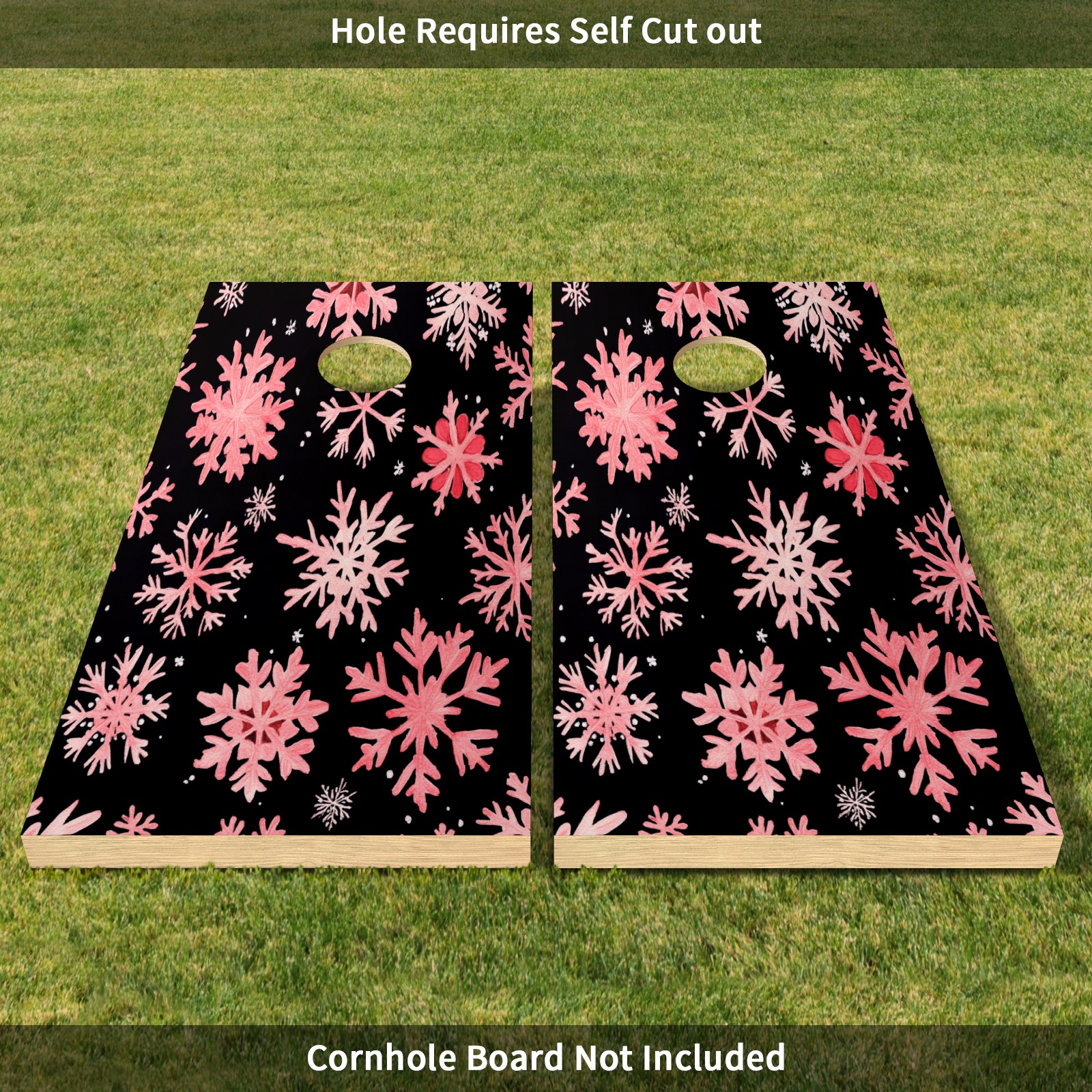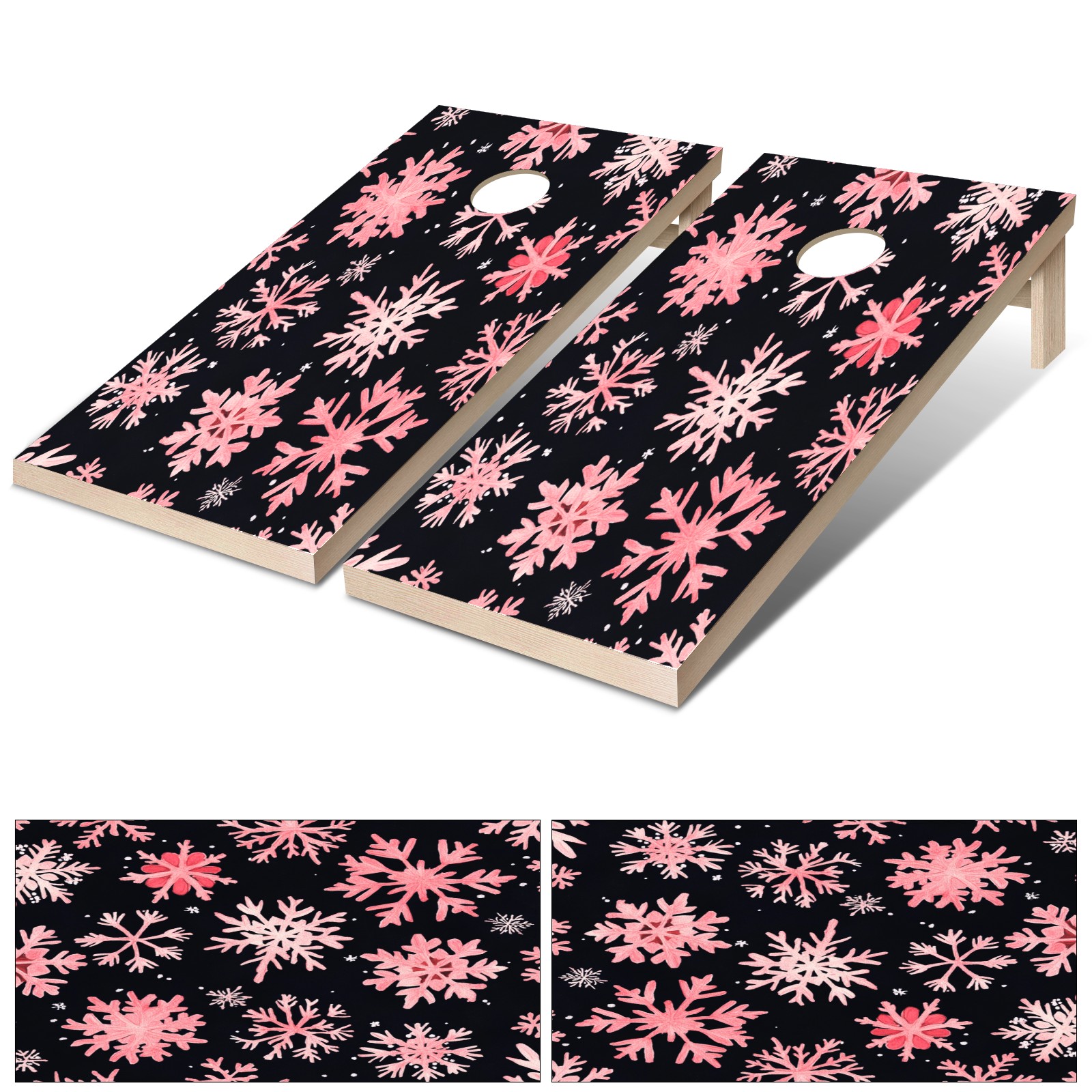 Portable 4x2 Ft Cornhole Boards Set with Two-piece Game Sticker(Decals ONLY), Easy to Apply - Corn Hole Games for Adults Outdoor Bean Bag Toss Game Pink Snowflake Pattern