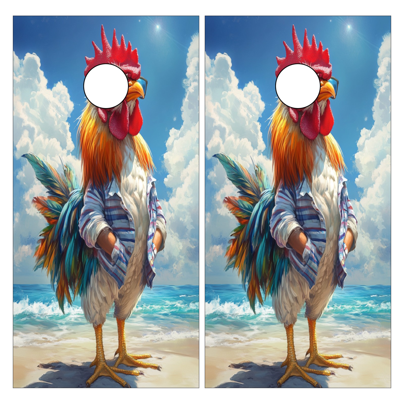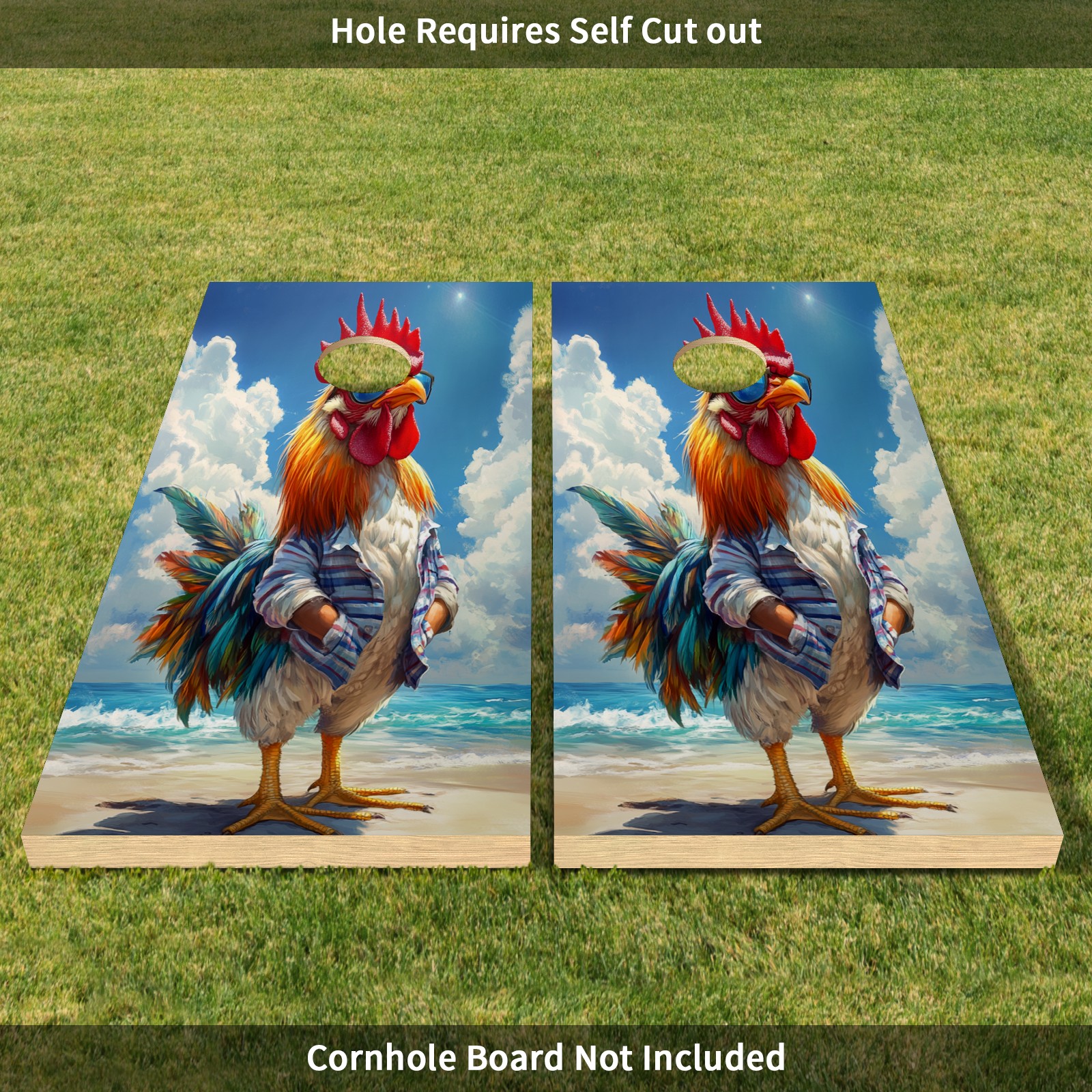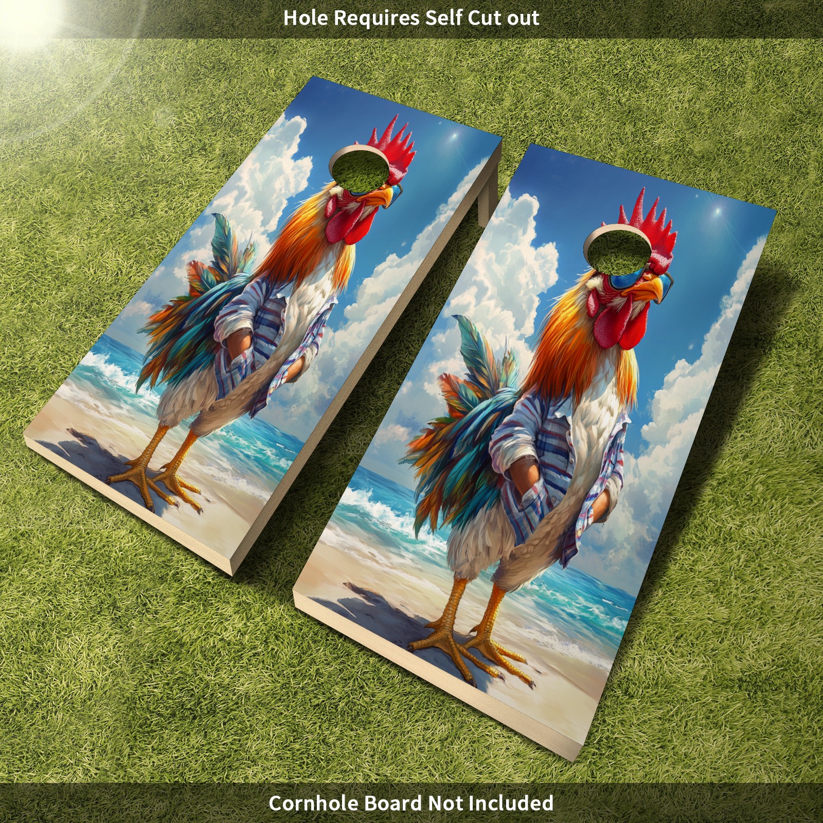 Portable 4x2 Ft Cornhole Boards Set with Two-piece Game Sticker(Decals ONLY), Easy to Apply - Corn Hole Games for Adults Outdoor Bean Bag Toss Game Rooster Pattern1