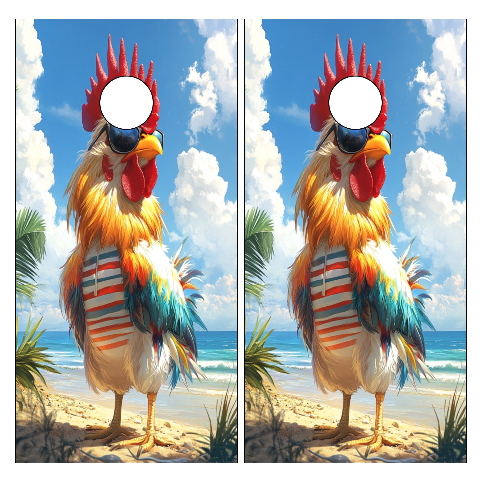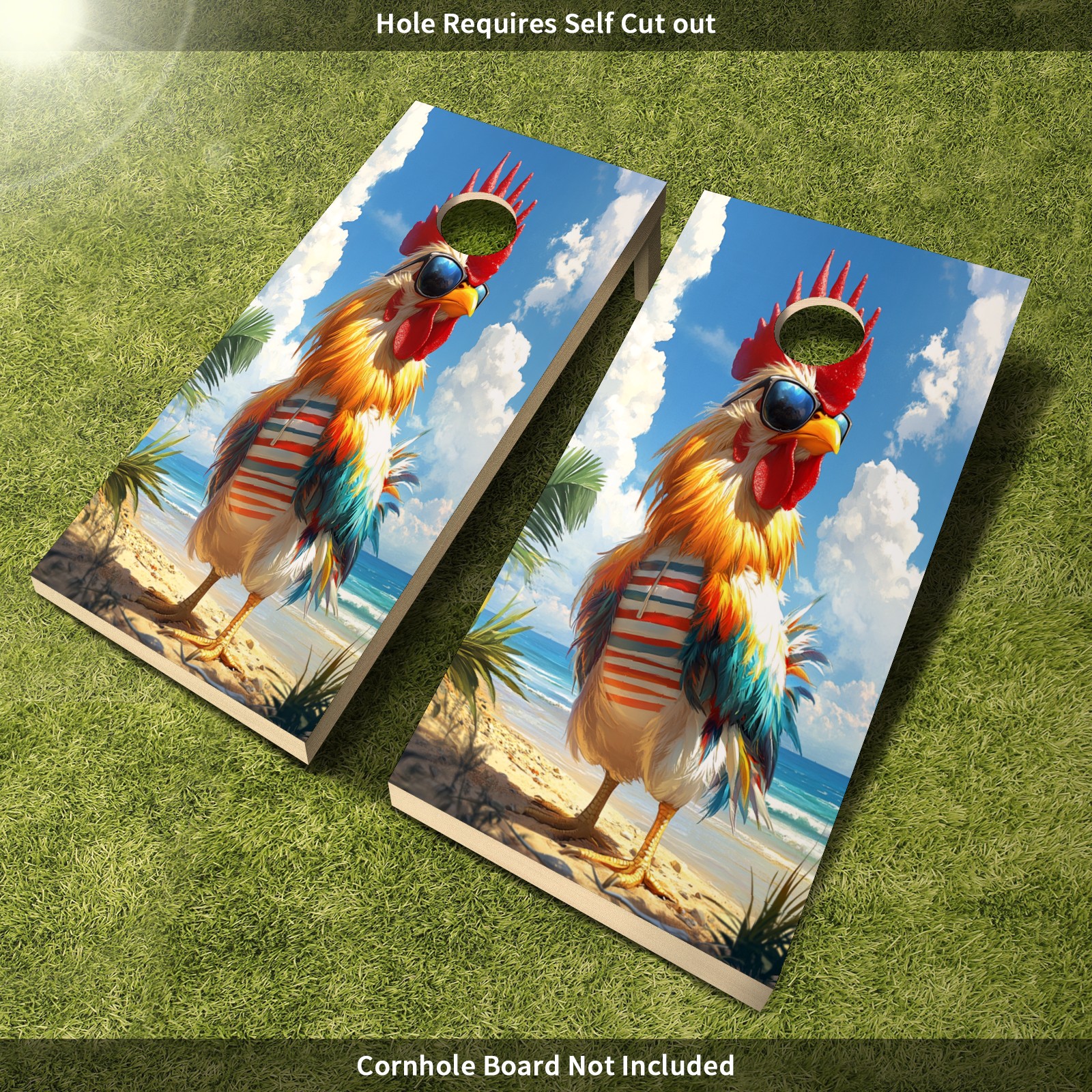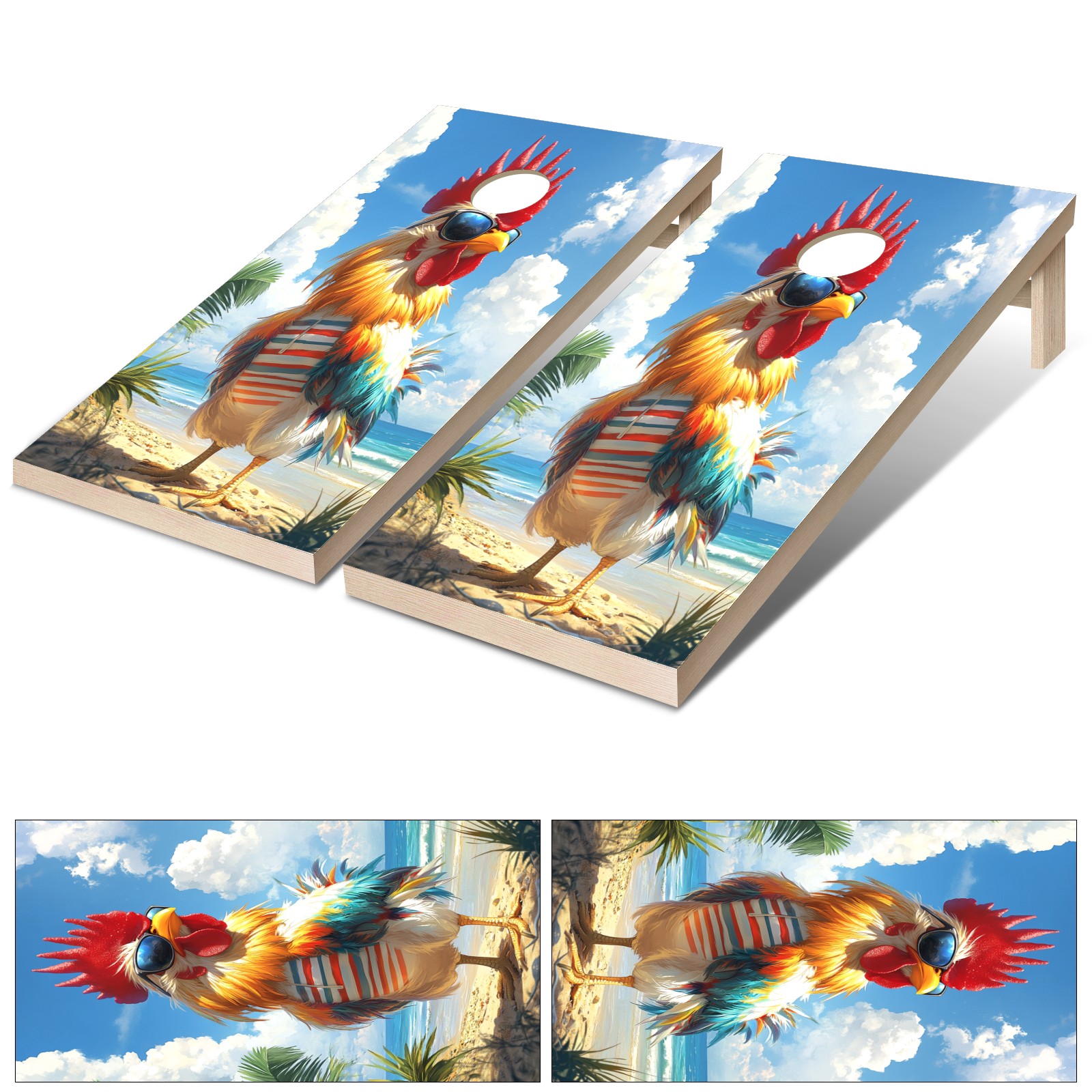 Portable 4x2 Ft Cornhole Boards Set with Two-piece Game Sticker(Decals ONLY), Easy to Apply - Corn Hole Games for Adults Outdoor Bean Bag Toss Game Rooster Pattern