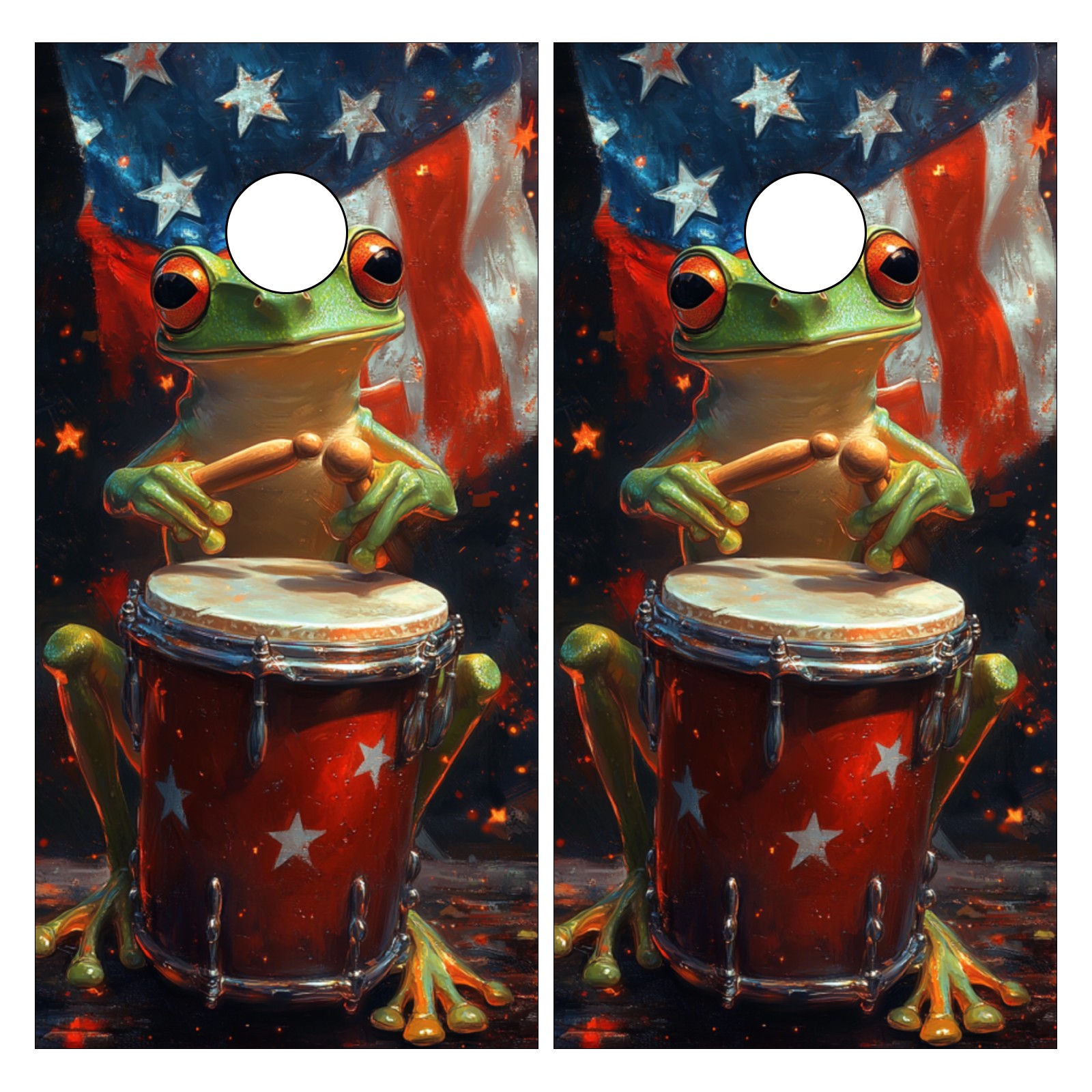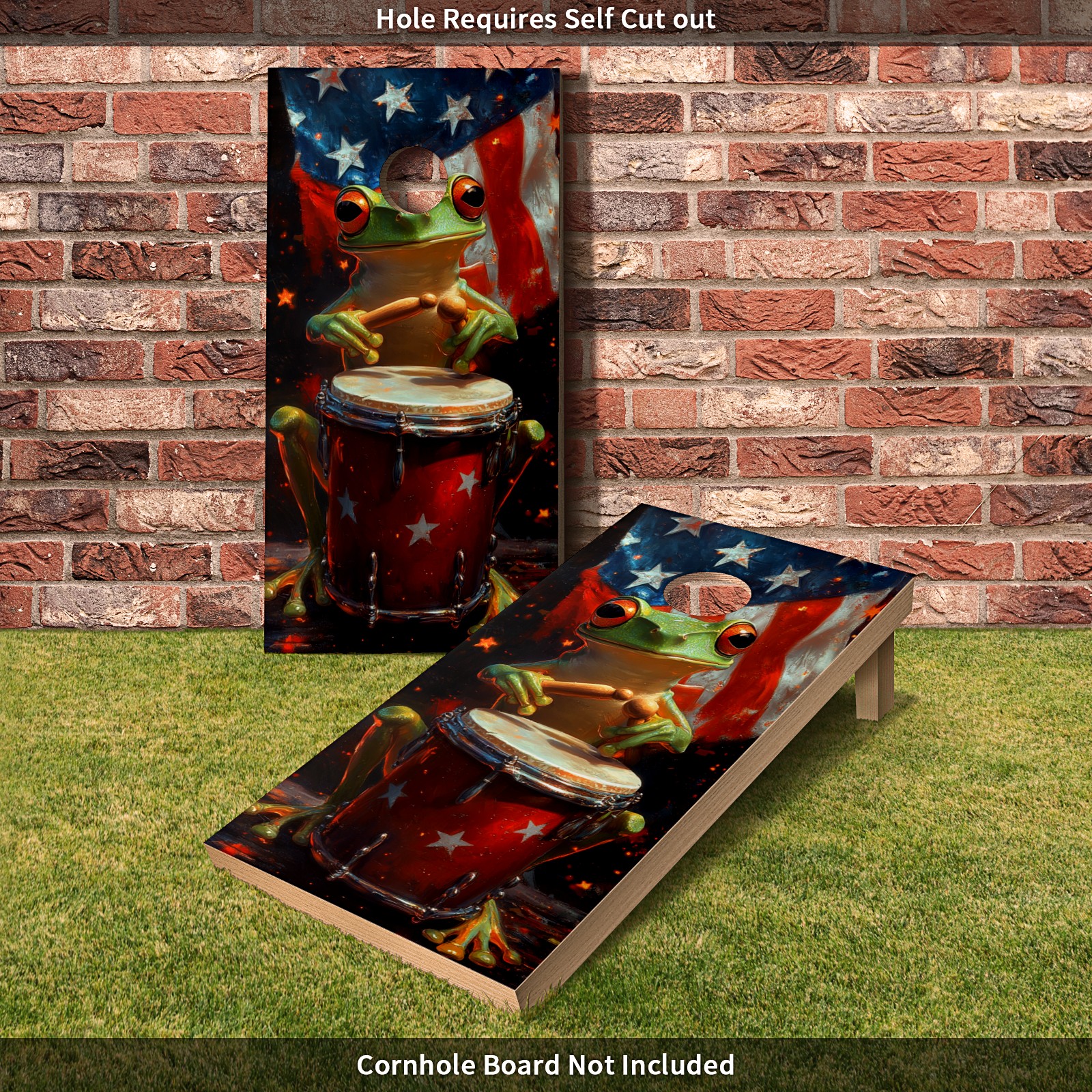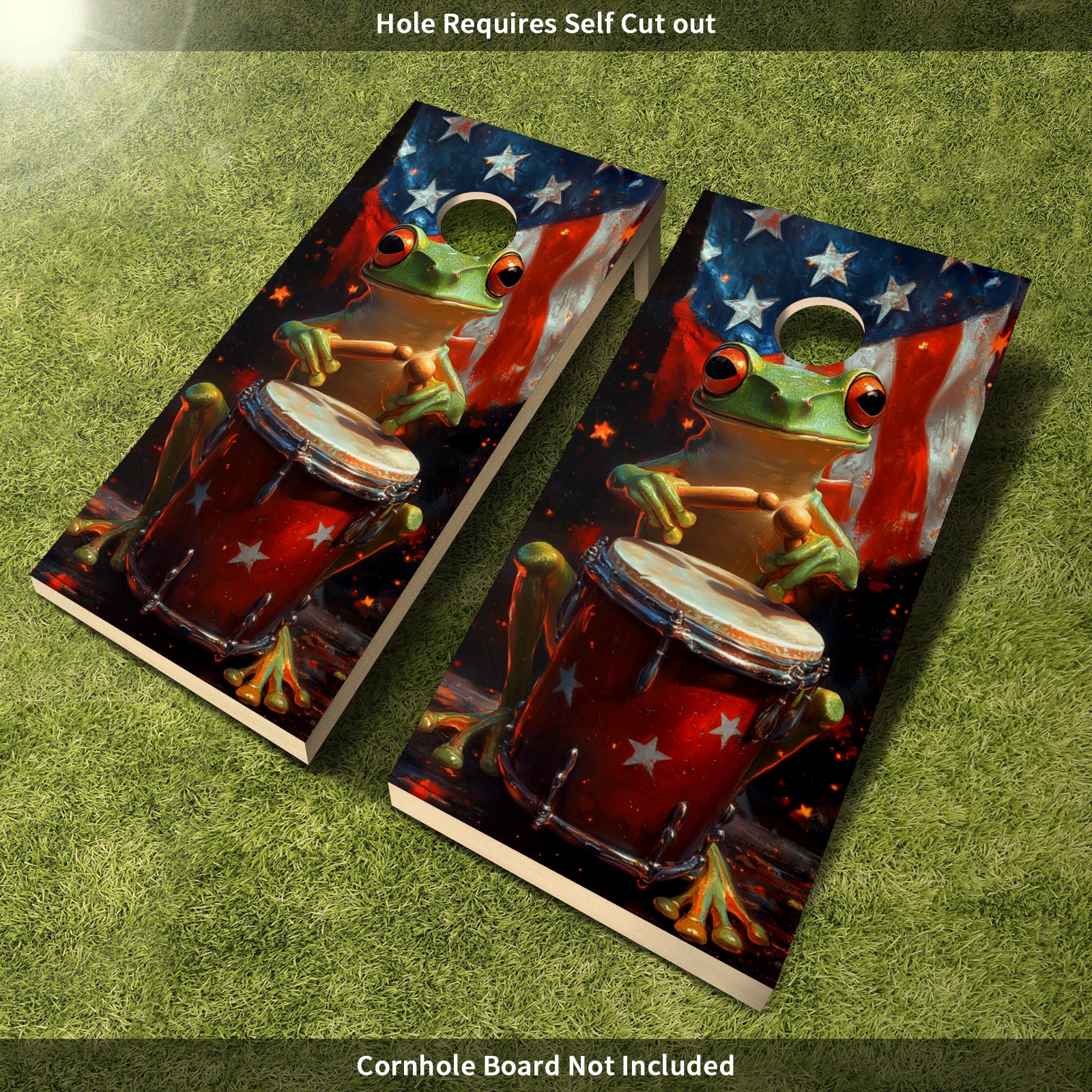 Portable 4x2 Ft Cornhole Boards Set with Two-piece Game Sticker(Decals ONLY), Easy to Apply - Corn Hole Games for Adults Outdoor Bean Bag Toss Game Drumming Frog Pattern2