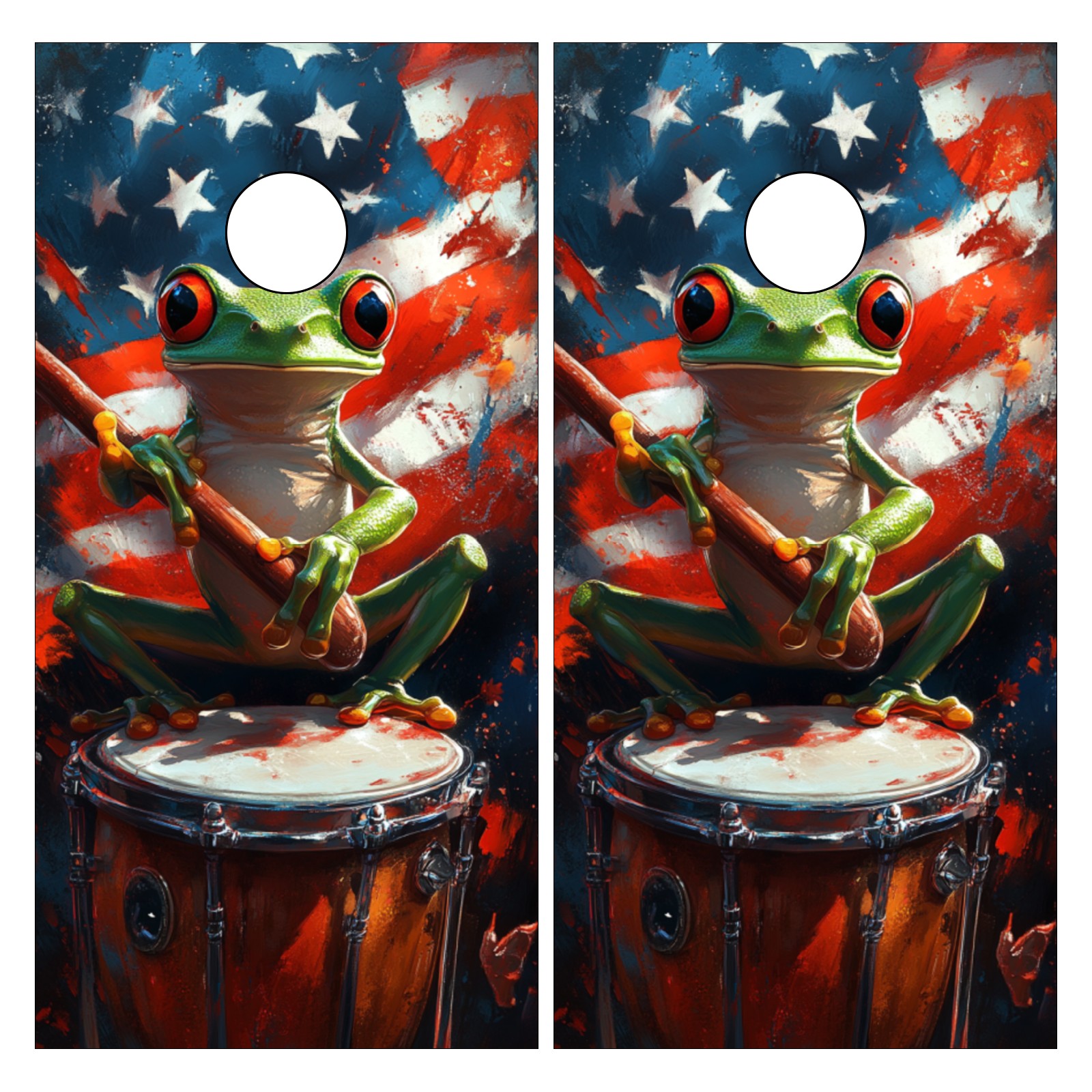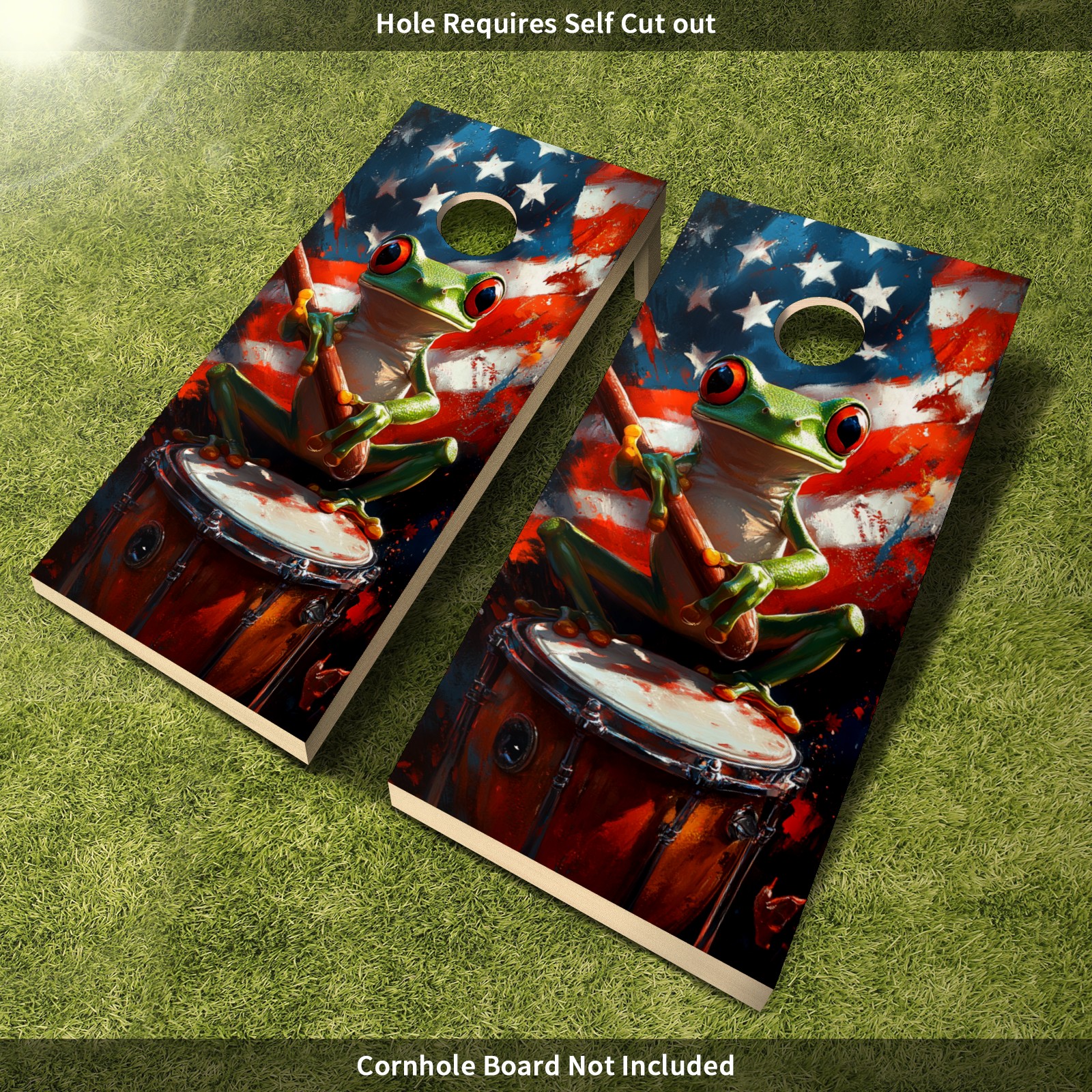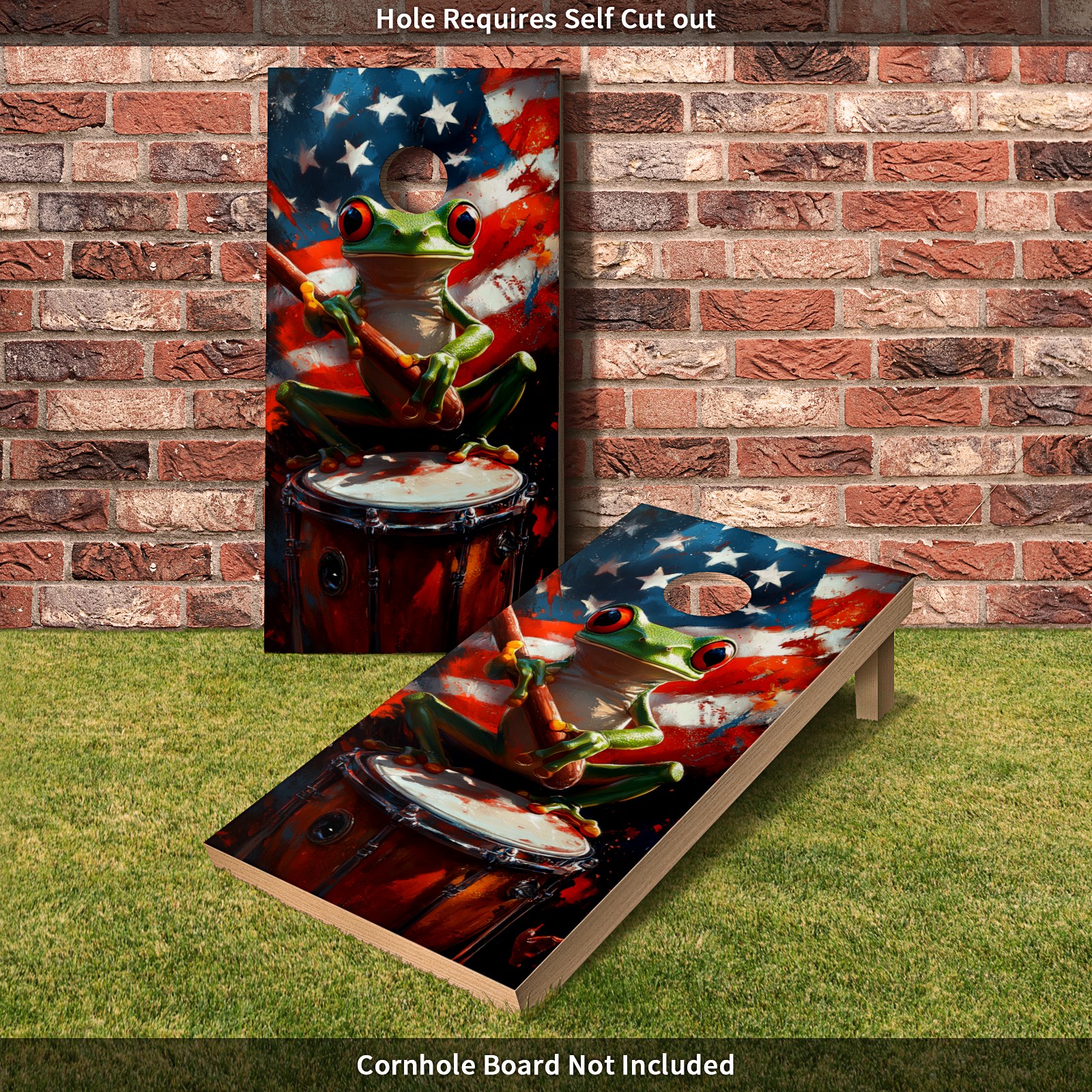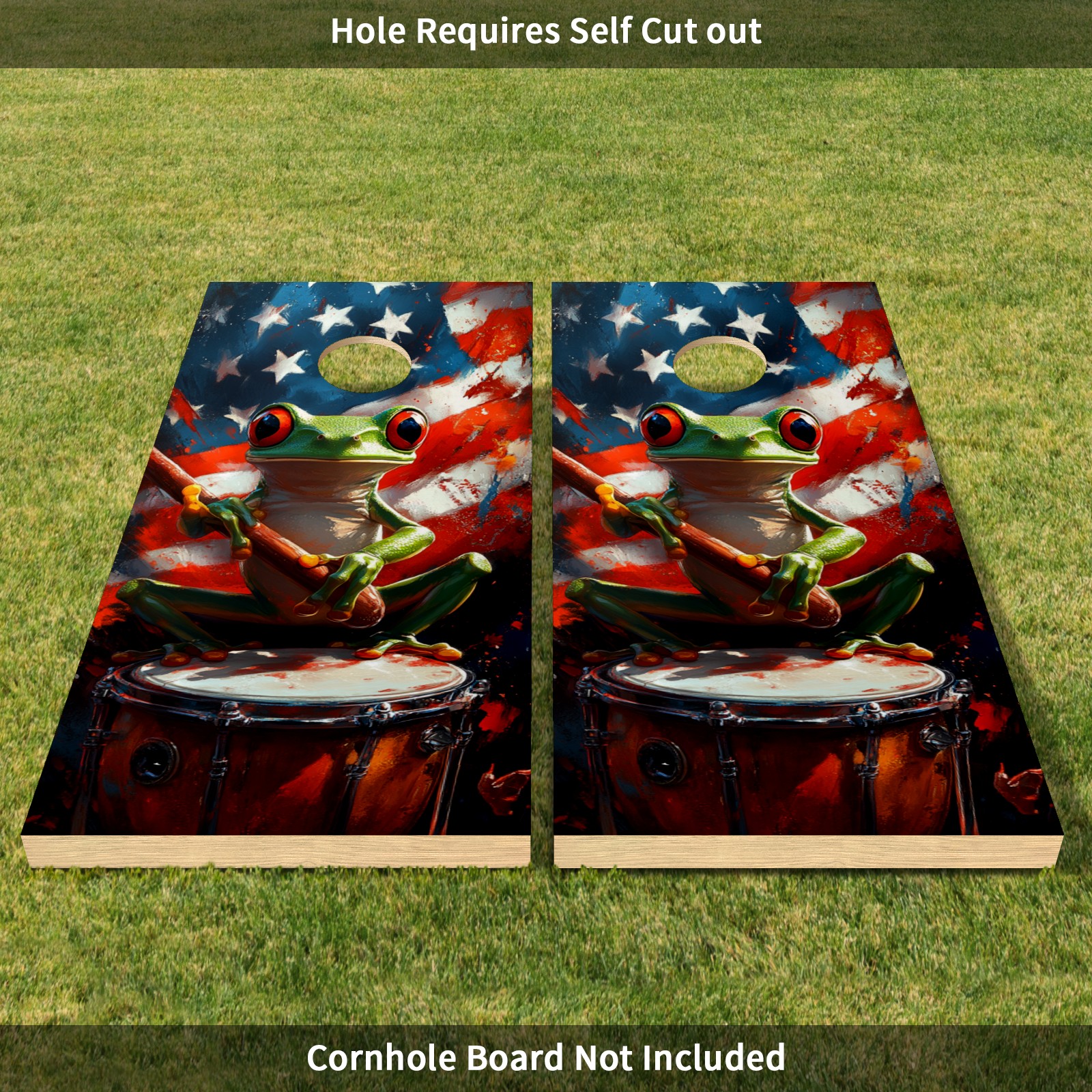 Portable 4x2 Ft Cornhole Boards Set with Two-piece Game Sticker(Decals ONLY), Easy to Apply - Corn Hole Games for Adults Outdoor Bean Bag Toss Game Drumming Frog Pattern1