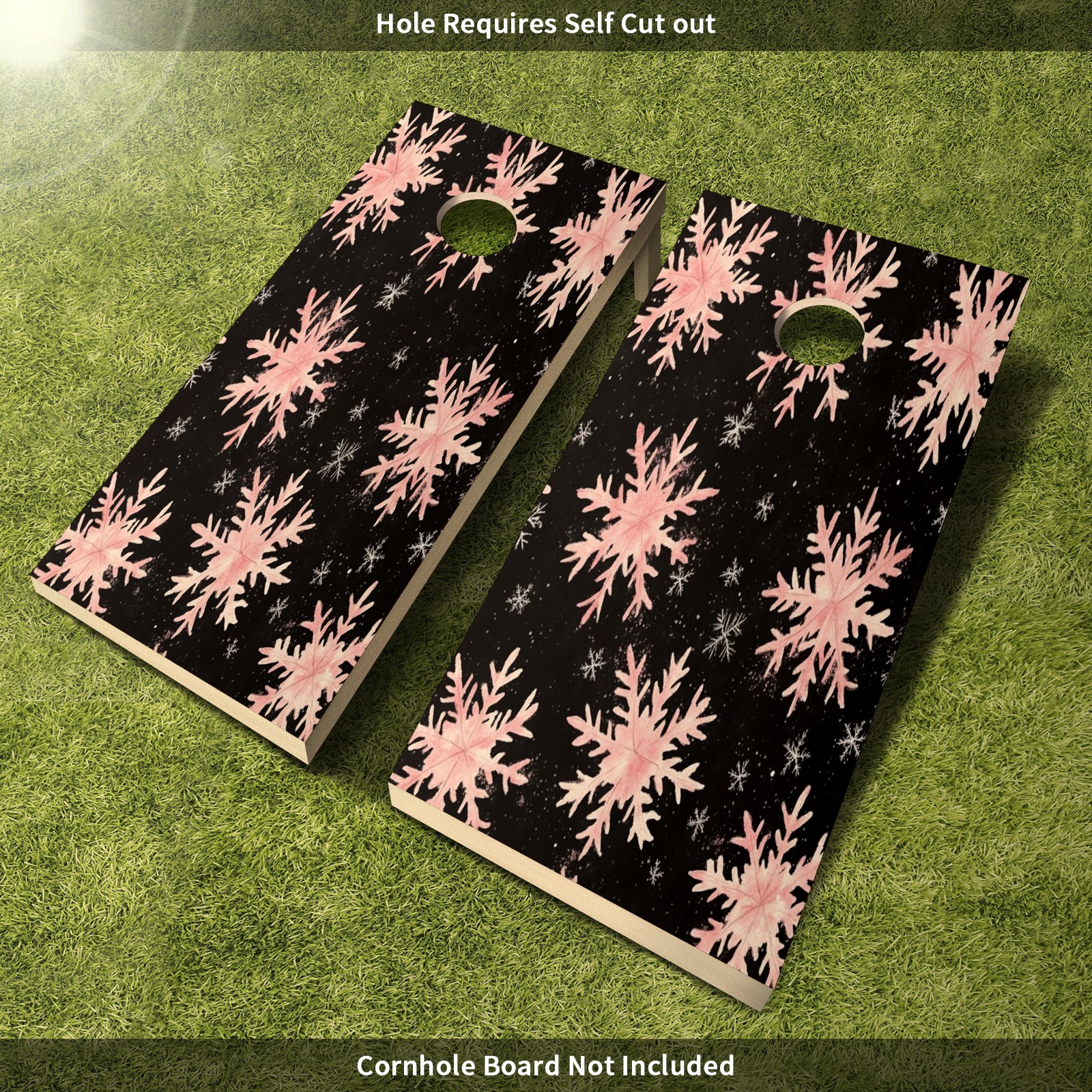 Portable 4x2 Ft Cornhole Boards Set with Two-piece Game Sticker(Decals ONLY), Easy to Apply - Corn Hole Games for Adults Outdoor Bean Bag Toss Game Pink Snowflake Pattern1