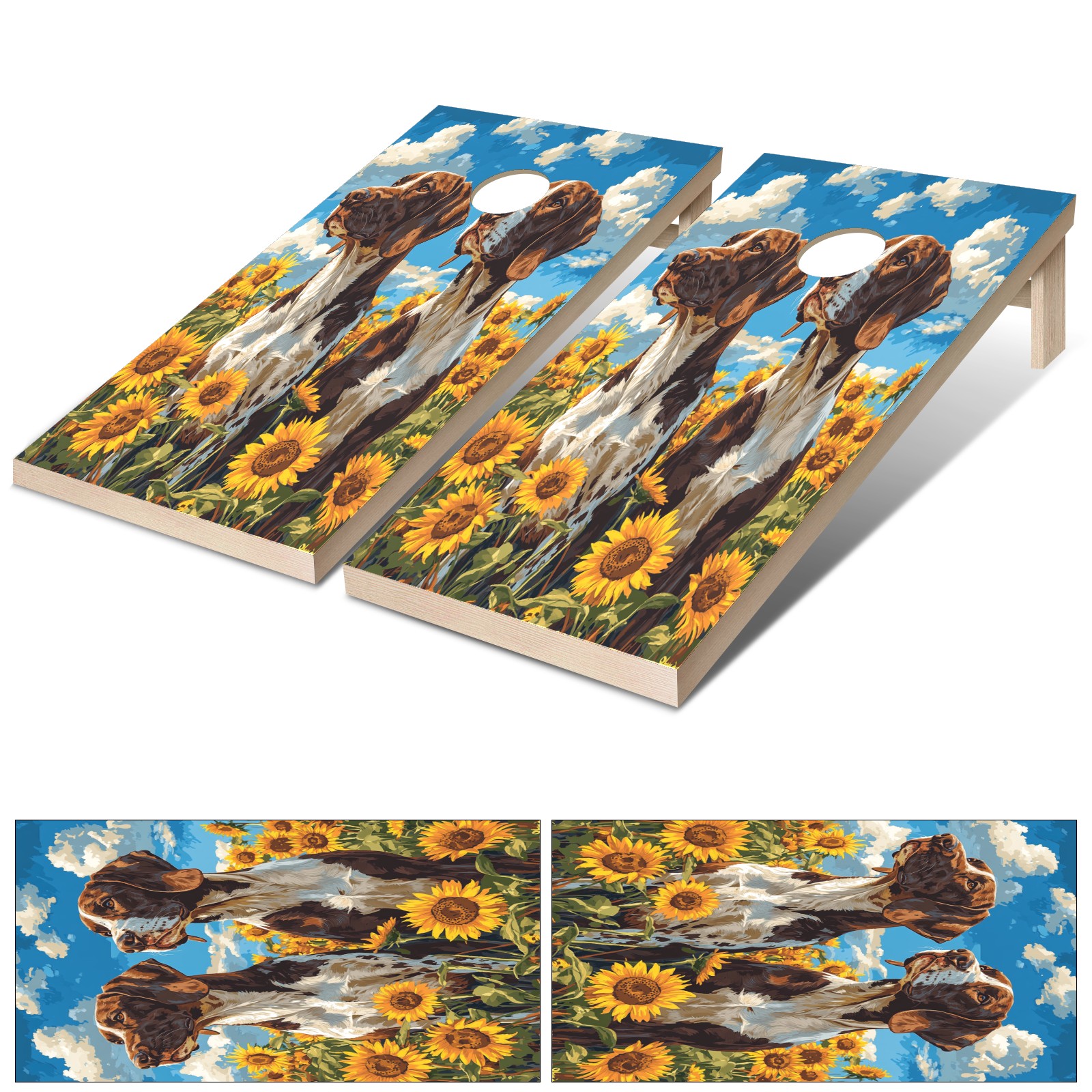 Portable 4x2 Ft Cornhole Boards Set with Two-piece Game Sticker(Decals ONLY), Easy to Apply - Corn Hole Games for Adults Outdoor Bean Bag Toss Game Oil Painting Dog Pattern