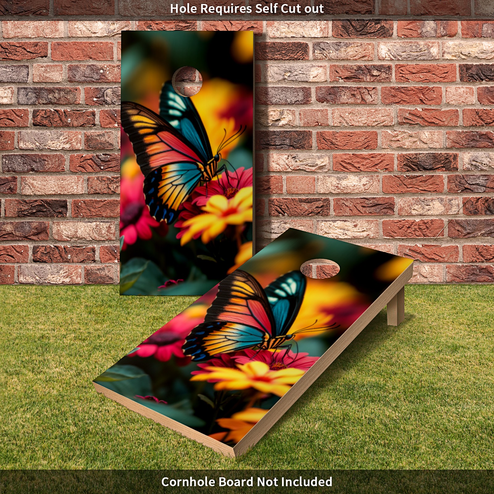 Portable 4x2 Ft Cornhole Boards Set with Two-piece Game Sticker(Decals ONLY), Easy to Apply - Corn Hole Games for Adults Outdoor Bean Bag Toss Game Flower Butterfly Pattern1