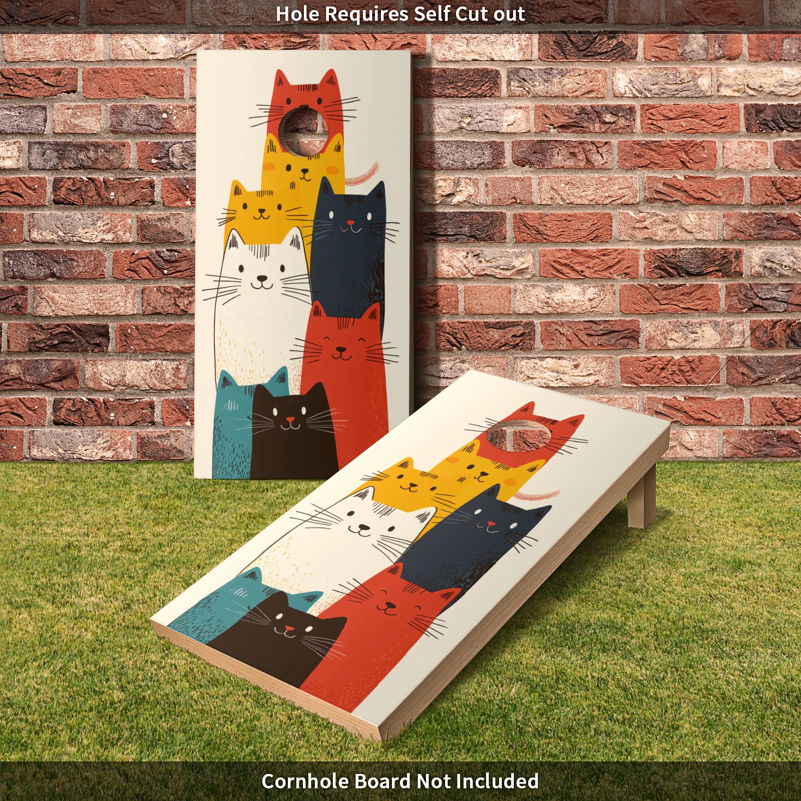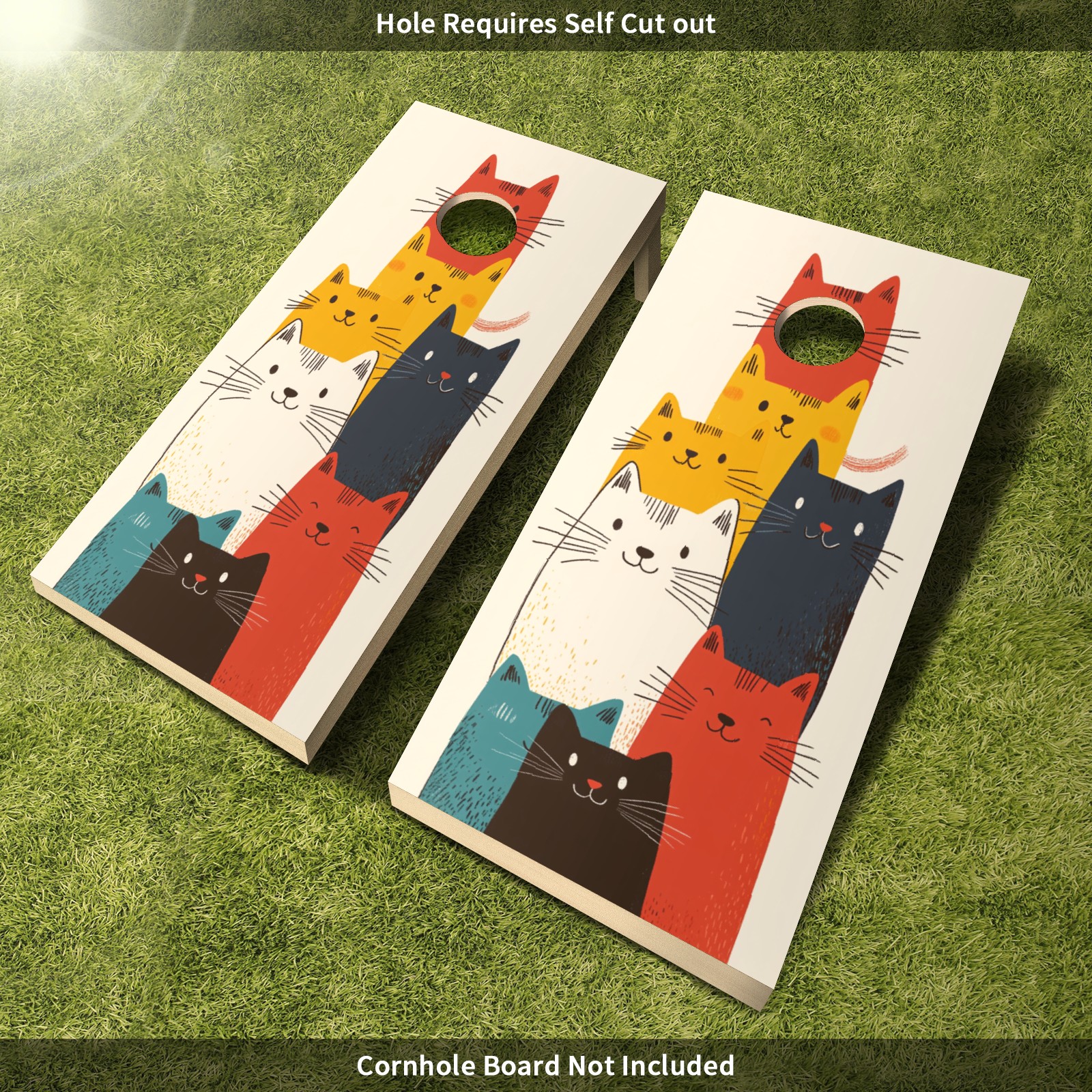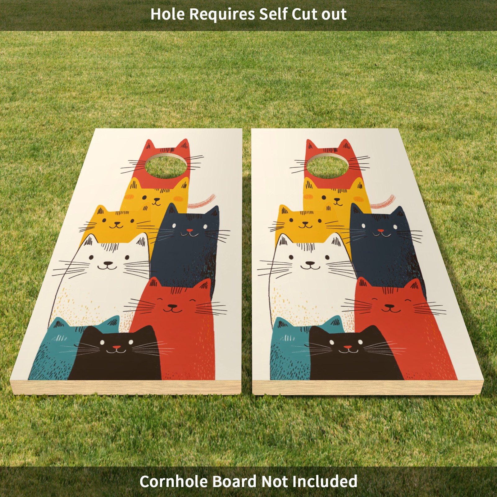 Portable 4x2 Ft Cornhole Boards Set with Two-piece Game Sticker(Decals ONLY), Easy to Apply - Corn Hole Games for Adults Outdoor Bean Bag Toss Game Cartoon Cat Pattern1