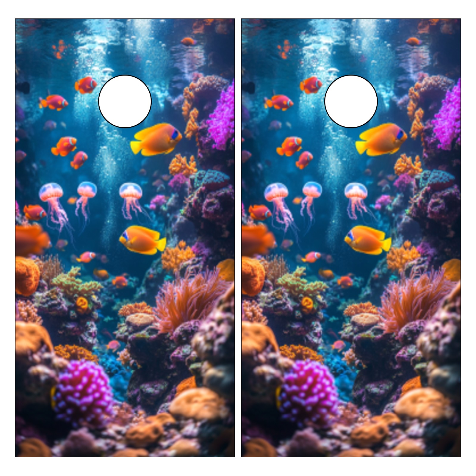 Portable 4x2 Ft Cornhole Boards Set with Two-piece Game Sticker(Decals ONLY), Easy to Apply - Corn Hole Games for Adults Outdoor Bean Bag Toss Game Undersea Pattern2