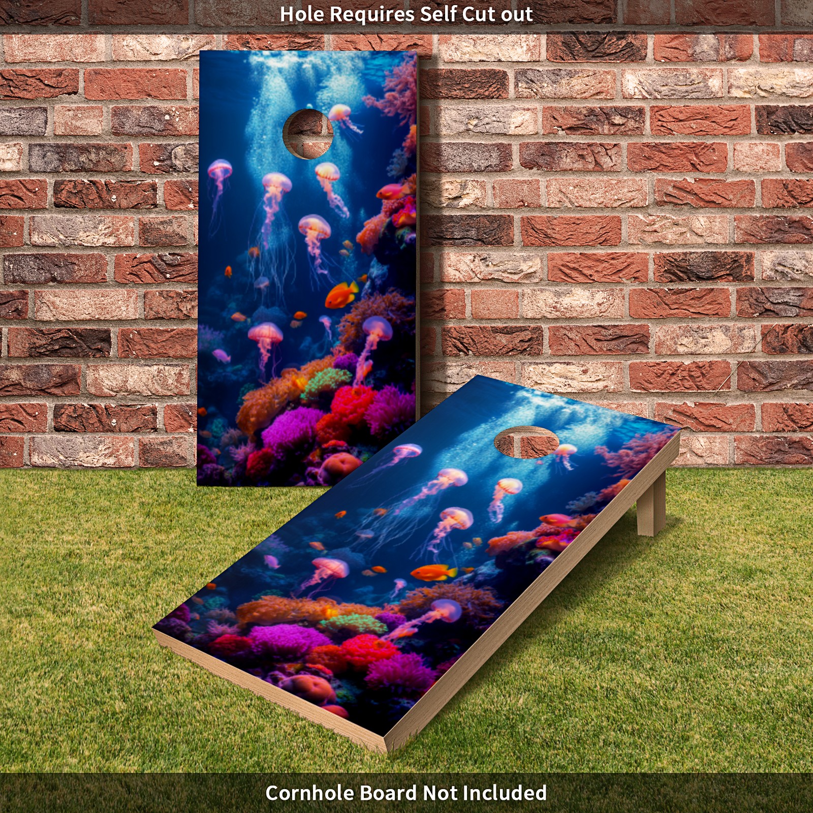 Portable 4x2 Ft Cornhole Boards Set with Two-piece Game Sticker(Decals ONLY), Easy to Apply - Corn Hole Games for Adults Outdoor Bean Bag Toss Game Undersea Pattern1