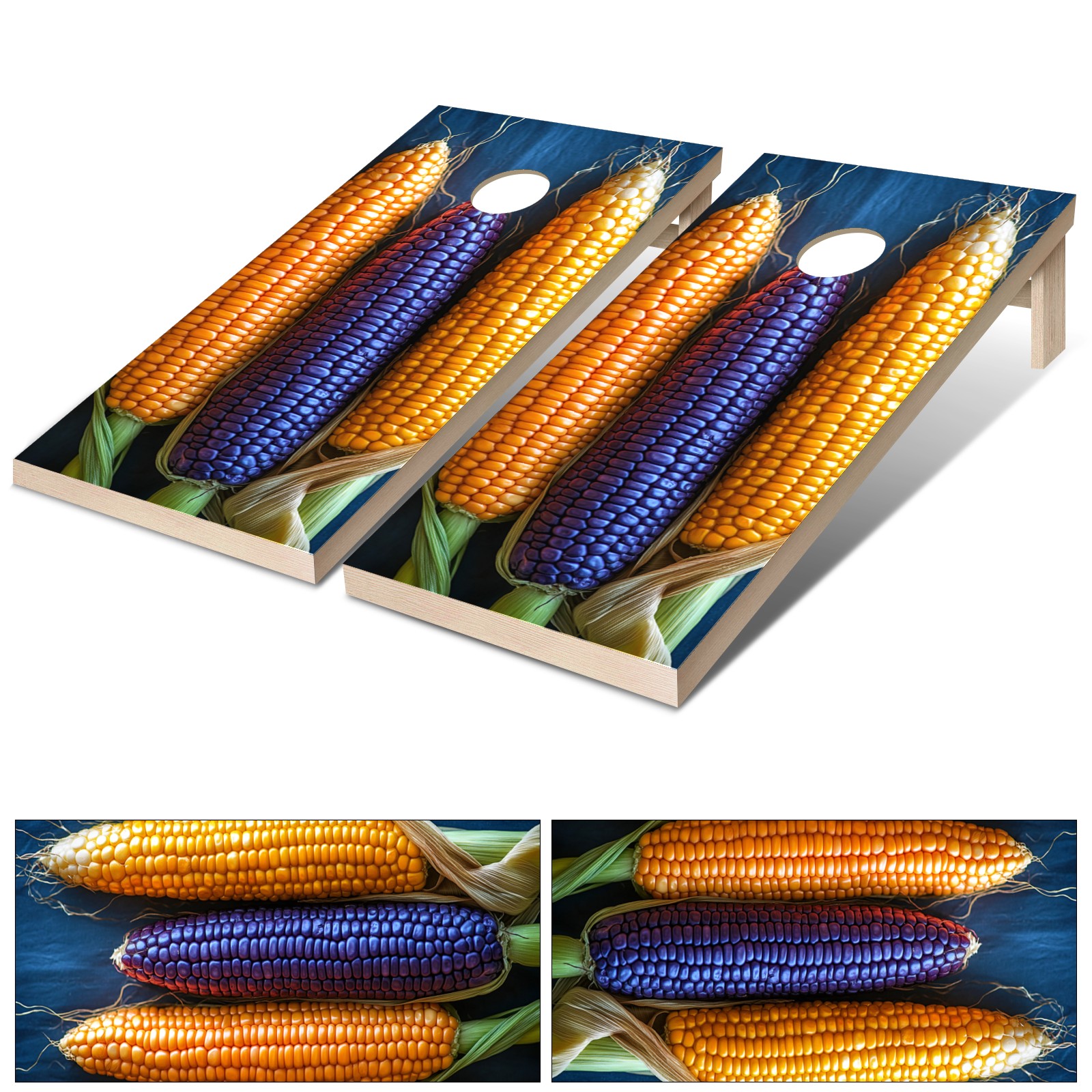 Portable 4x2 Ft Cornhole Boards Set with Two-piece Game Sticker(Decals ONLY), Easy to Apply - Corn Hole Games for Adults Outdoor Bean Bag Toss Game Colorful Corn Pattern2