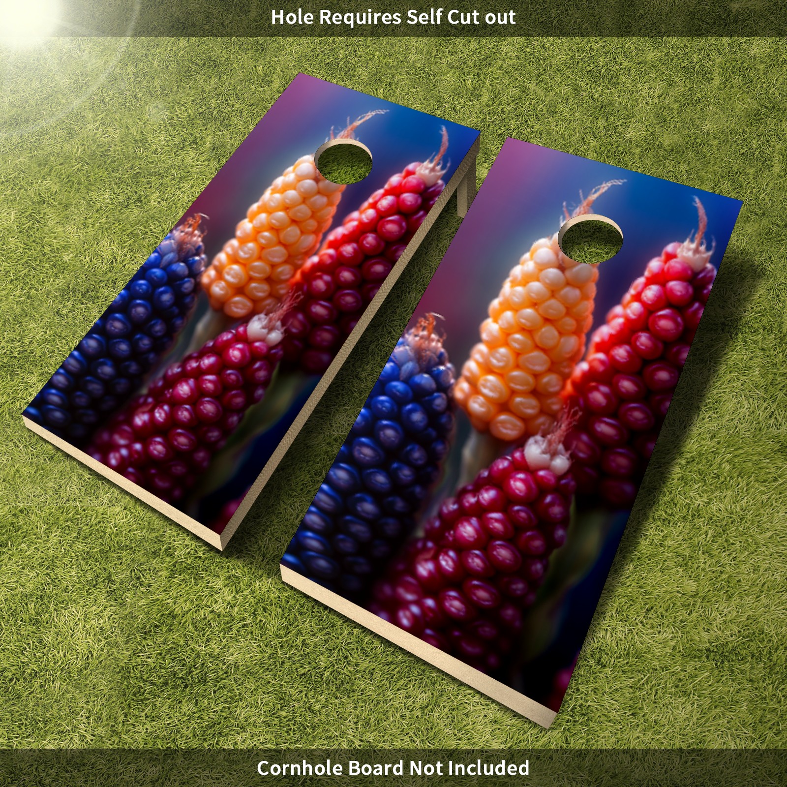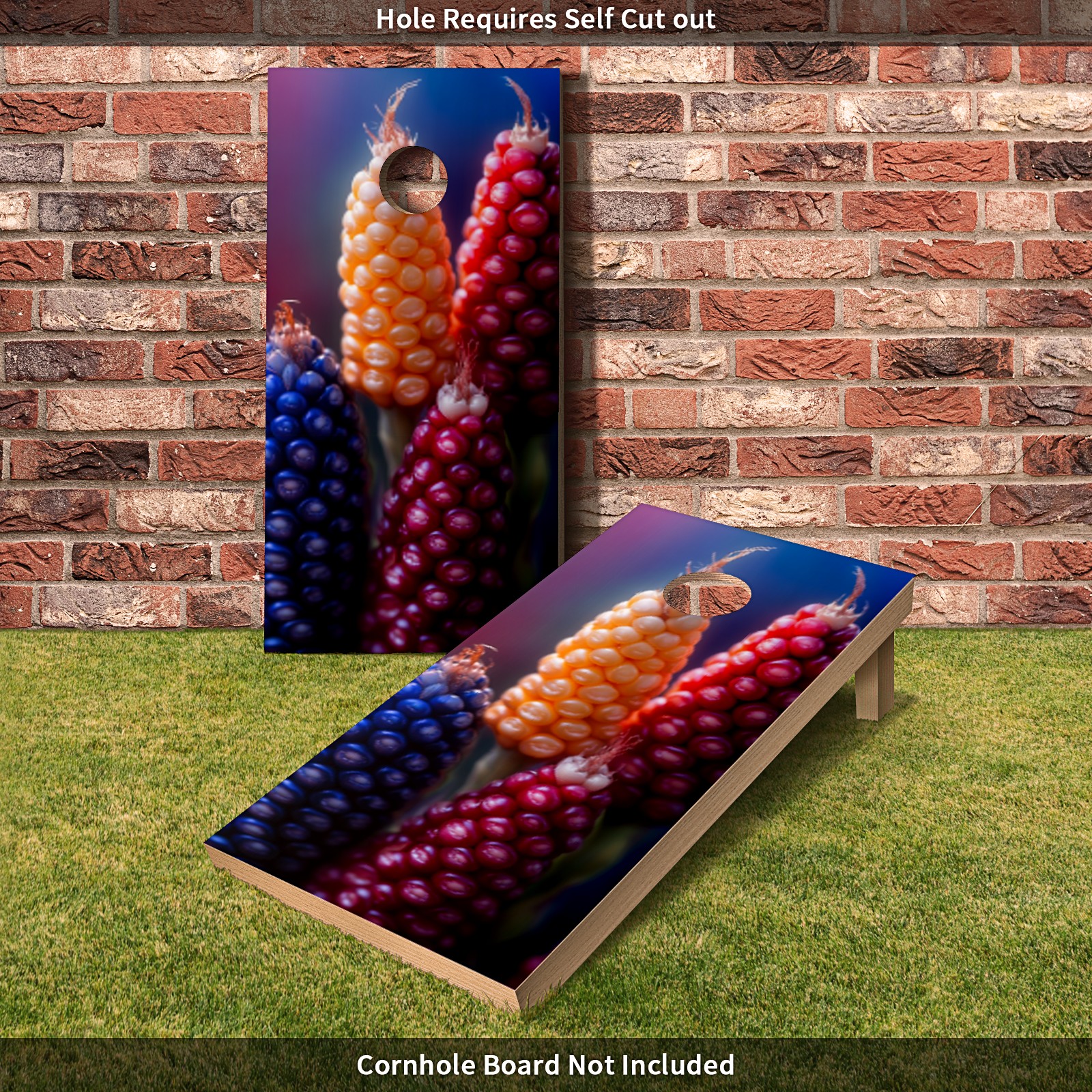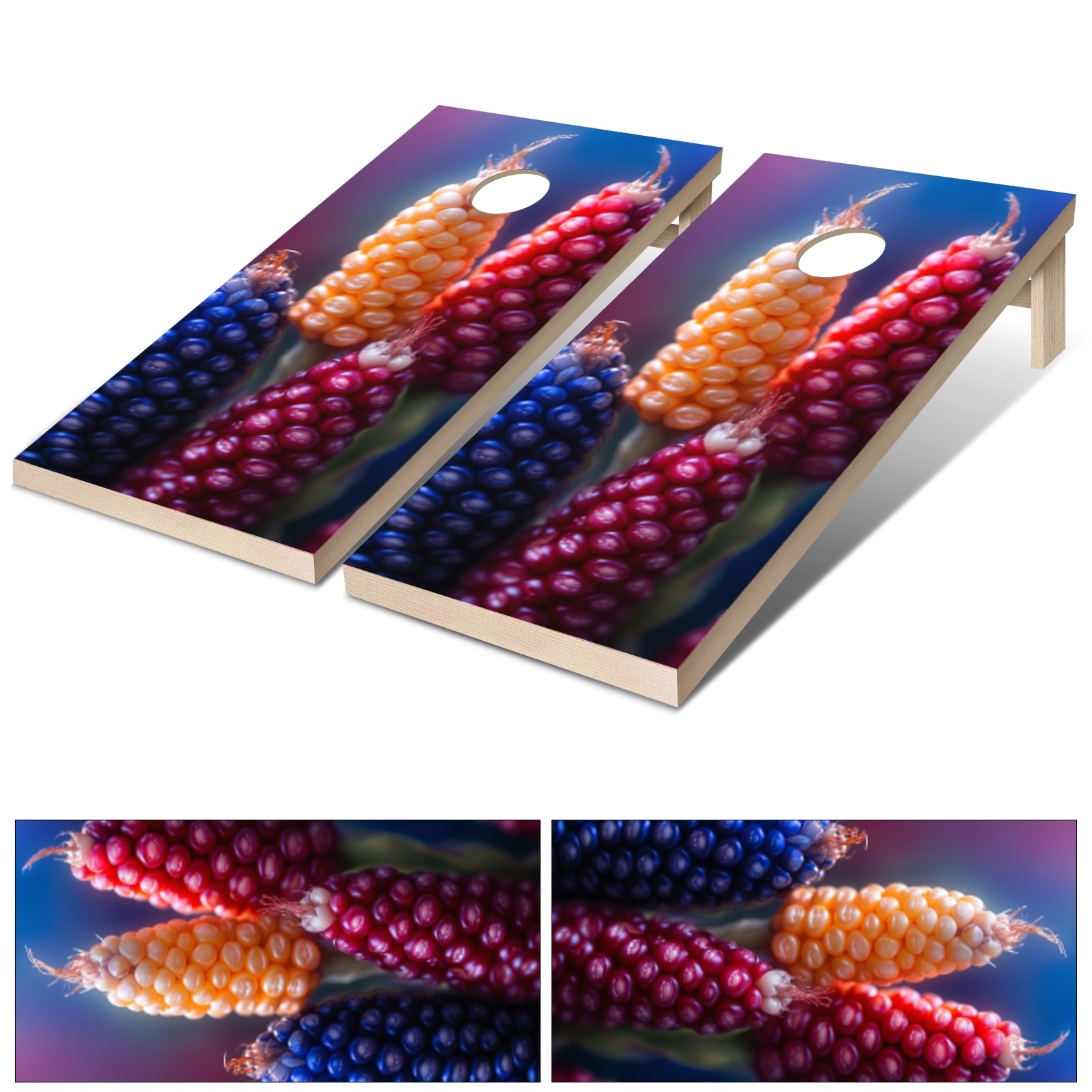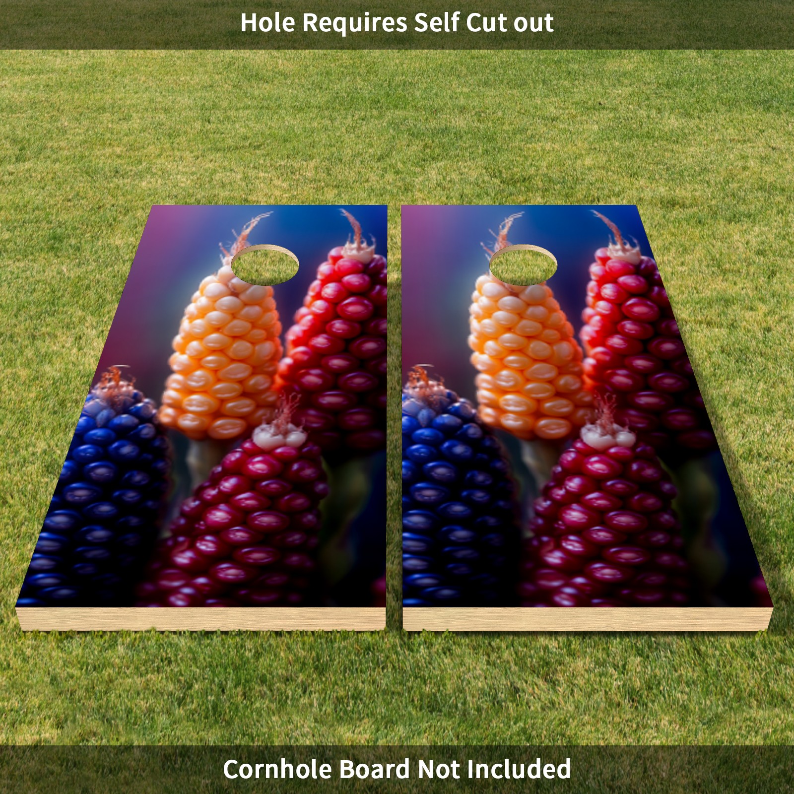 Portable 4x2 Ft Cornhole Boards Set with Two-piece Game Sticker(Decals ONLY), Easy to Apply - Corn Hole Games for Adults Outdoor Bean Bag Toss Game Colorful Corn Pattern