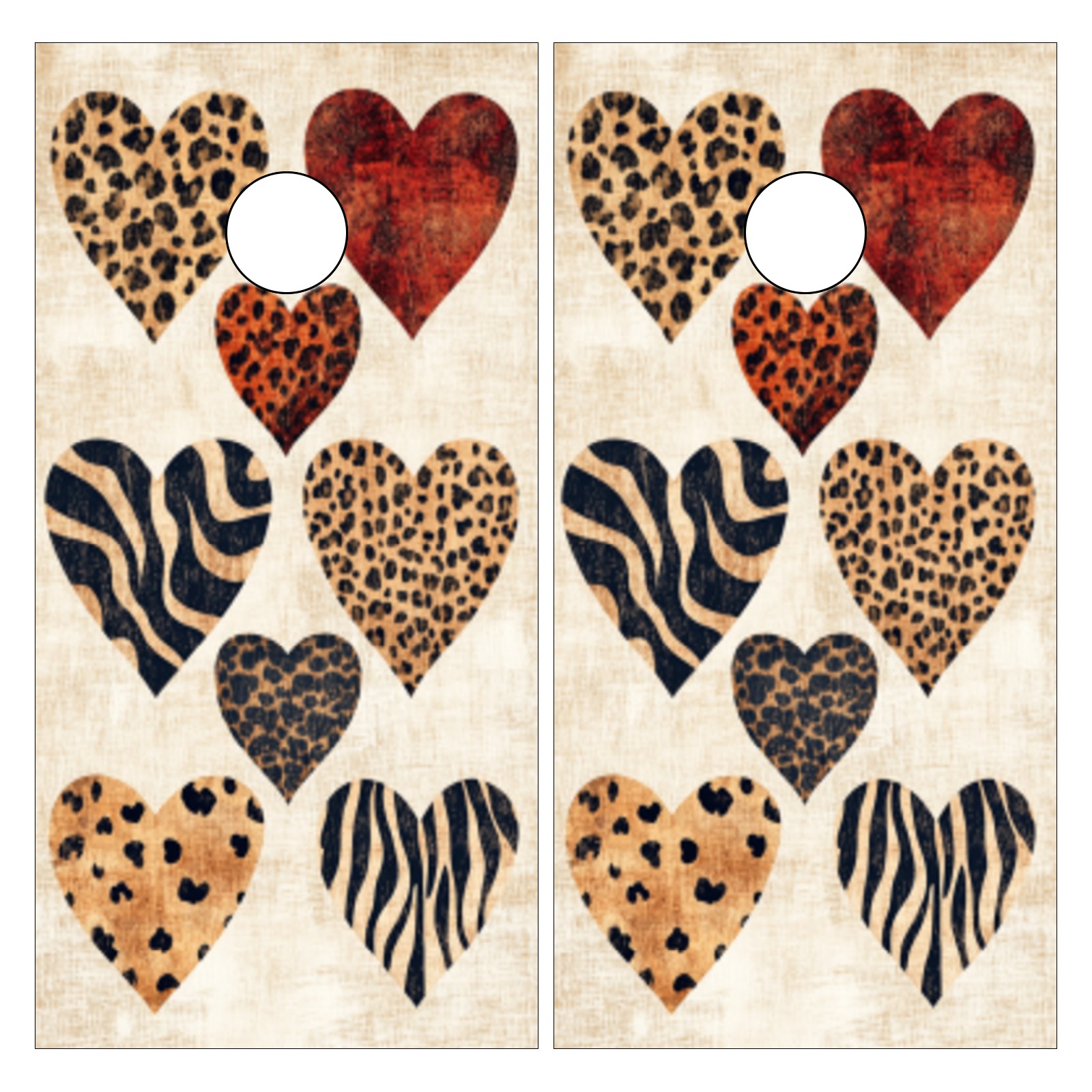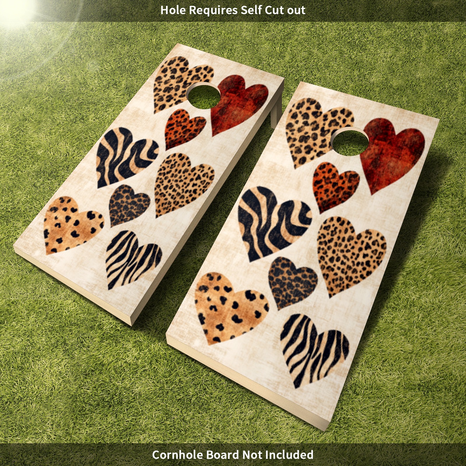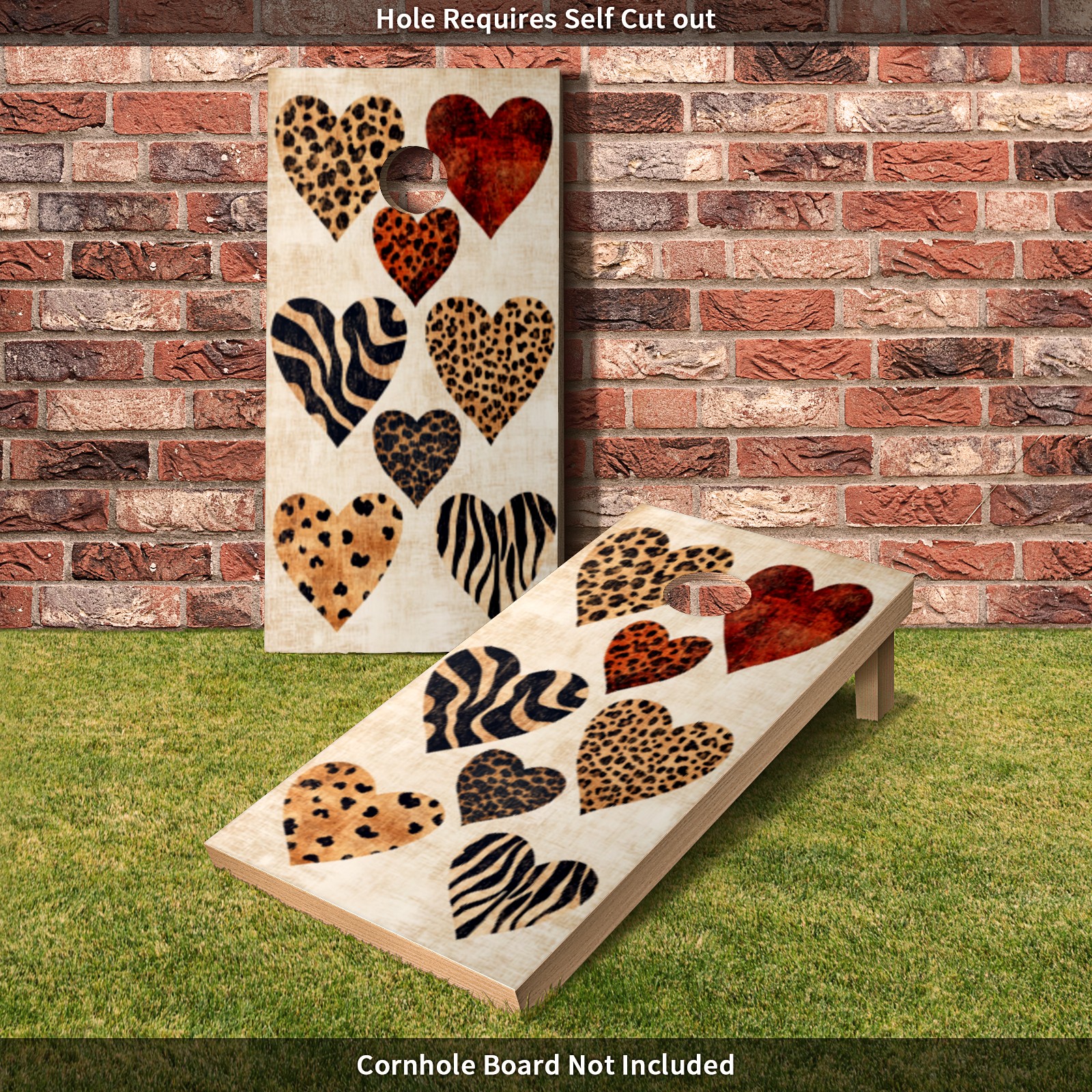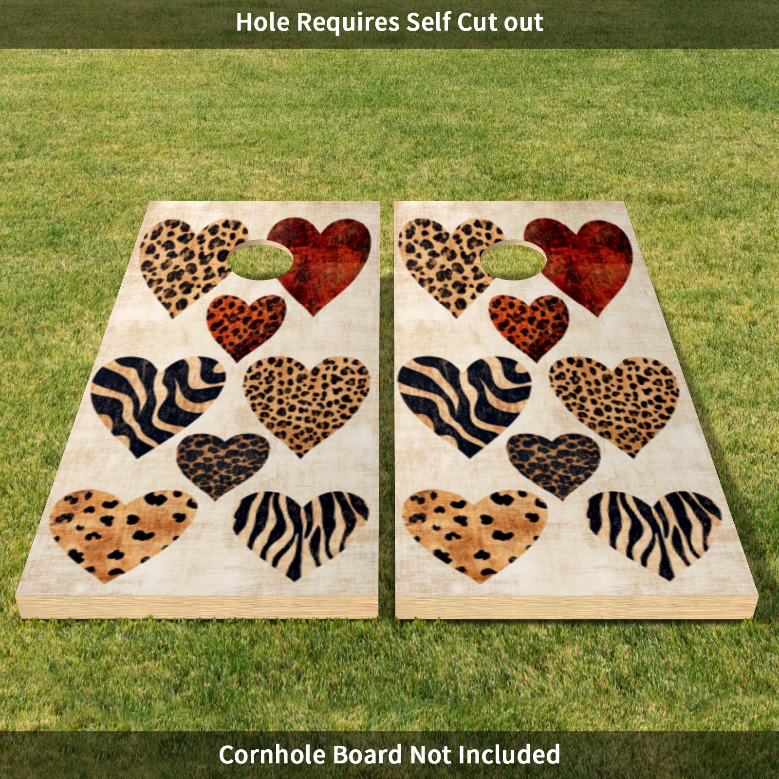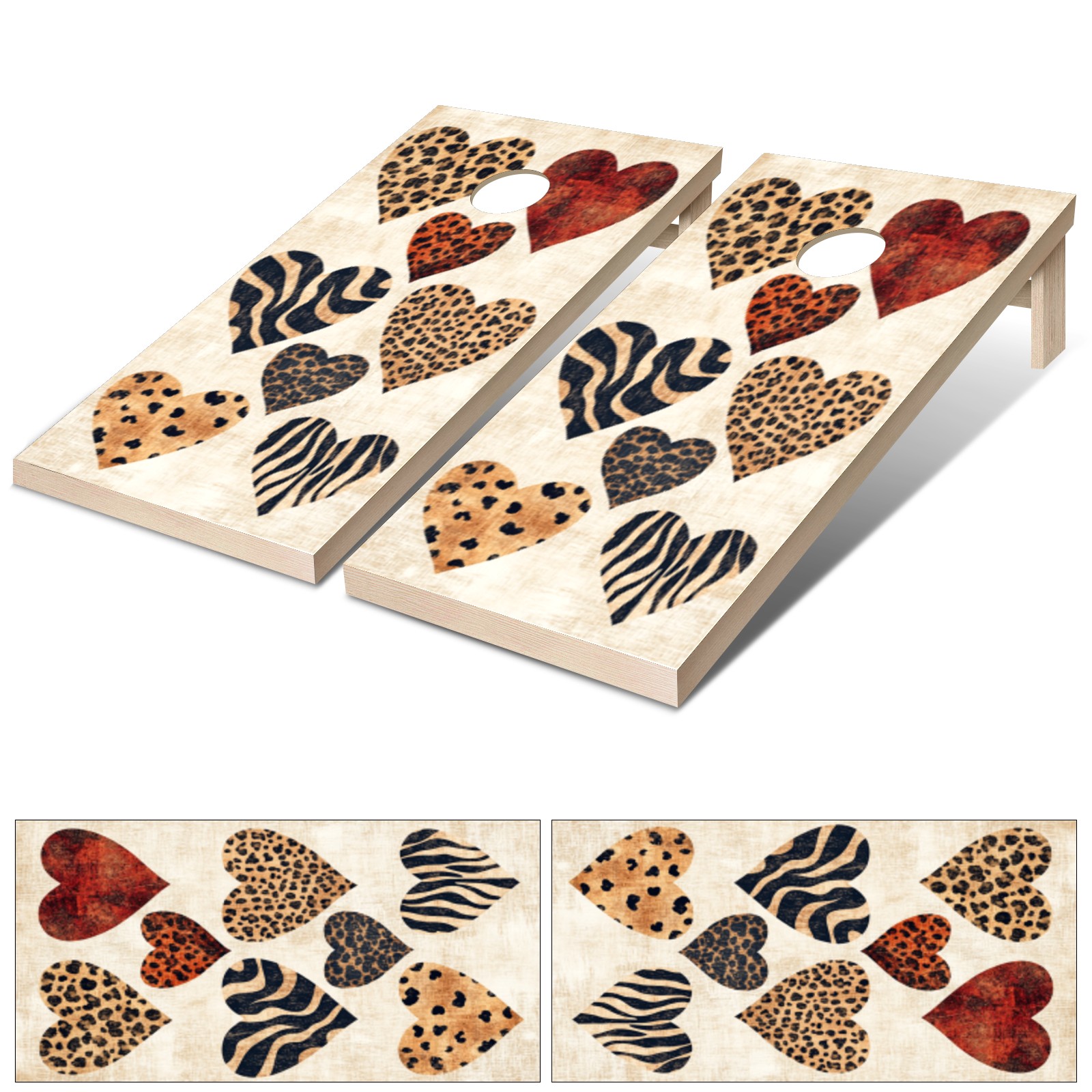 Portable 4x2 Ft Cornhole Boards Set with Two-piece Game Sticker(Decals ONLY), Easy to Apply - Corn Hole Games for Adults Outdoor Bean Bag Toss Game Brown Heart Pattern4