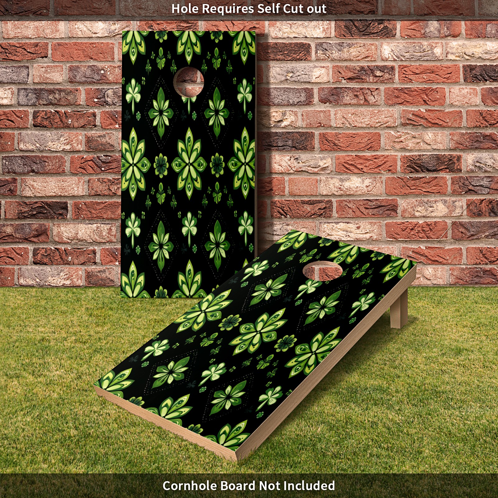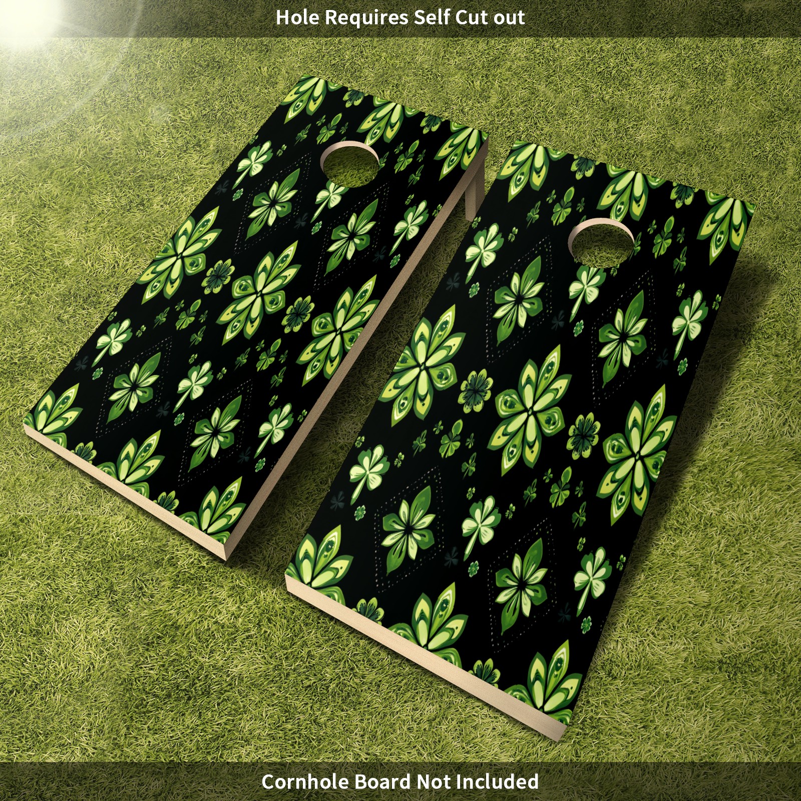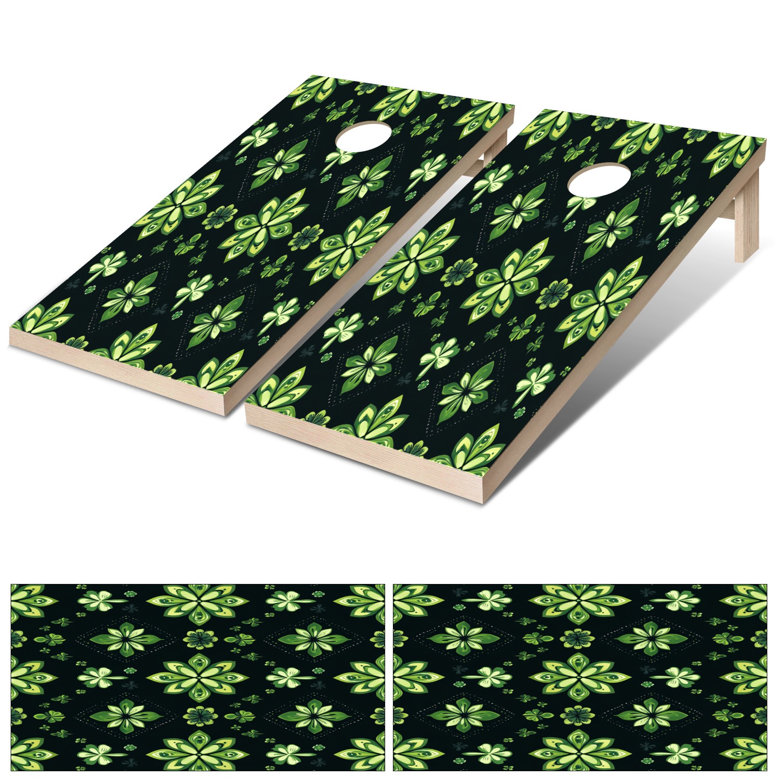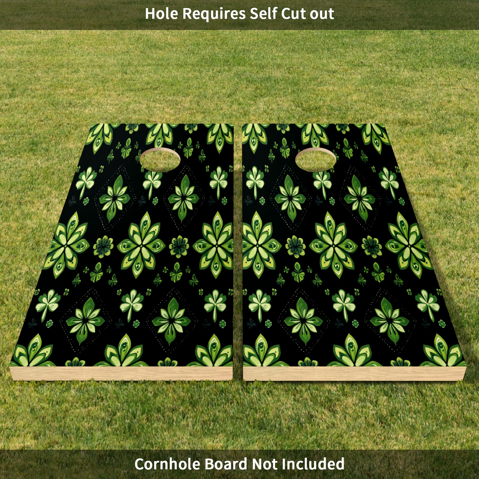 Portable 4x2 Ft Cornhole Boards Set with Two-piece Game Sticker(Decals ONLY), Easy to Apply - Corn Hole Games for Adults Outdoor Bean Bag Toss Game Green Clover Pattern