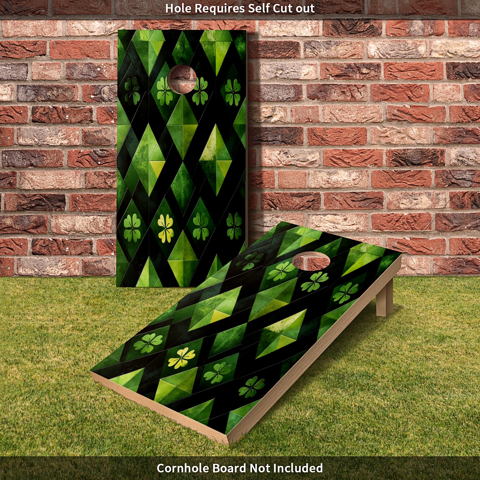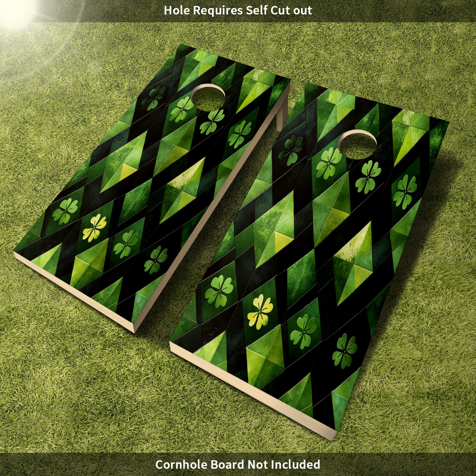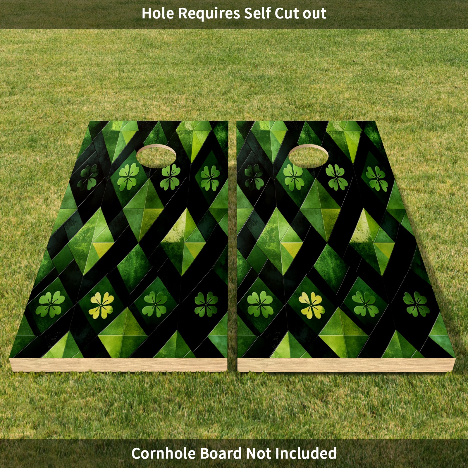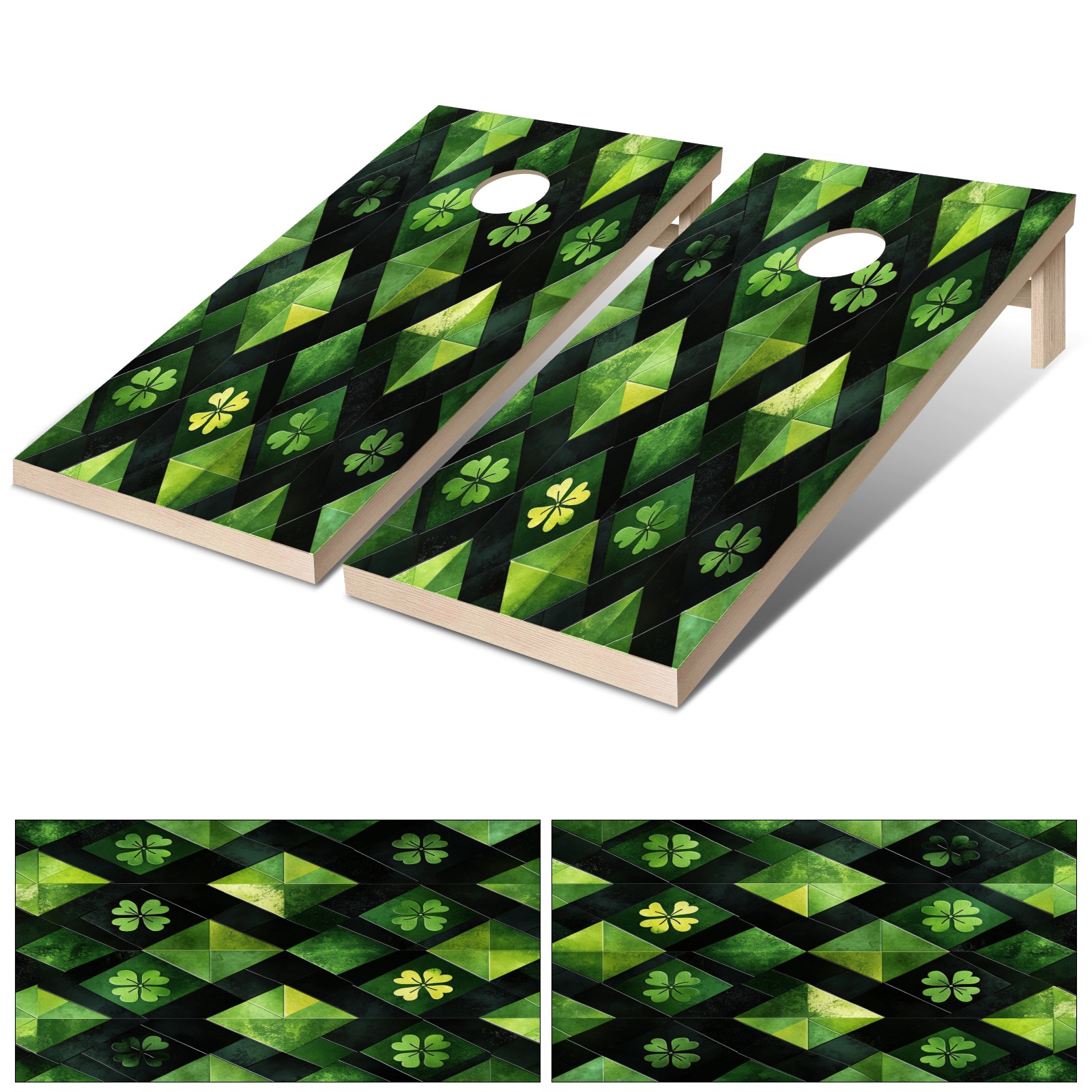 Portable 4x2 Ft Cornhole Boards Set with Two-piece Game Sticker(Decals ONLY), Easy to Apply - Corn Hole Games for Adults Outdoor Bean Bag Toss Game Green Clover Pattern2