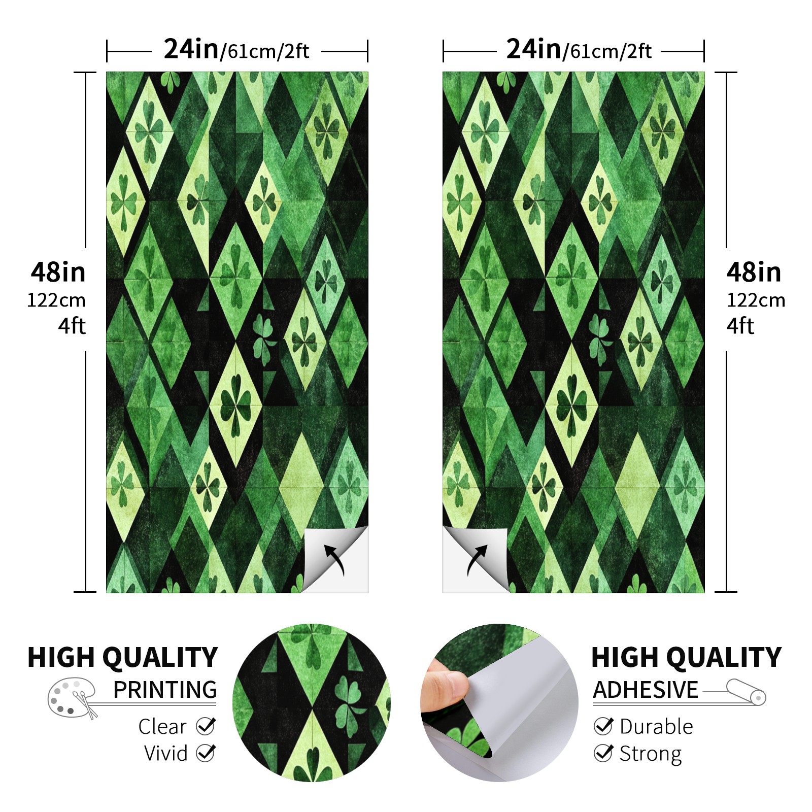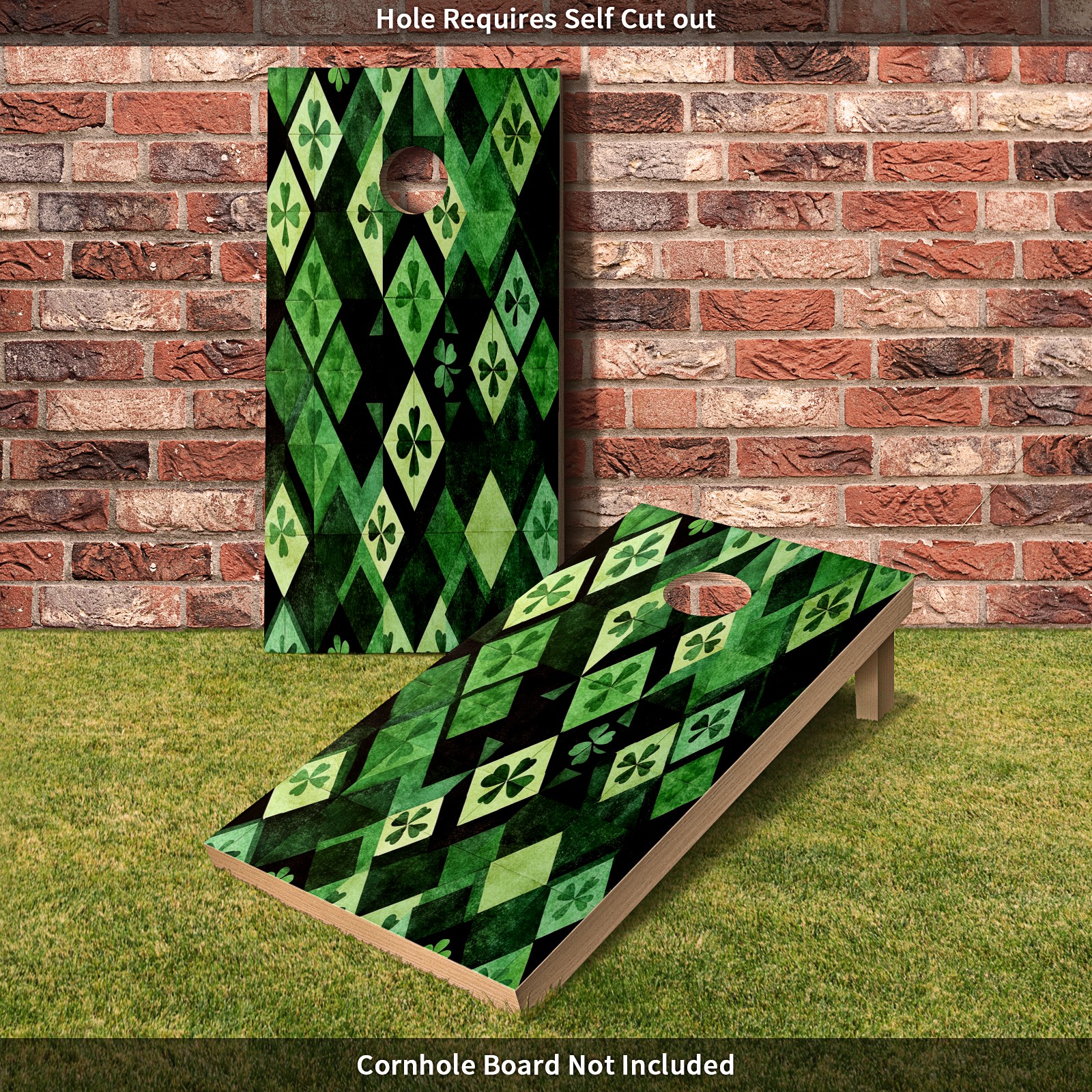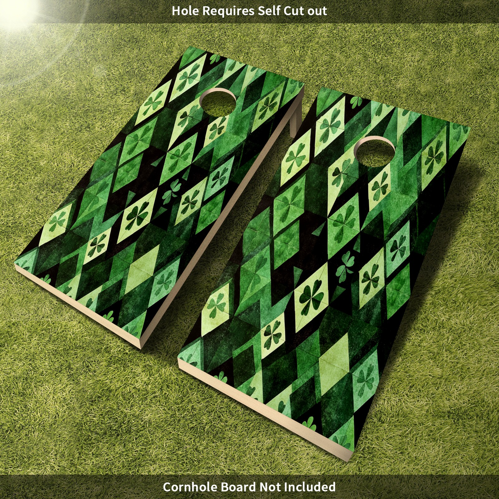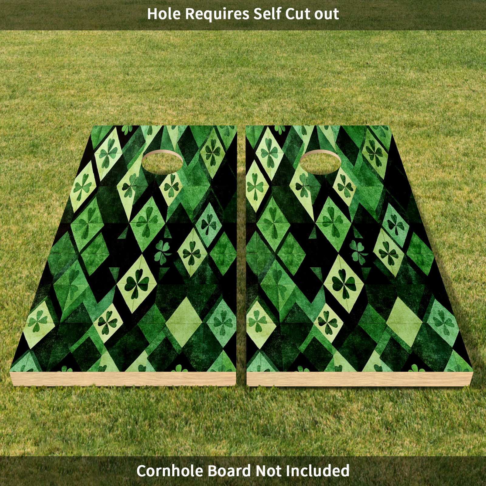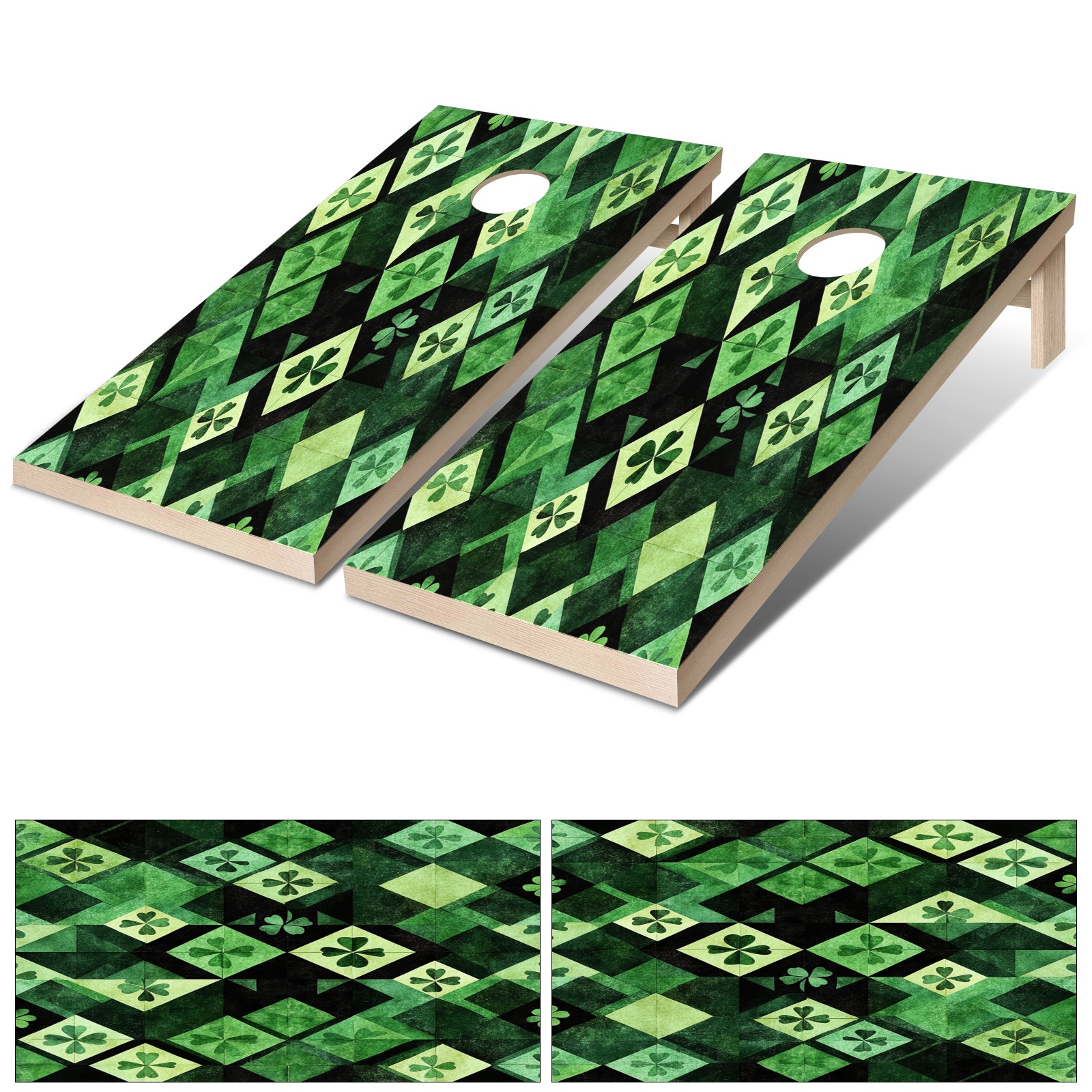 Portable 4x2 Ft Cornhole Boards Set with Two-piece Game Sticker(Decals ONLY), Easy to Apply - Corn Hole Games for Adults Outdoor Bean Bag Toss Game Green Clover Pattern1