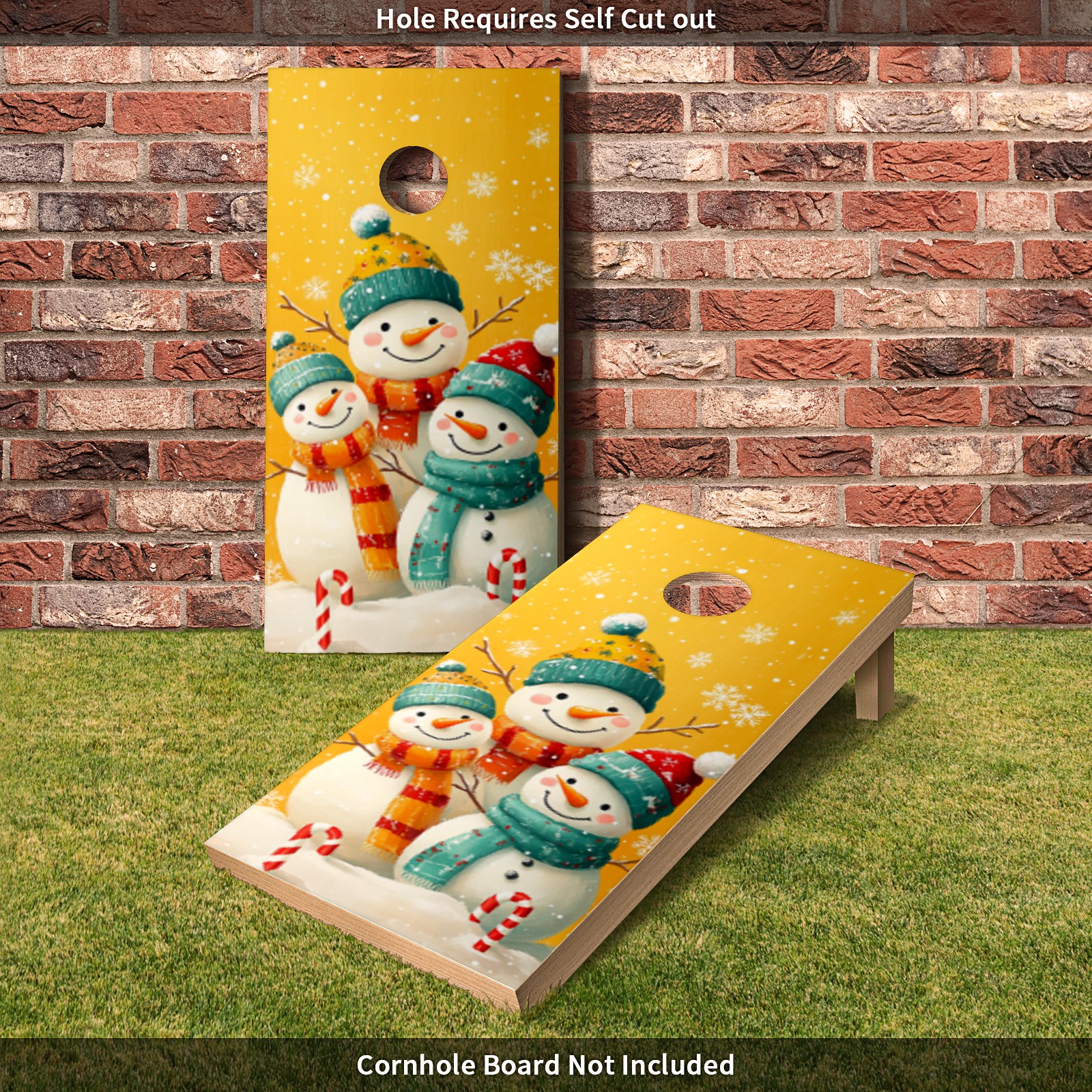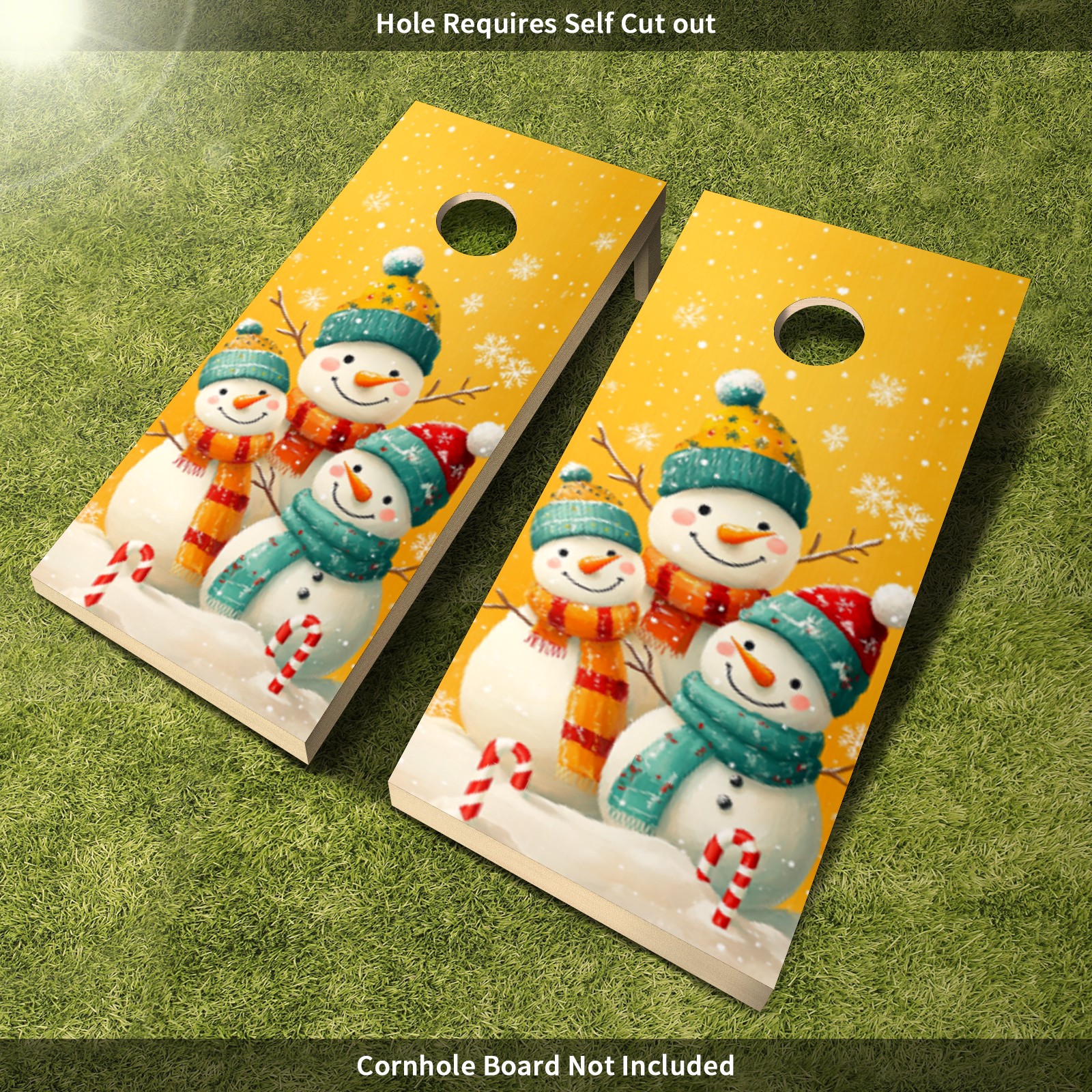 Portable 4x2 Ft Cornhole Boards Set with Two-piece Game Sticker(Decals ONLY), Easy to Apply - Corn Hole Games for Adults Outdoor Bean Bag Toss Game Cute Snowman Pattern1