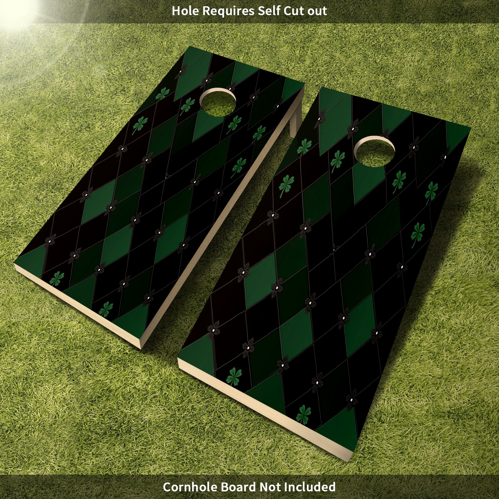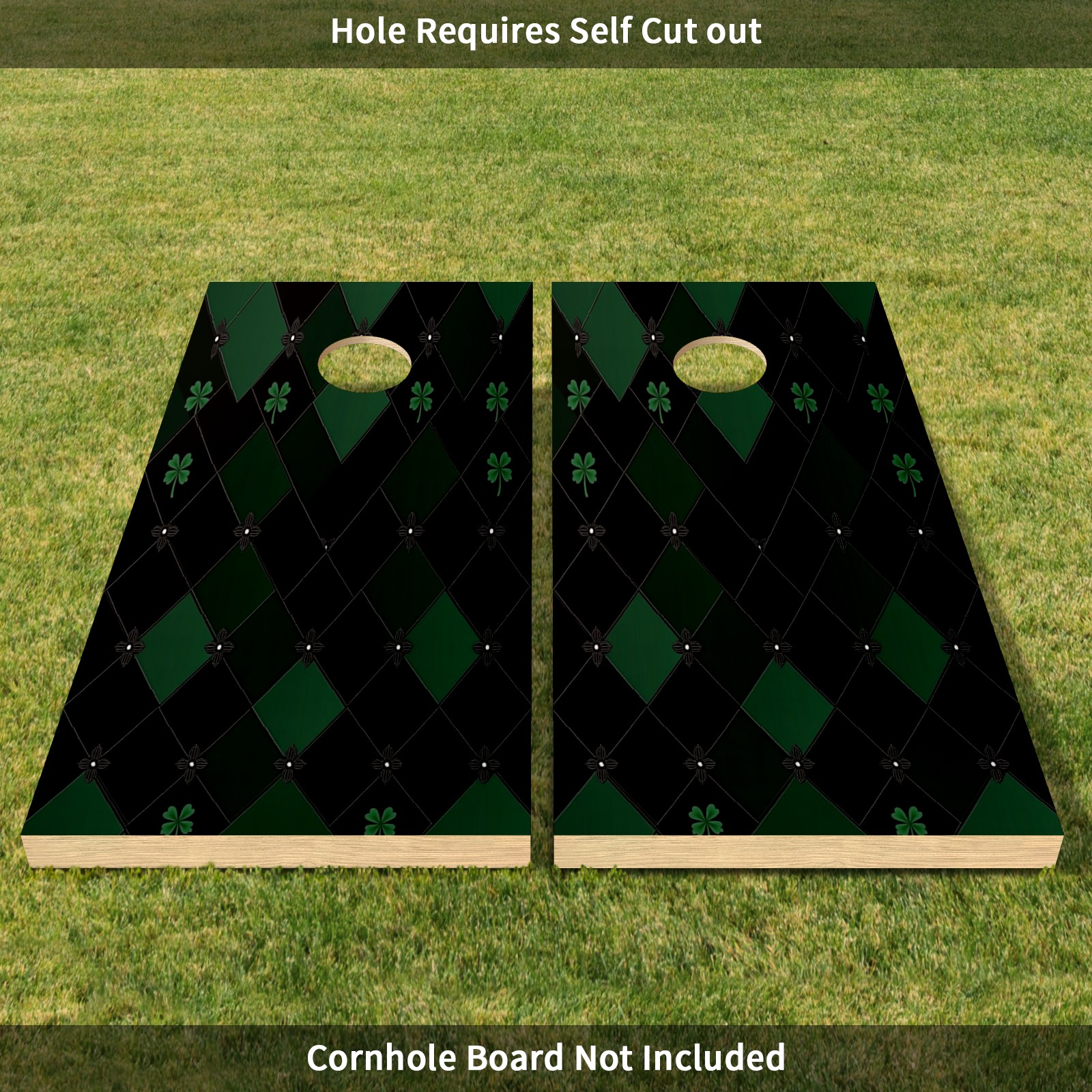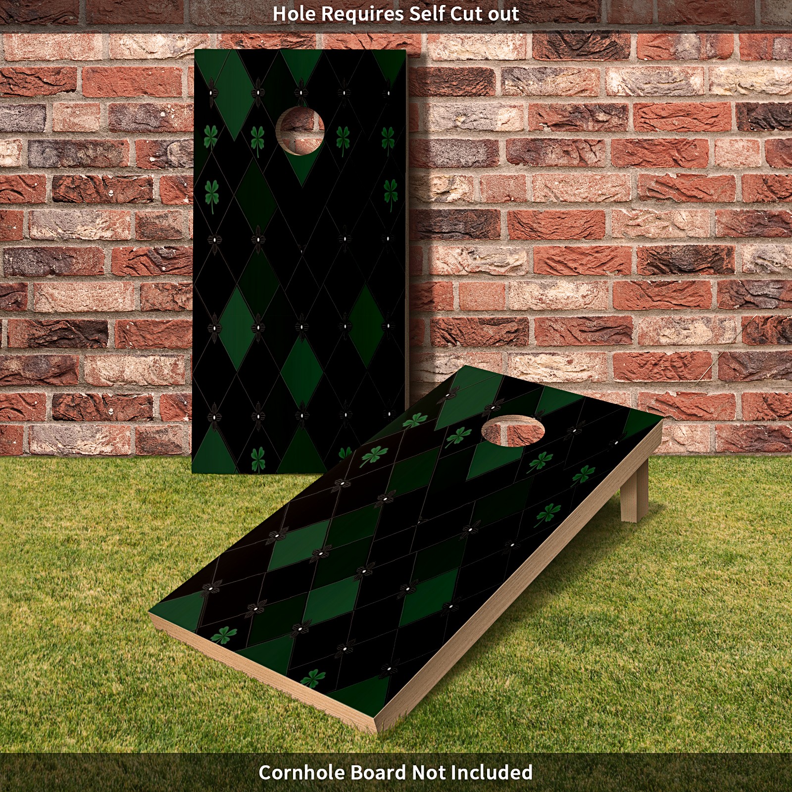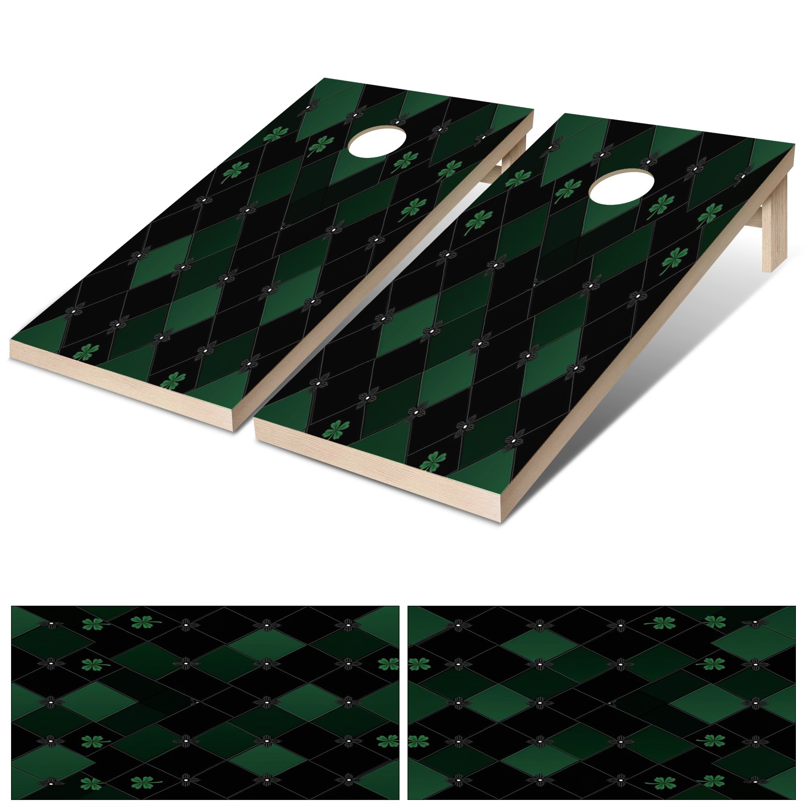Portable 4x2 Ft Cornhole Boards Set with Two-piece Game Sticker(Decals ONLY), Easy to Apply - Corn Hole Games for Adults Outdoor Bean Bag Toss Game Green Clover Pattern5
