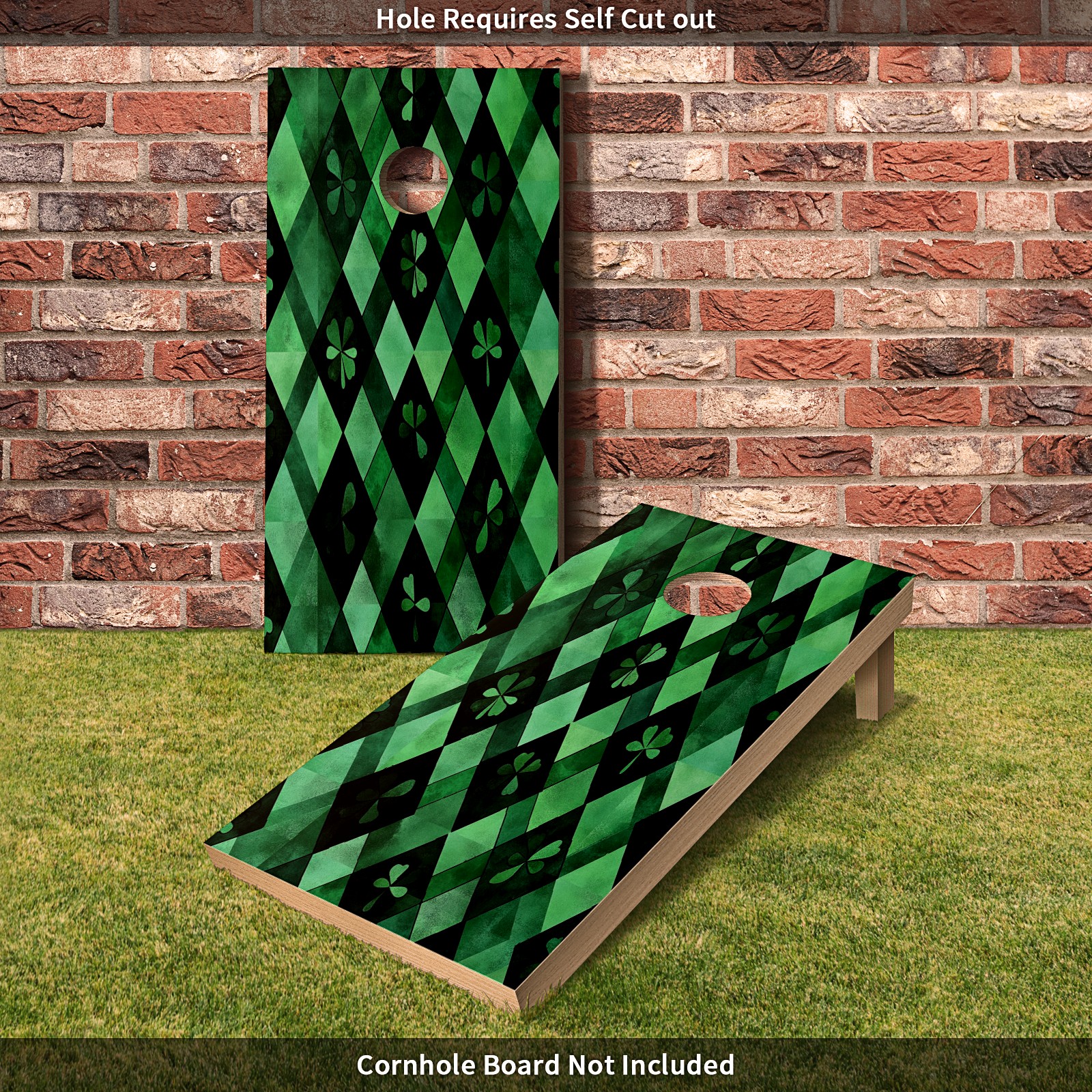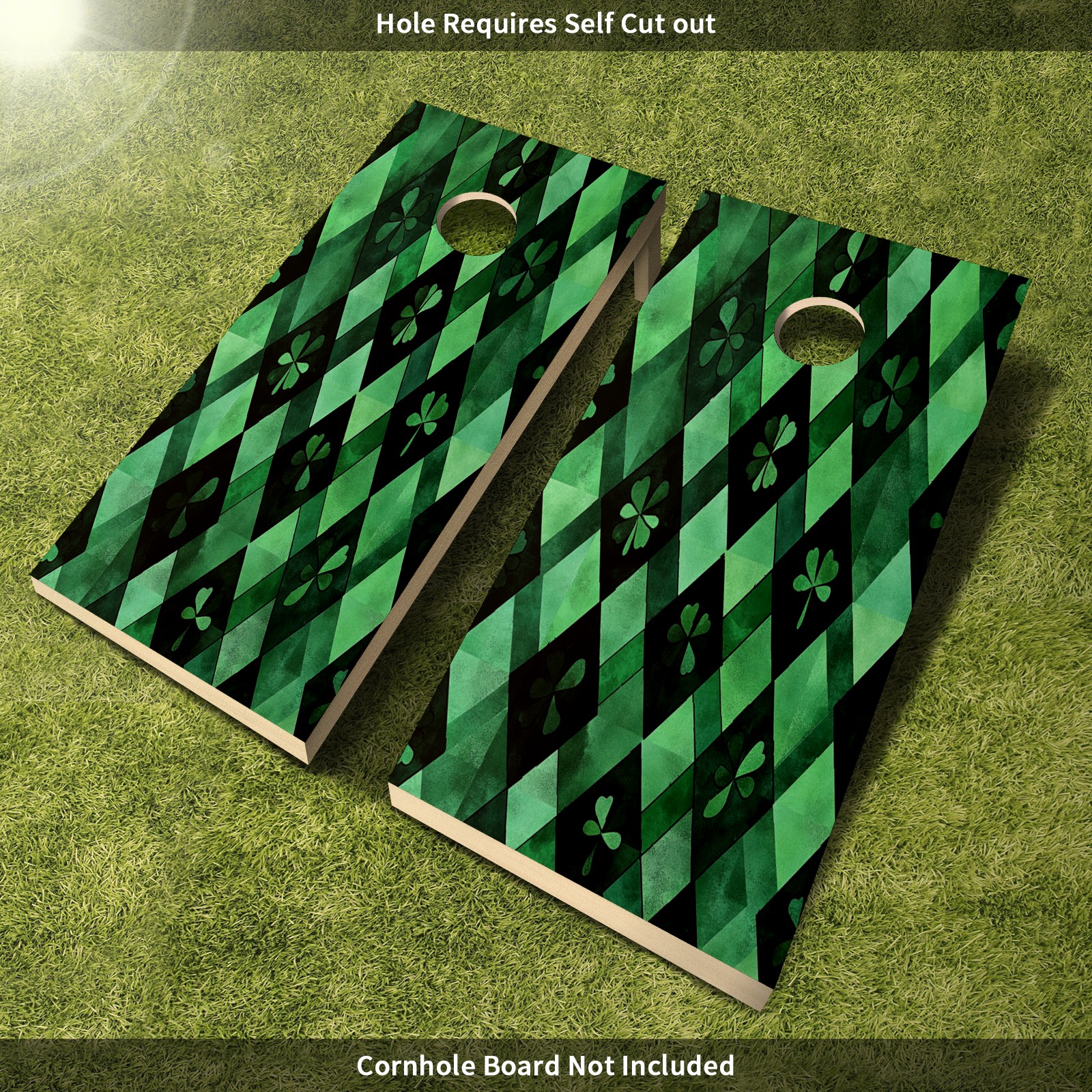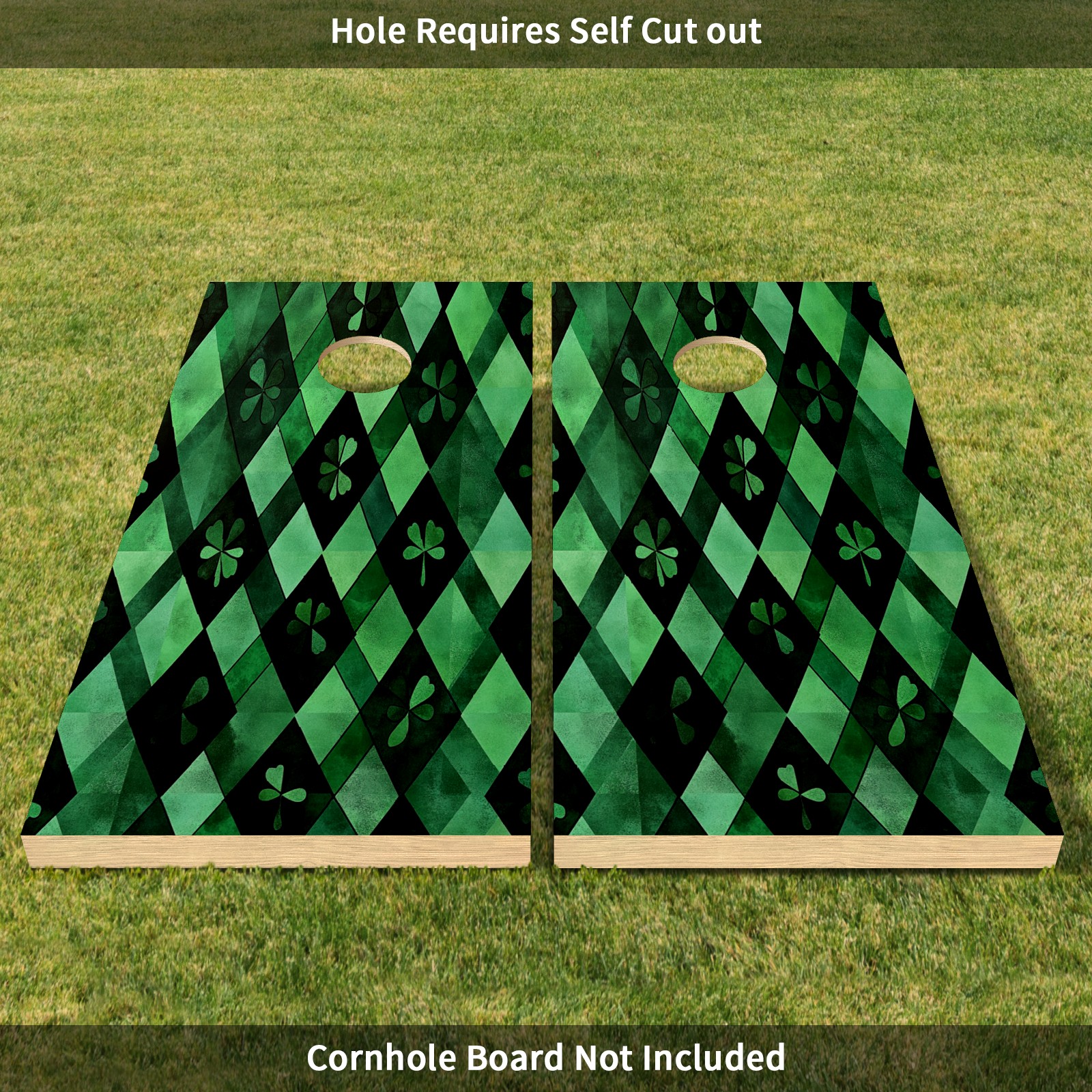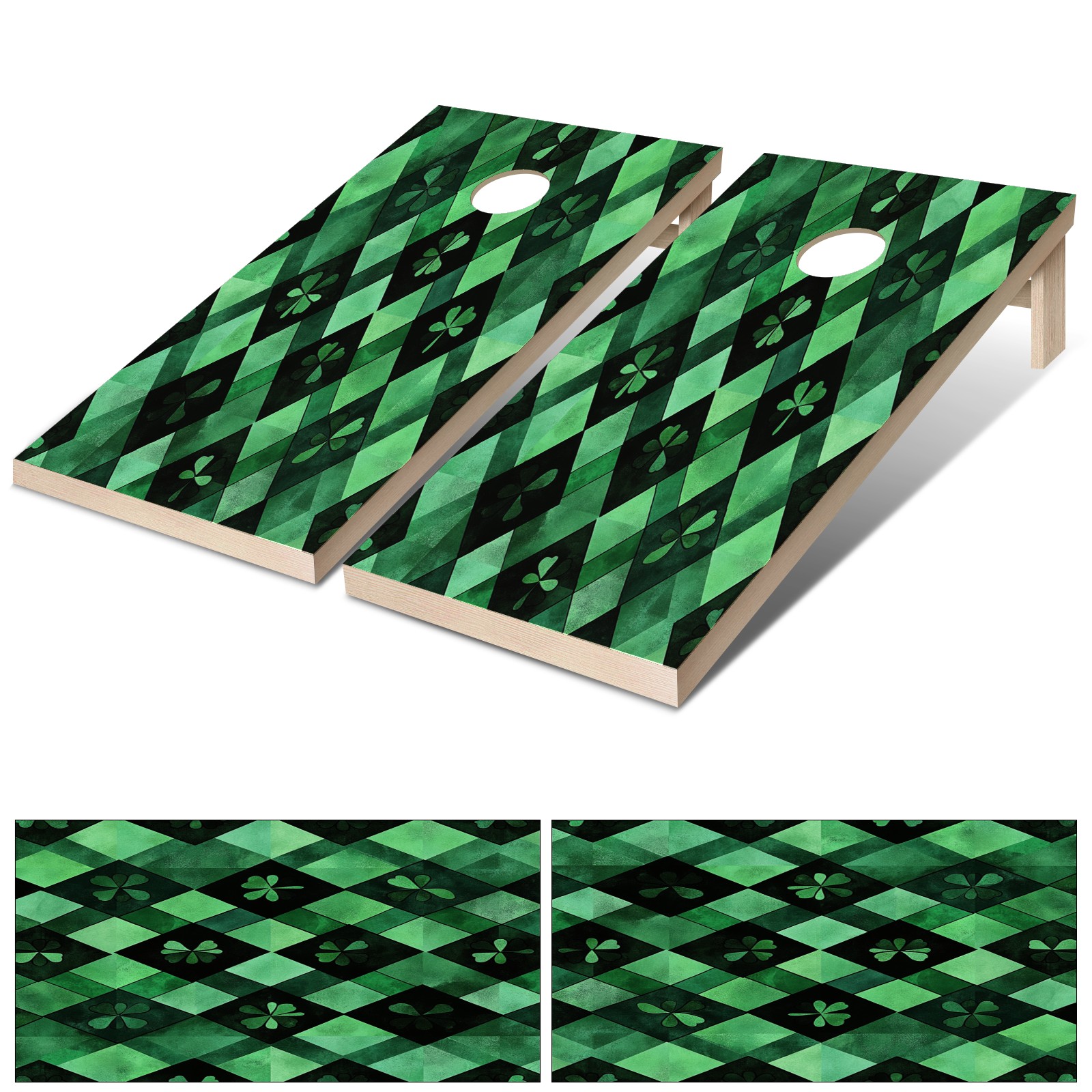Portable 4x2 Ft Cornhole Boards Set with Two-piece Game Sticker(Decals ONLY), Easy to Apply - Corn Hole Games for Adults Outdoor Bean Bag Toss Game Green Clover Pattern4