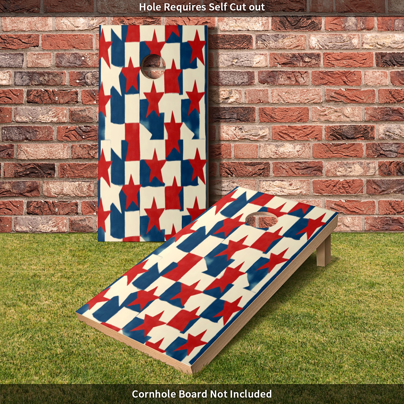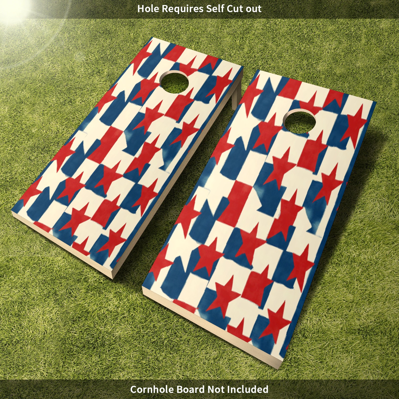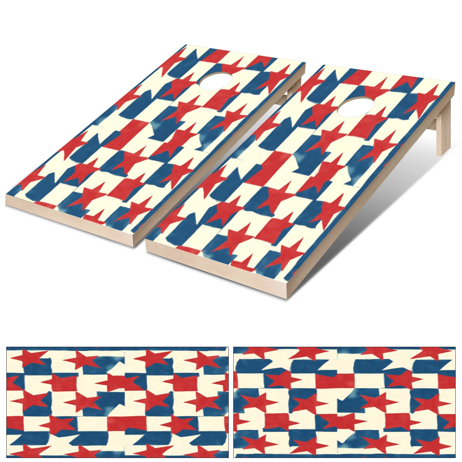 Portable 4x2 Ft Cornhole Boards Set with Two-piece Game Sticker(Decals ONLY), Easy to Apply - Corn Hole Games for Adults Outdoor Bean Bag Toss Game Red Blue Star Pattern4