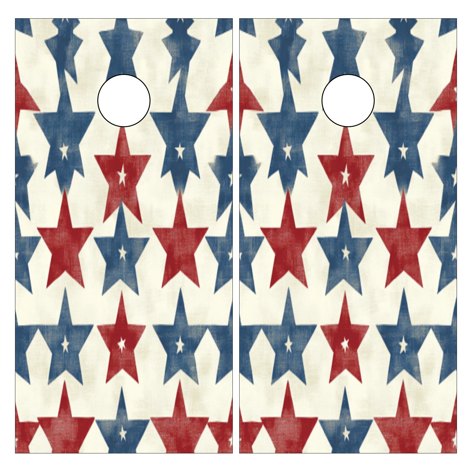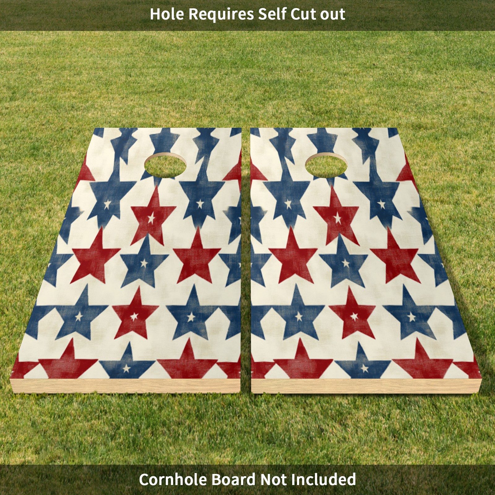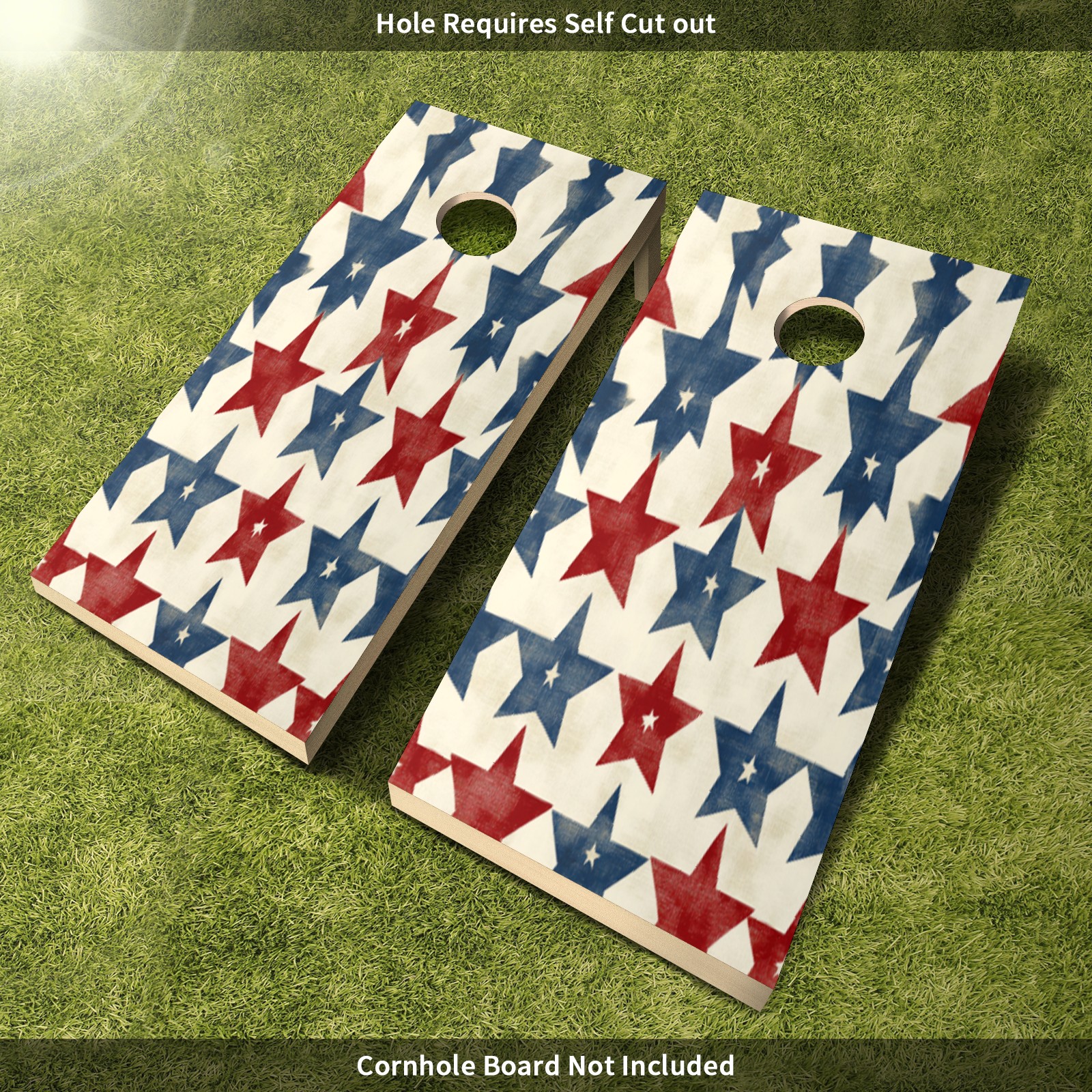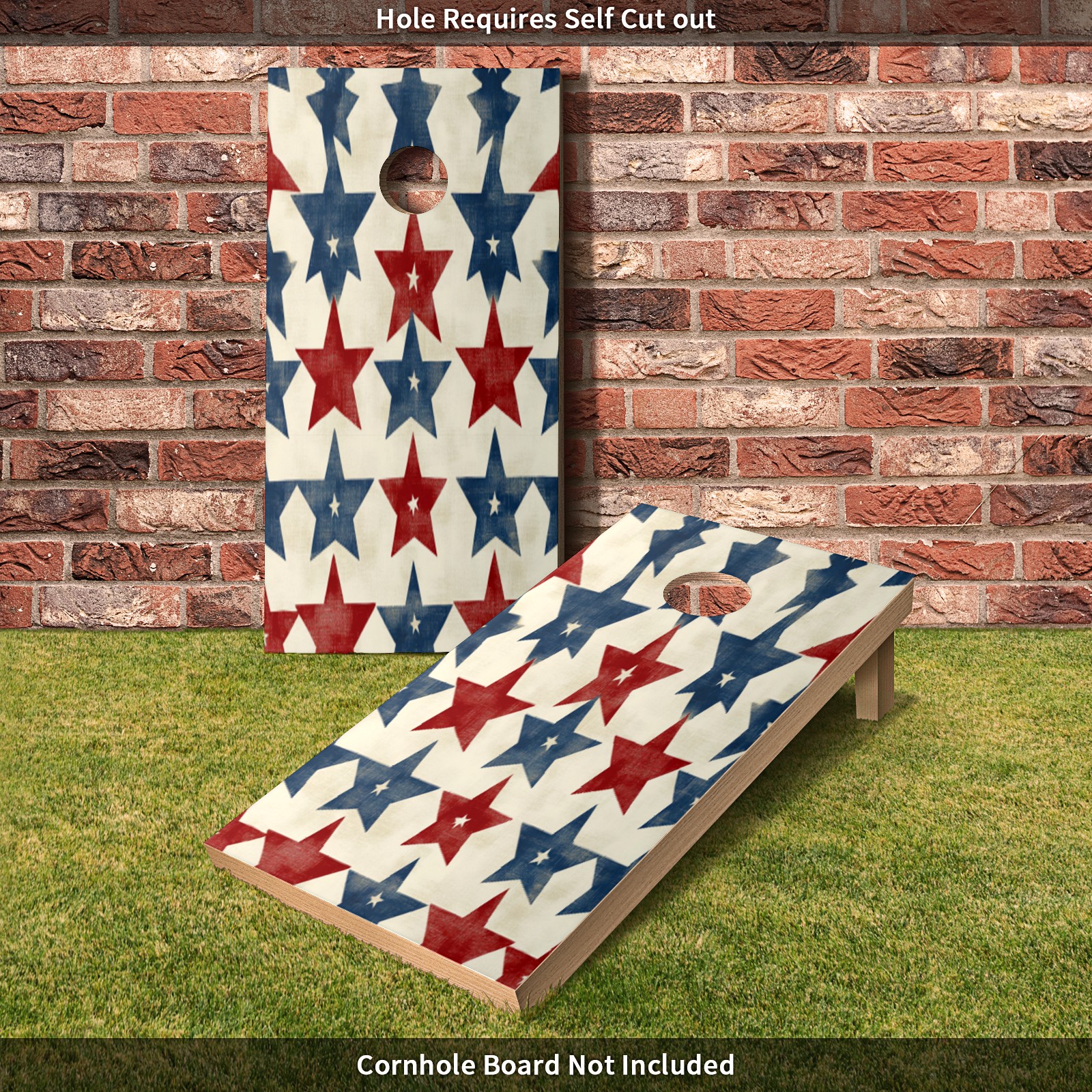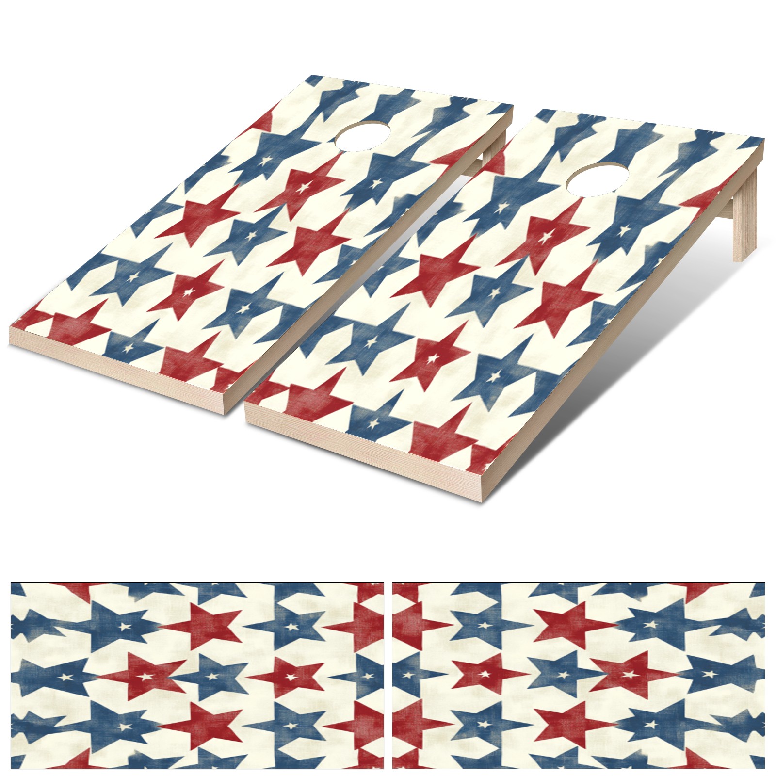Portable 4x2 Ft Cornhole Boards Set with Two-piece Game Sticker(Decals ONLY), Easy to Apply - Corn Hole Games for Adults Outdoor Bean Bag Toss Game Red Blue Star Pattern3