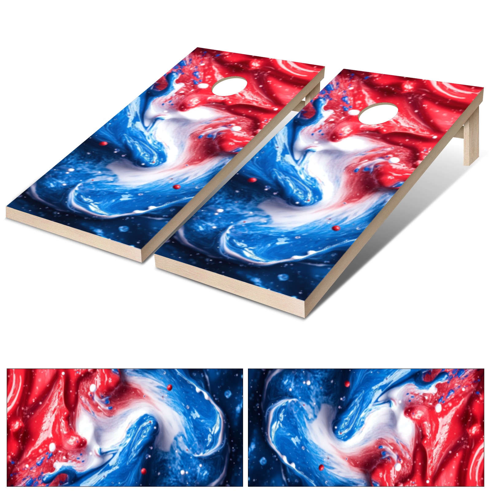 Portable 4x2 Ft Cornhole Boards Set with Two-piece Game Sticker(Decals ONLY), Easy to Apply - Corn Hole Games for Adults Outdoor Bean Bag Toss Game Ink Splash Pattern