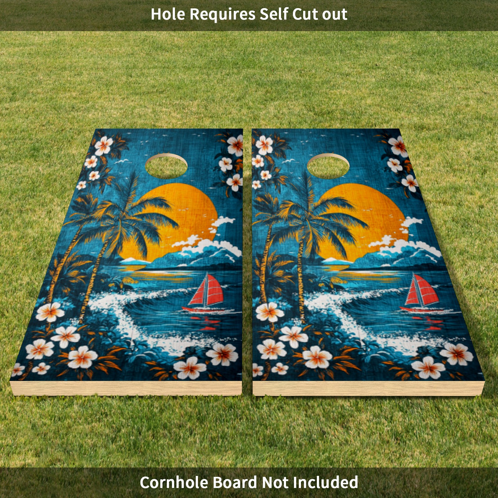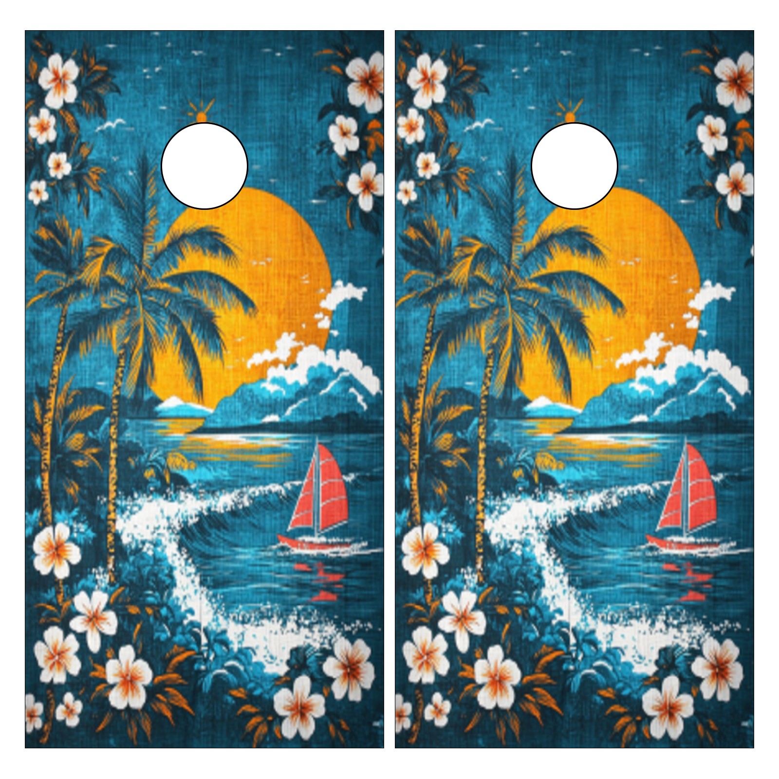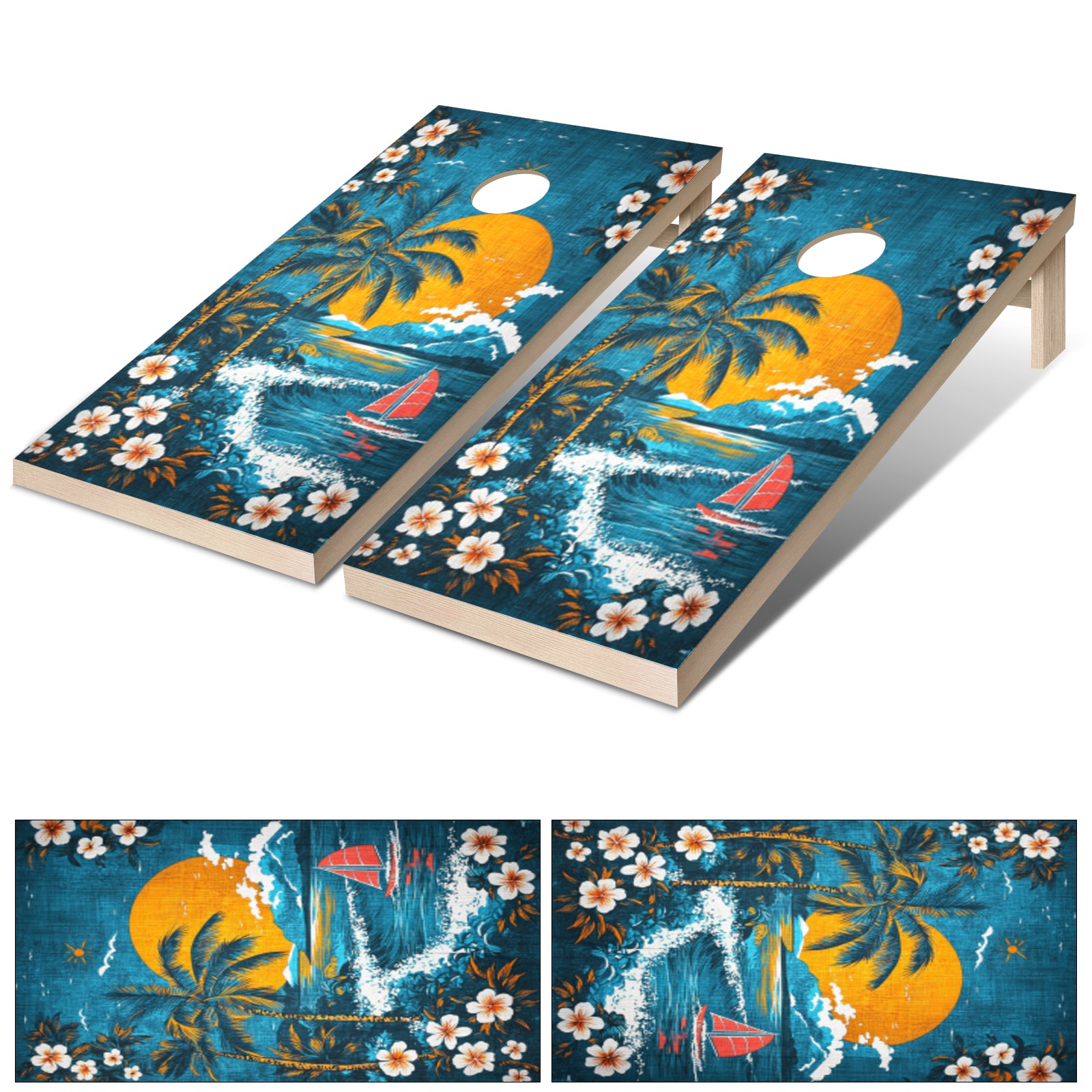 Portable 4x2 Ft Cornhole Boards Set with Two-piece Game Sticker(Decals ONLY), Easy to Apply - Corn Hole Games for Adults Outdoor Bean Bag Toss Game Hawaiian Beach Pattern2