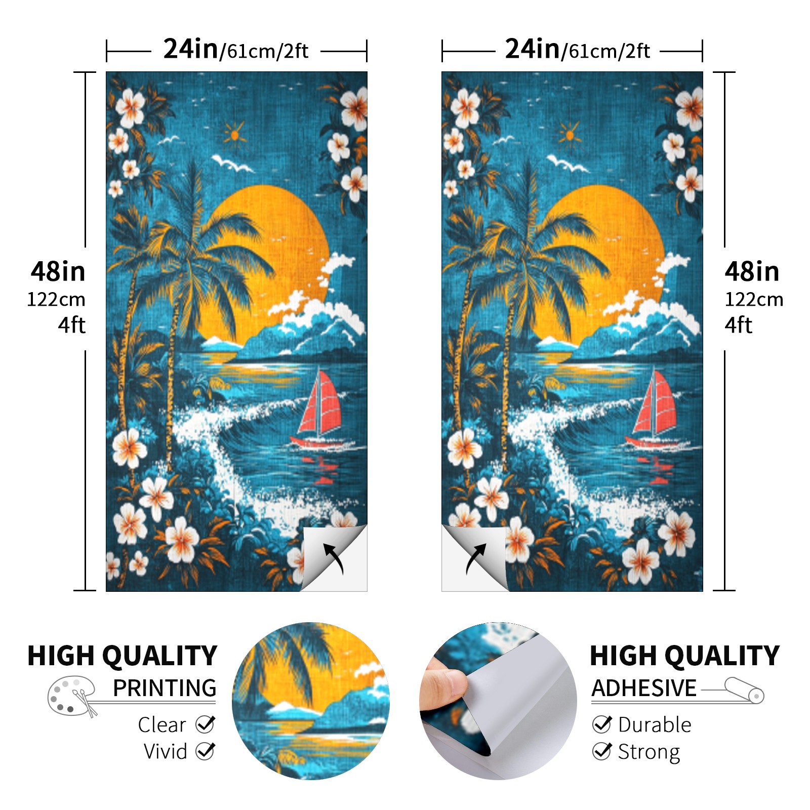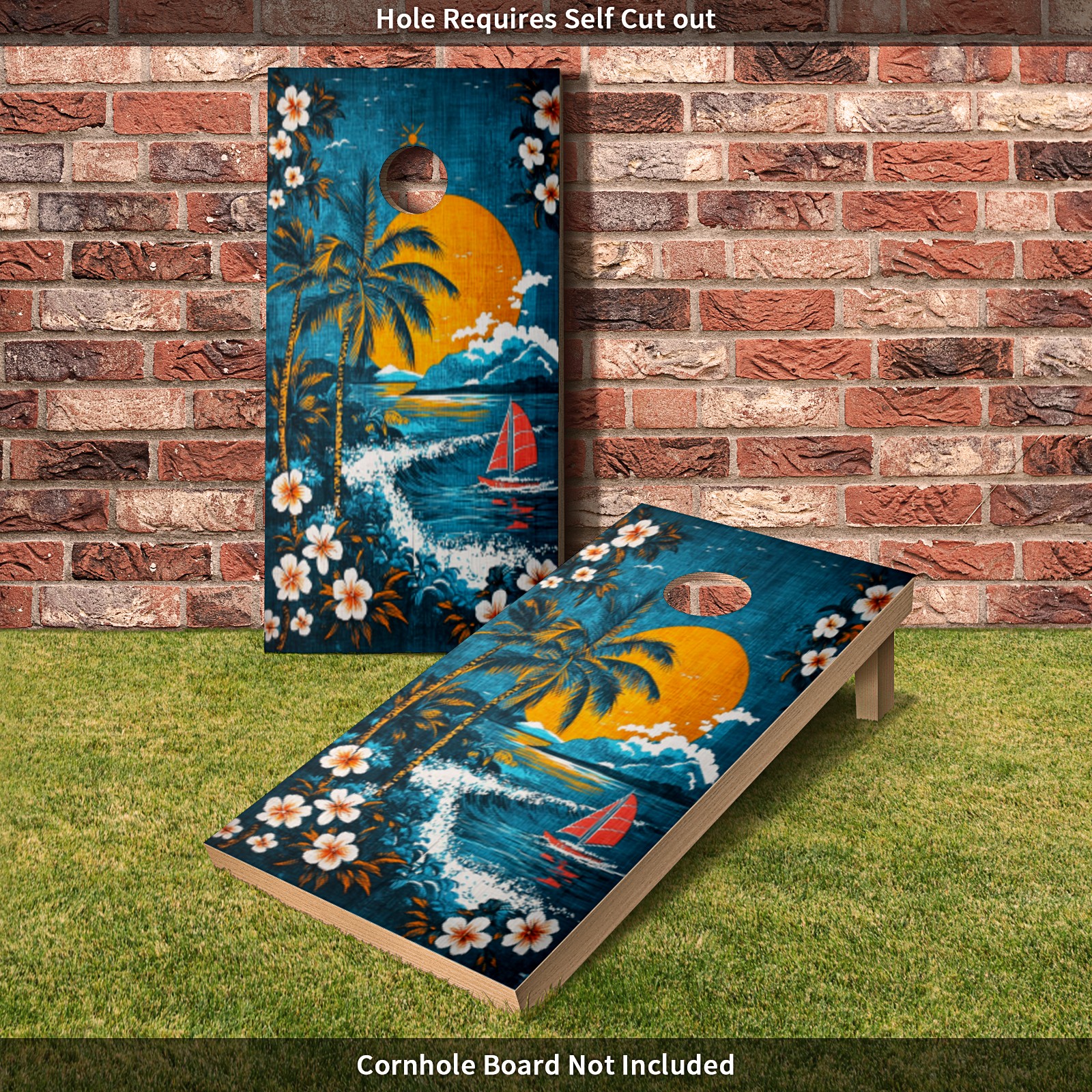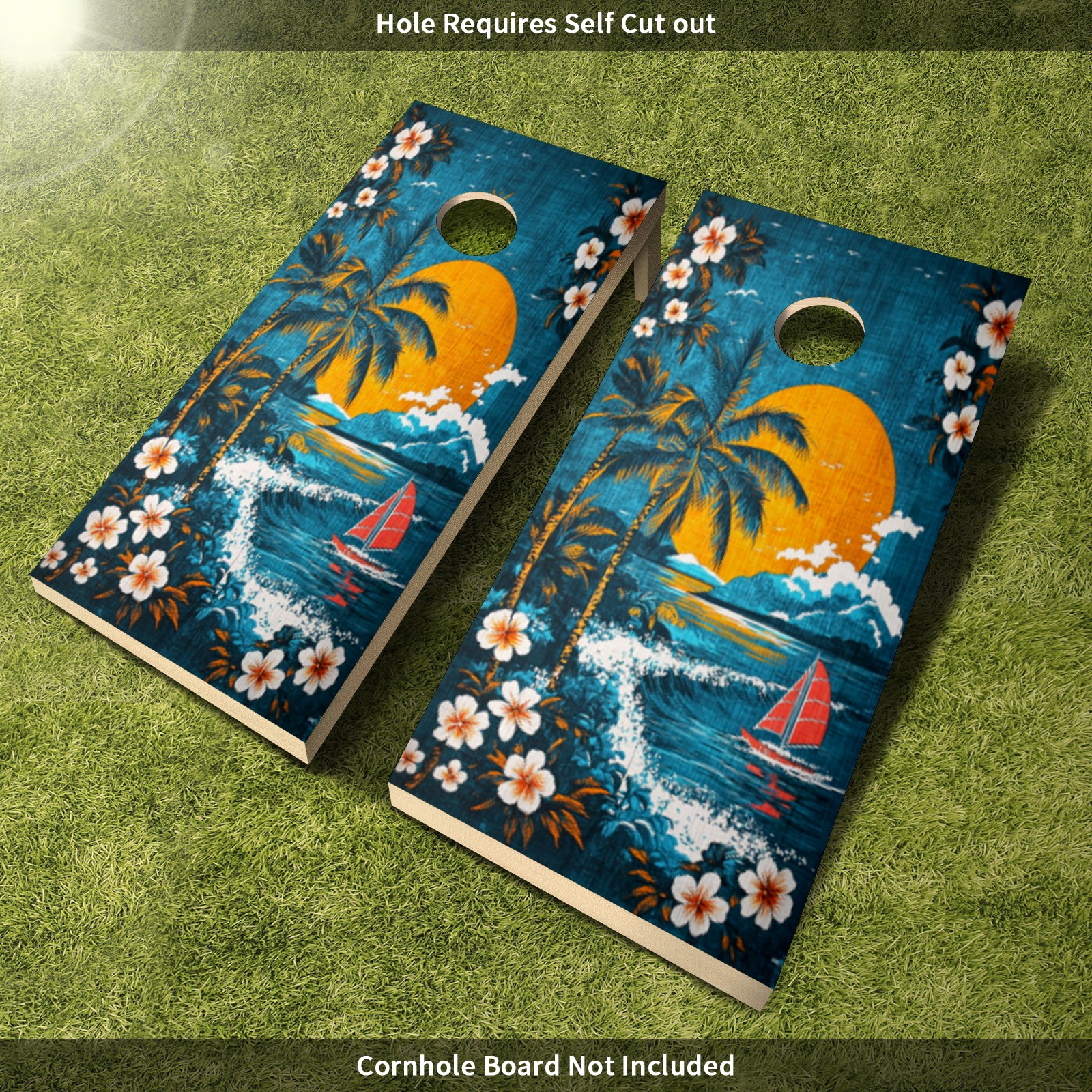 Portable 4x2 Ft Cornhole Boards Set with Two-piece Game Sticker(Decals ONLY), Easy to Apply - Corn Hole Games for Adults Outdoor Bean Bag Toss Game Hawaiian Beach Pattern2