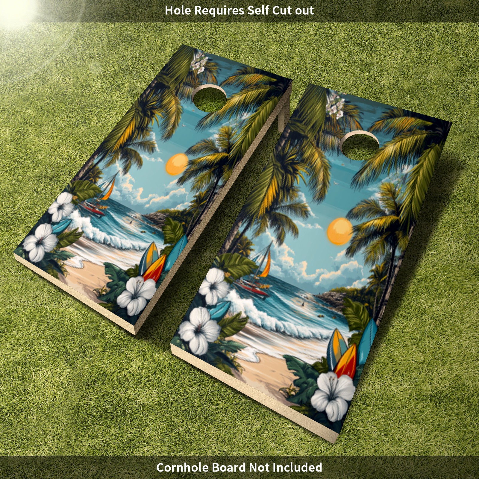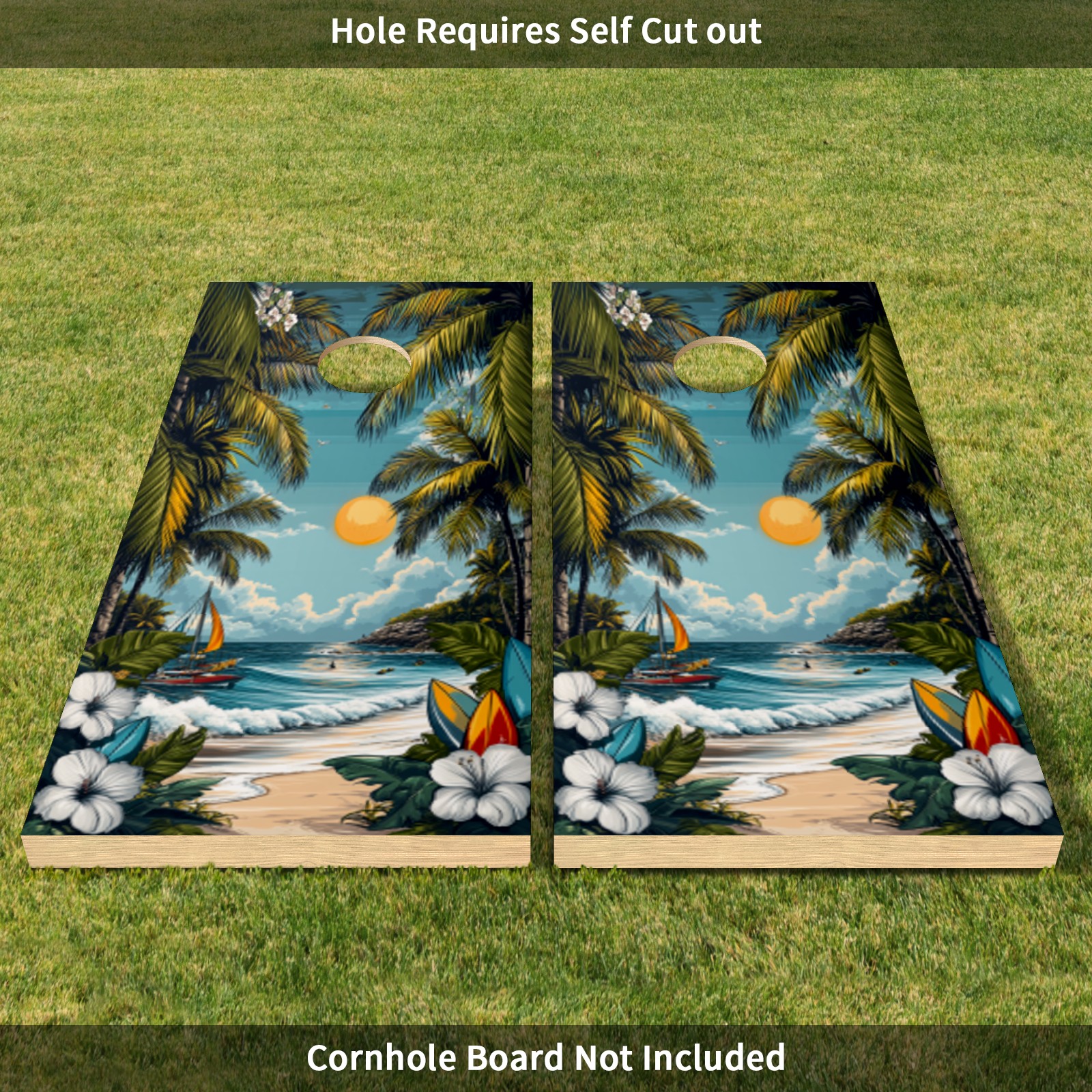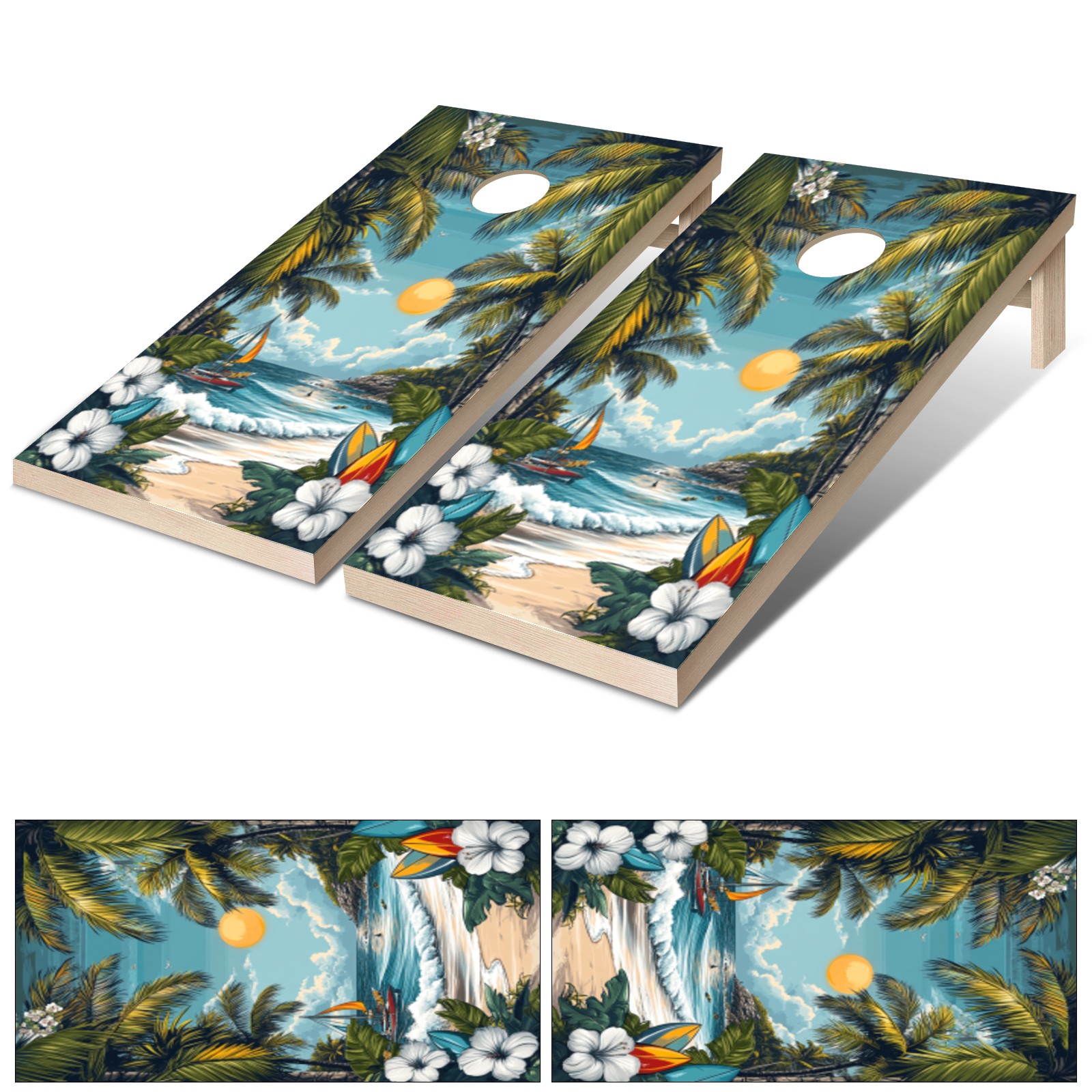 Portable 4x2 Ft Cornhole Boards Set with Two-piece Game Sticker(Decals ONLY), Easy to Apply - Corn Hole Games for Adults Outdoor Bean Bag Toss Game Hawaiian Beach Pattern