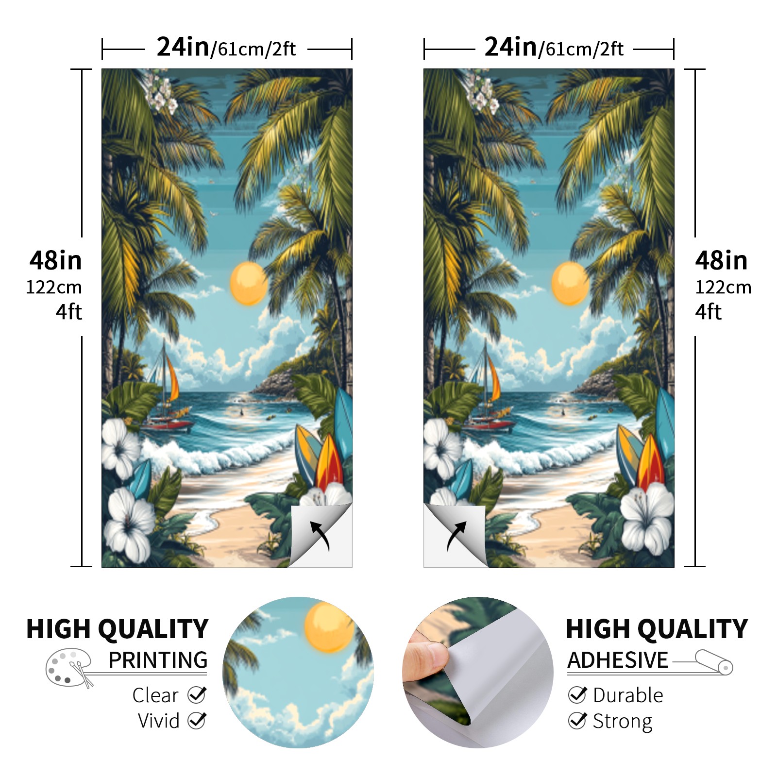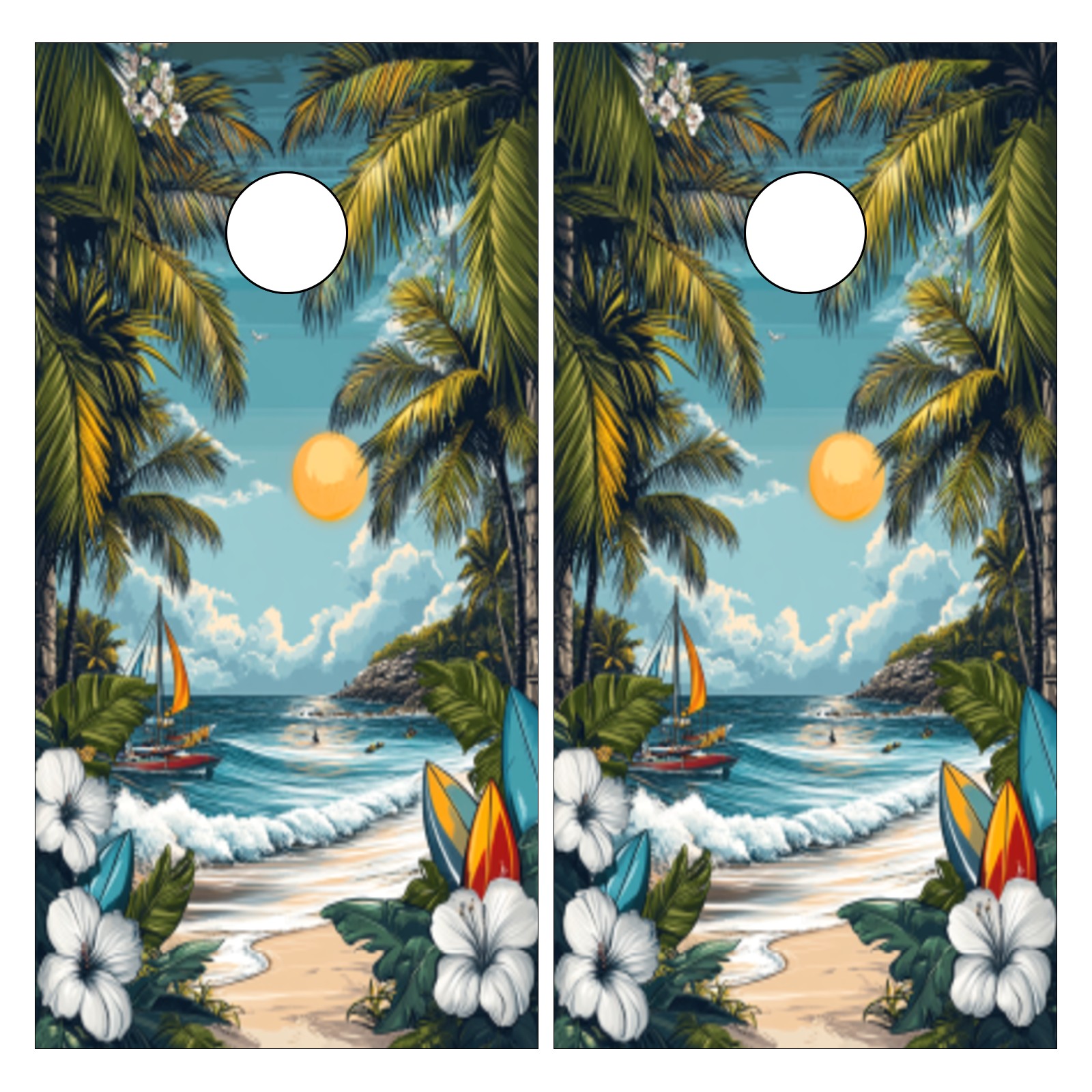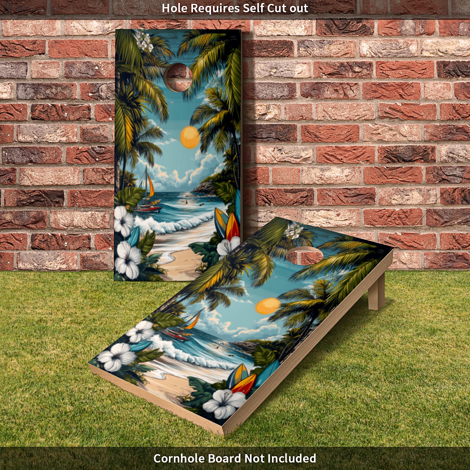 Portable 4x2 Ft Cornhole Boards Set with Two-piece Game Sticker(Decals ONLY), Easy to Apply - Corn Hole Games for Adults Outdoor Bean Bag Toss Game Hawaiian Beach Pattern
