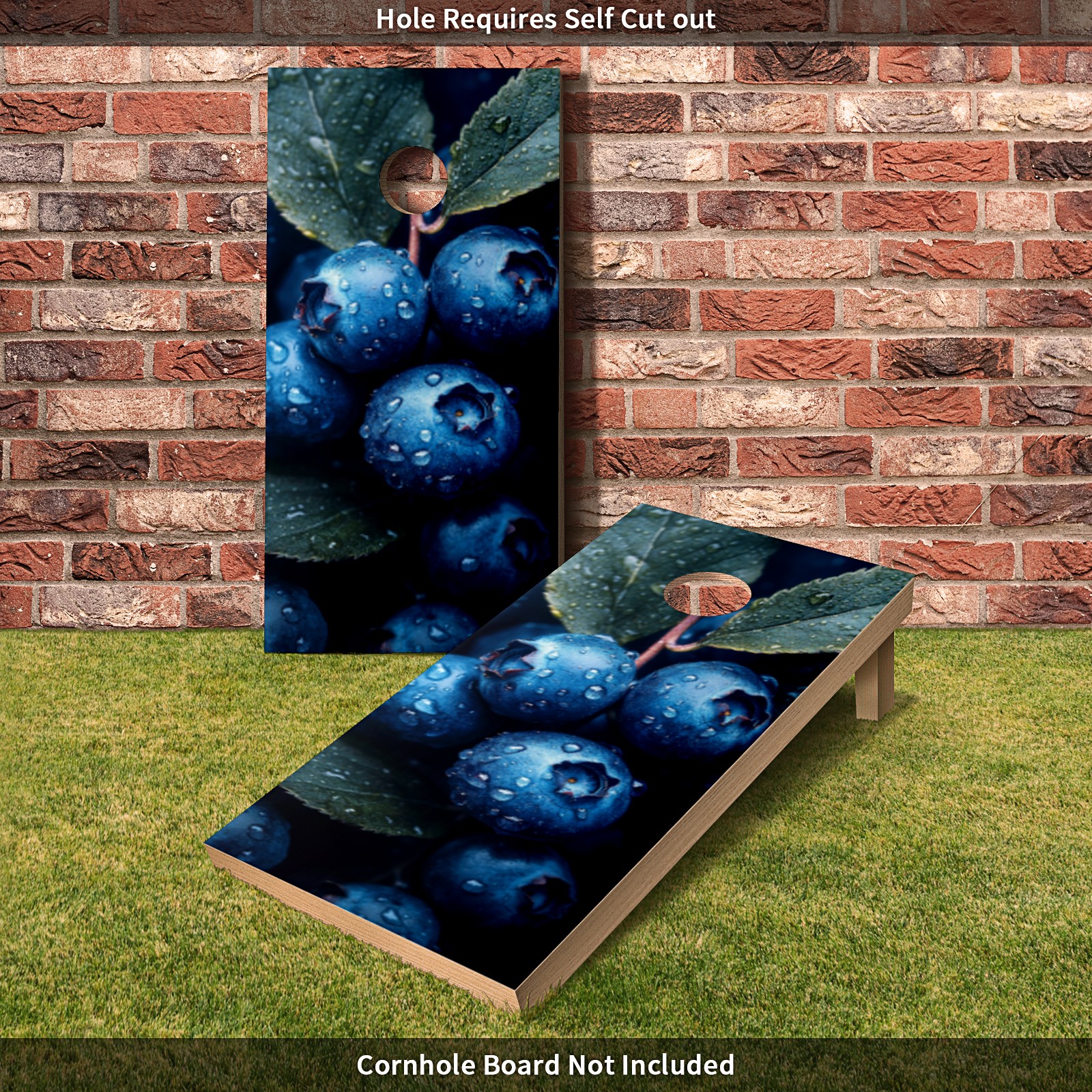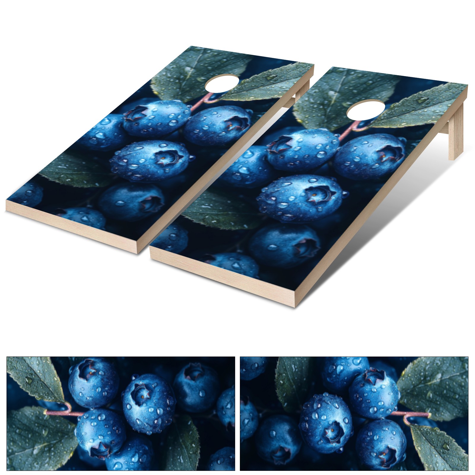 Portable 4x2 Ft Cornhole Boards Set with Two-piece Game Sticker(Decals ONLY), Easy to Apply - Corn Hole Games for Adults Outdoor Bean Bag Toss Game Blueberry Pattern1