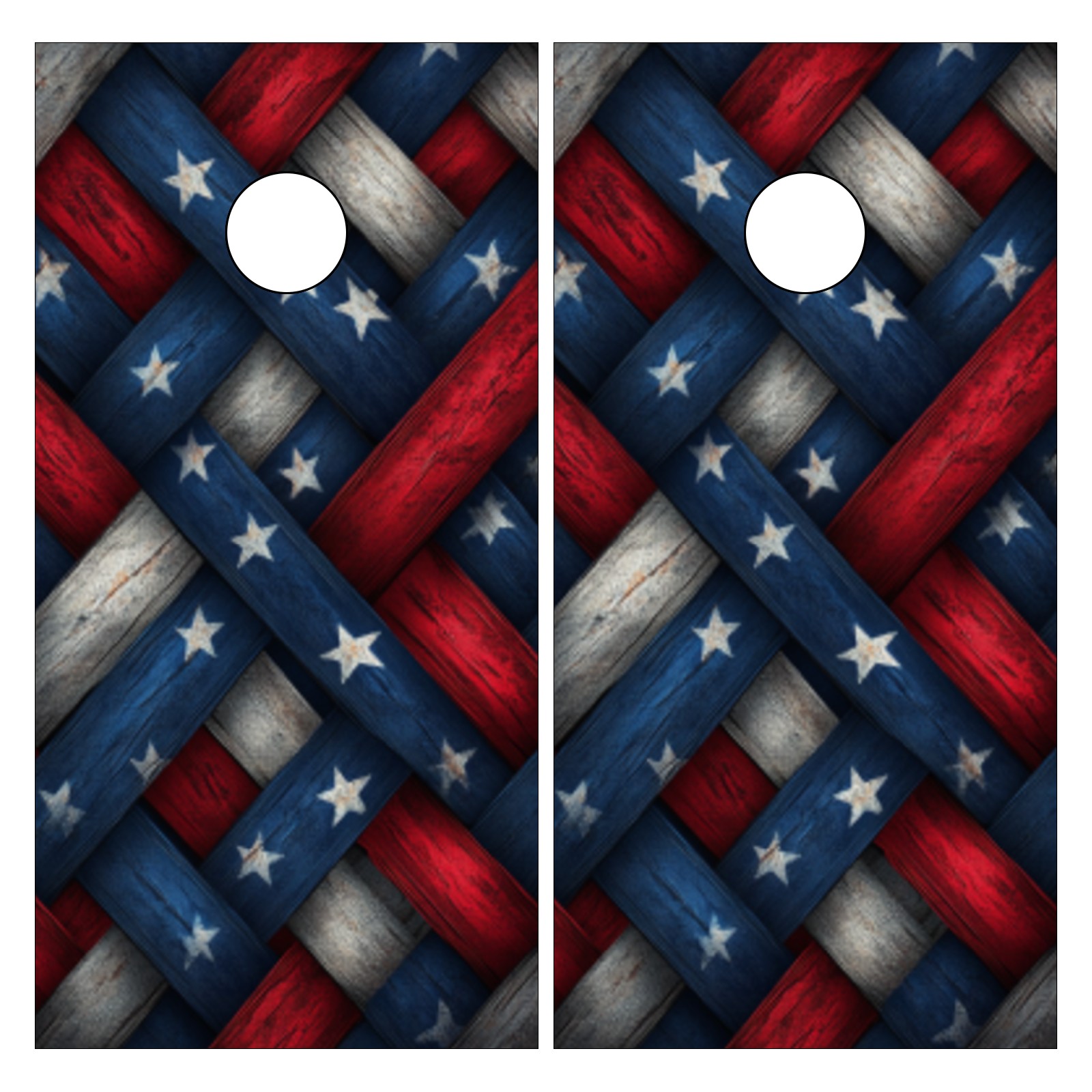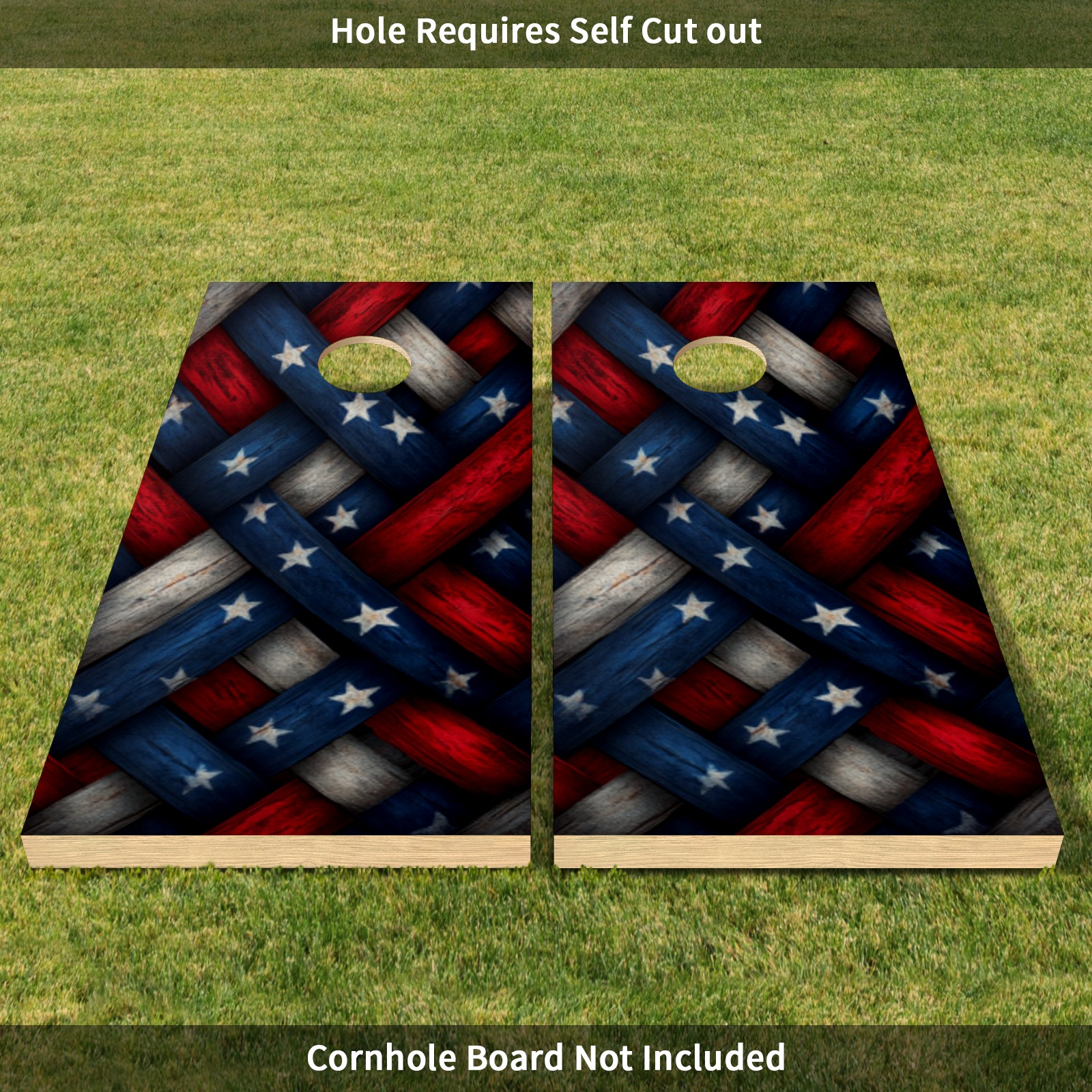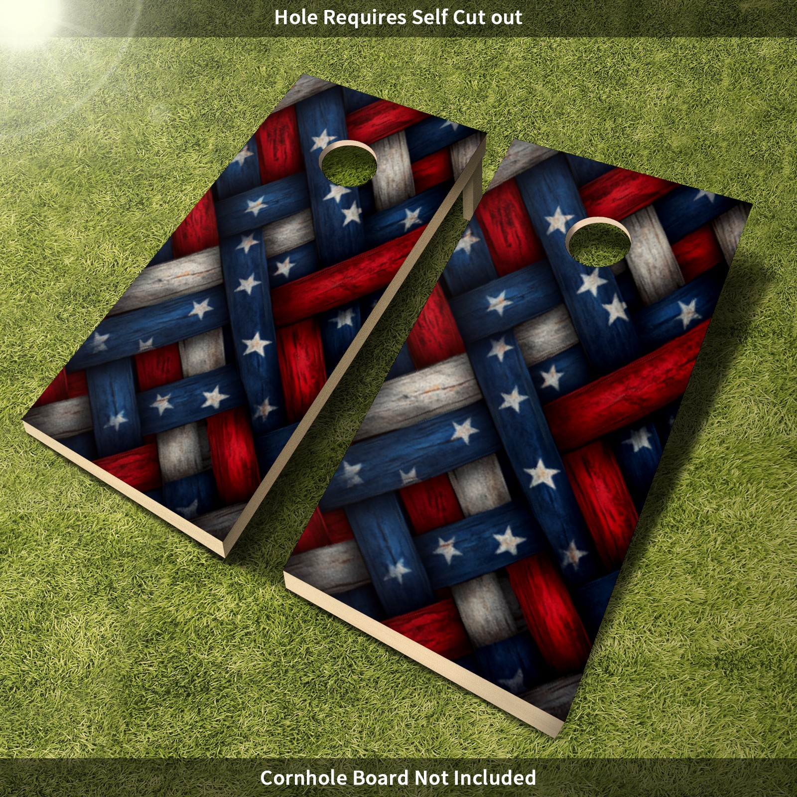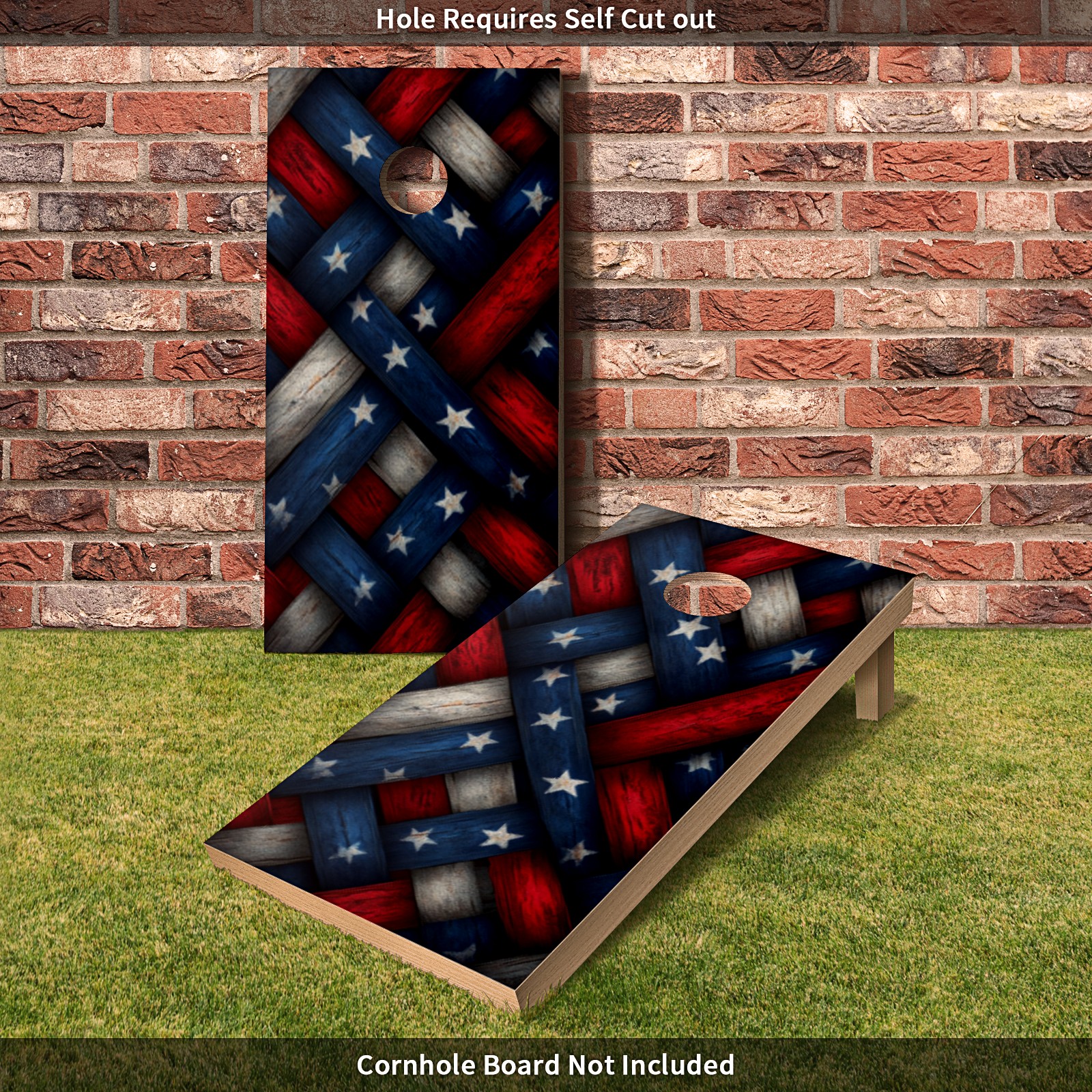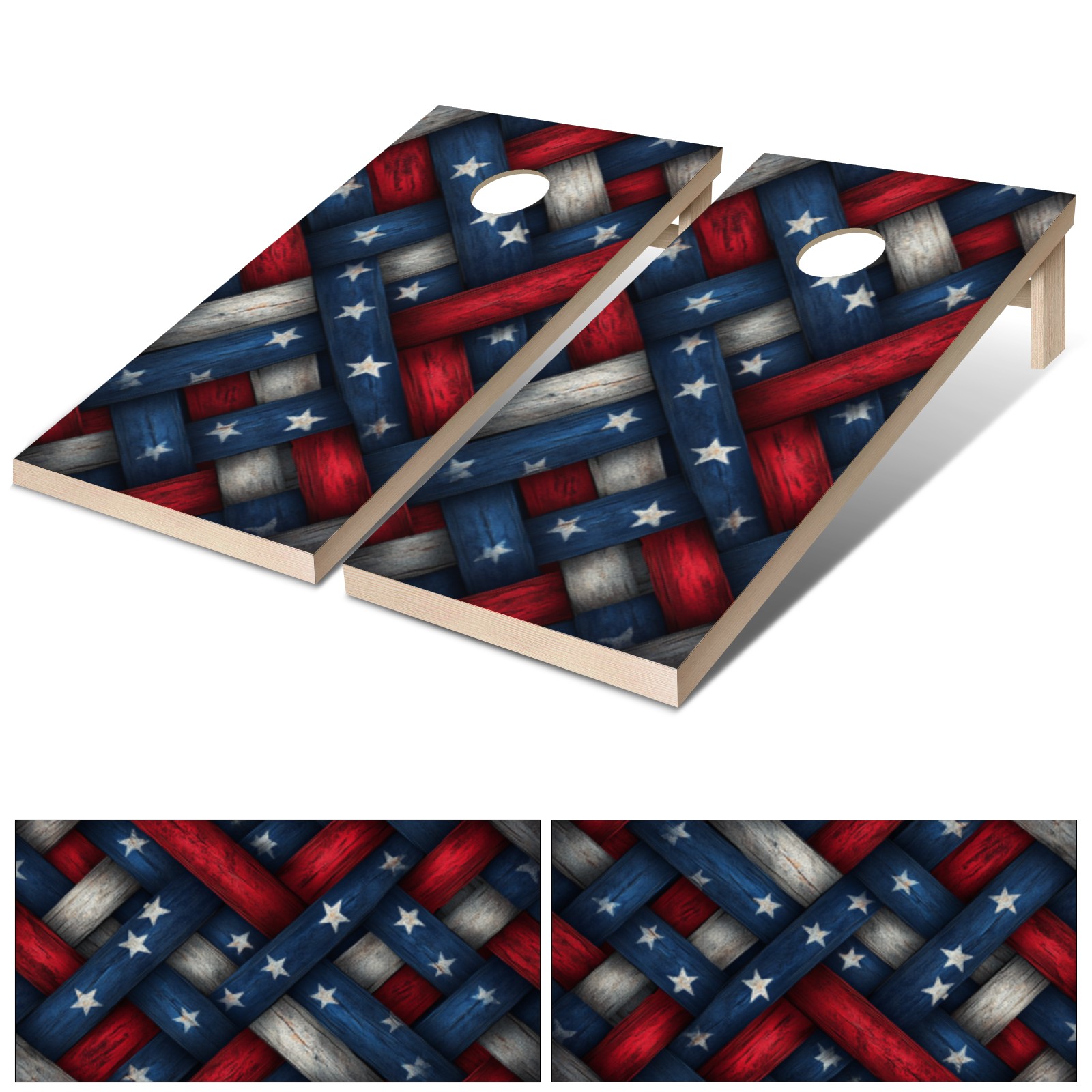 Portable 4x2 Ft Cornhole Boards Set with Two-piece Game Sticker(Decals ONLY), Easy to Apply - Corn Hole Games for Adults Outdoor Bean Bag Toss Game Red Blue Rope Pattern