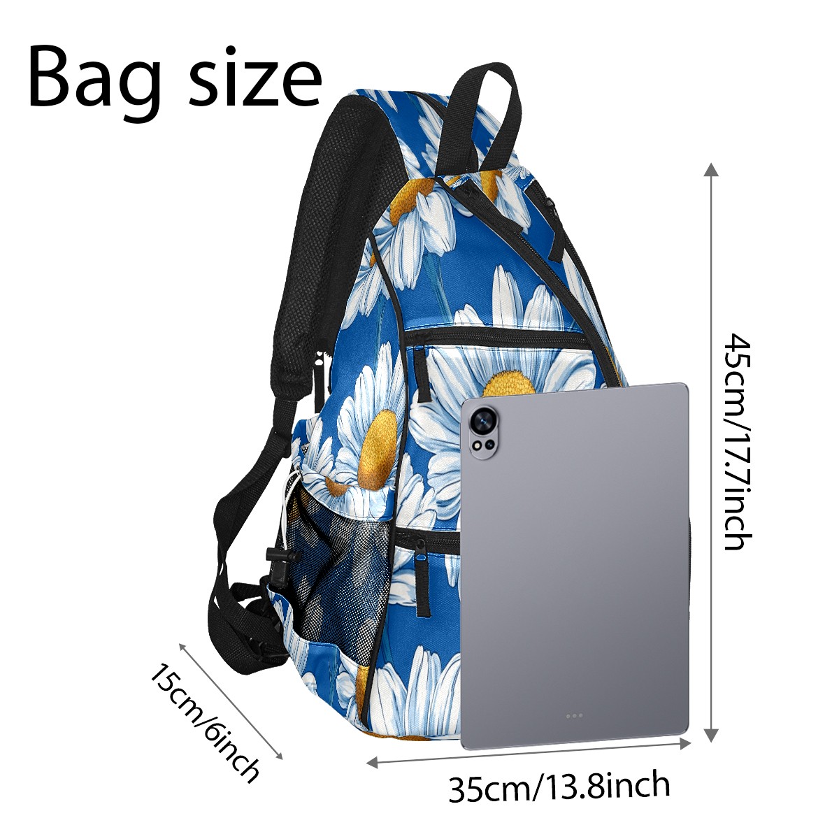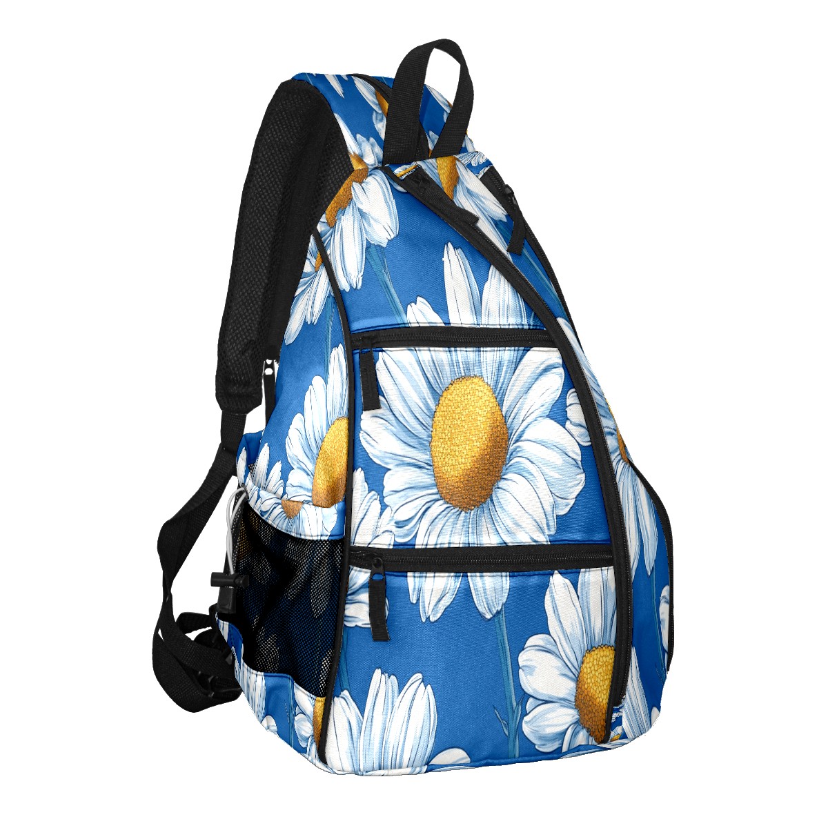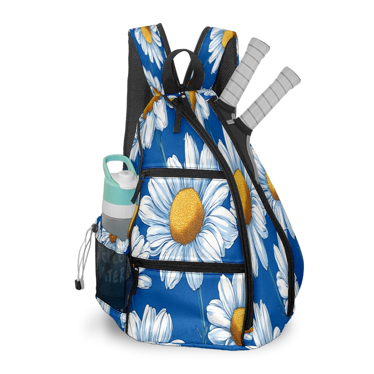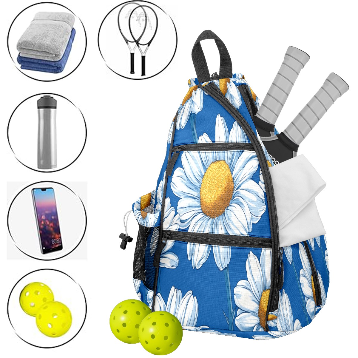 Pickleball Bag - Blue Daisy Pattern Unisex Pickleball Backpack with Fence Hook, Adjustable Shoulder Straps, Security Pocket, Gift for Pickle Ball Enthusiasts