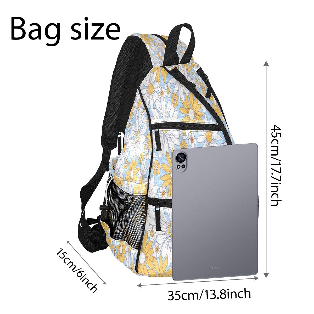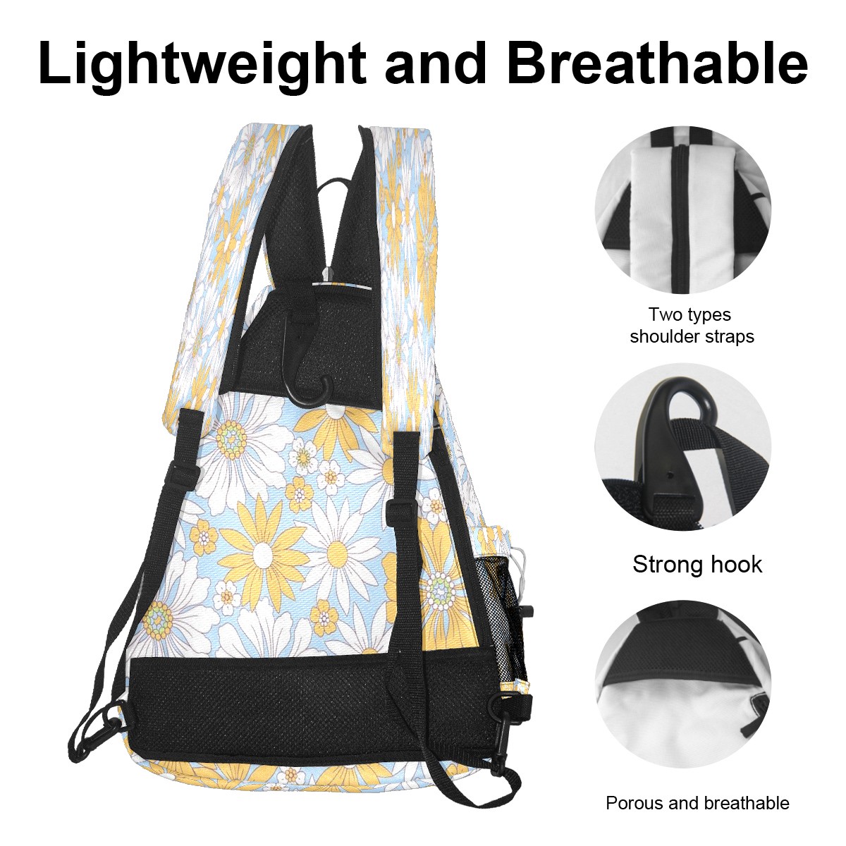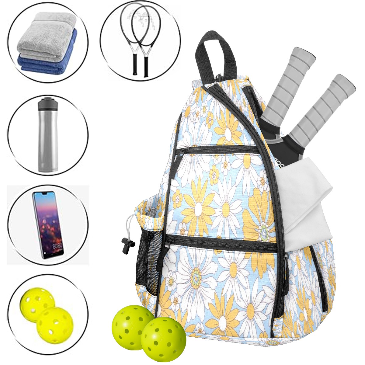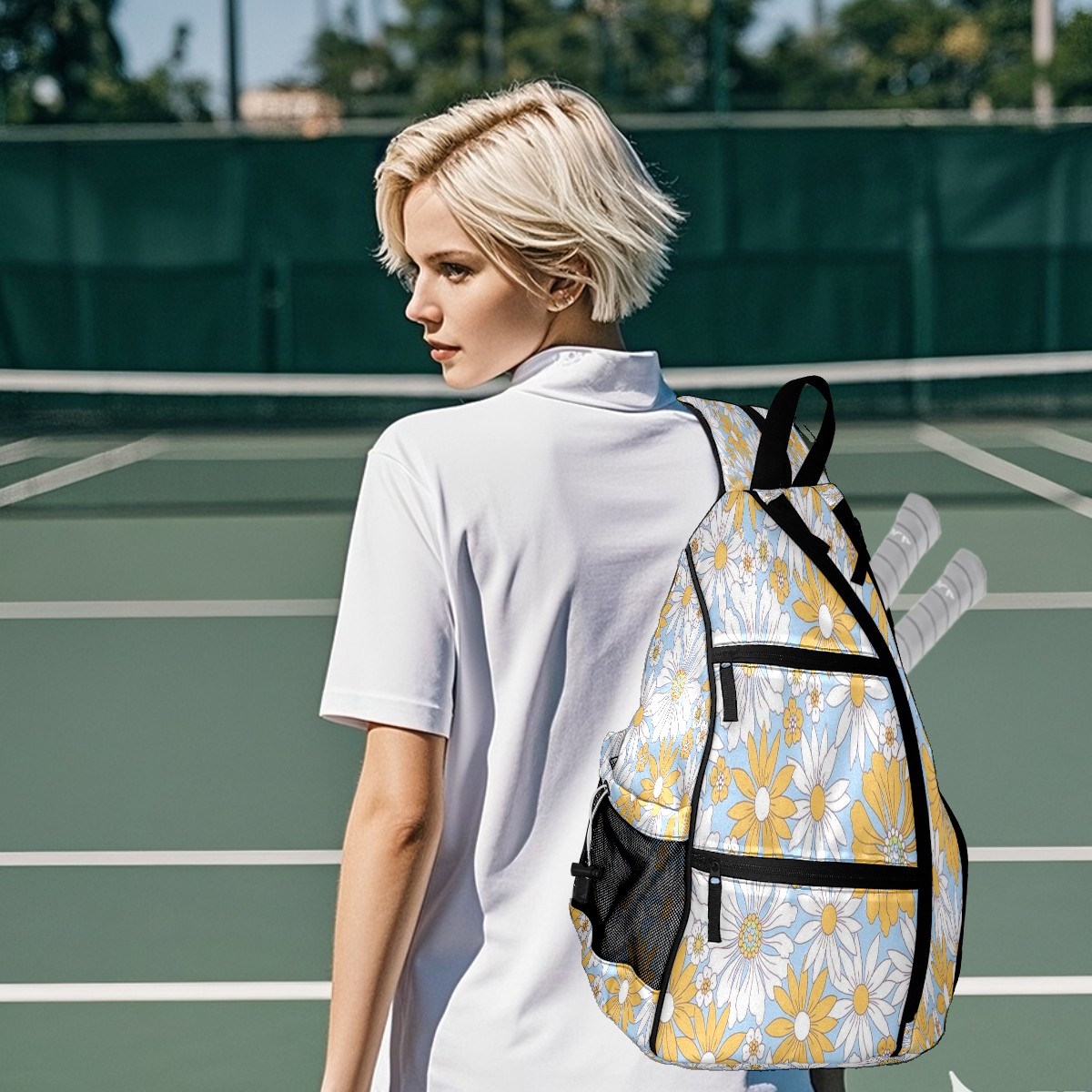 Pickleball Bag - Yellow Daisy Pattern Unisex Pickleball Backpack with Fence Hook, Adjustable Shoulder Straps, Security Pocket, Gift for Pickle Ball Enthusiasts