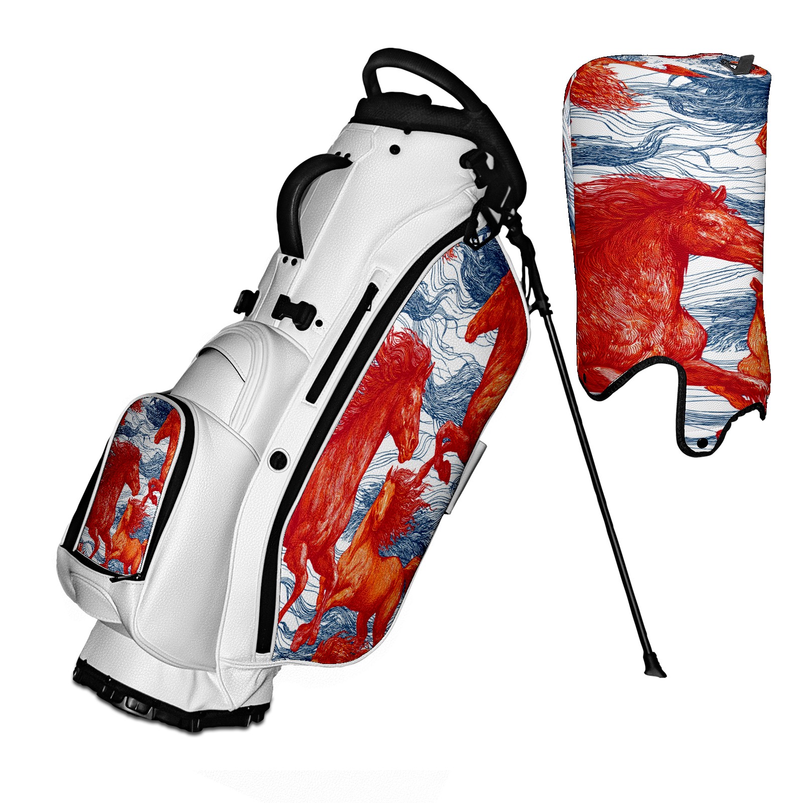 5 - Way Divider Golf Stand Bag, Lightweight Golf Bag with Padded Straps & Rain Cover for Men & Women, Ideal for Golf Courses & Driving Ranges Dynamic Red Horse