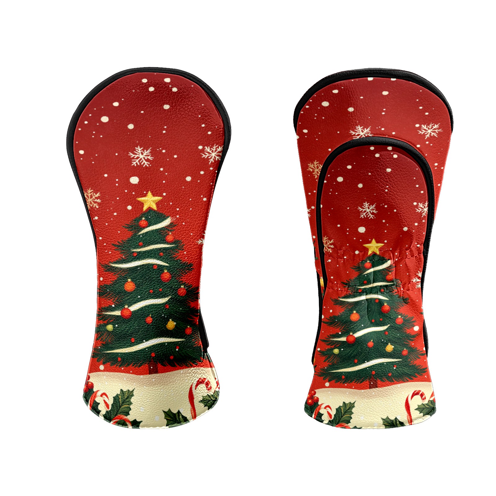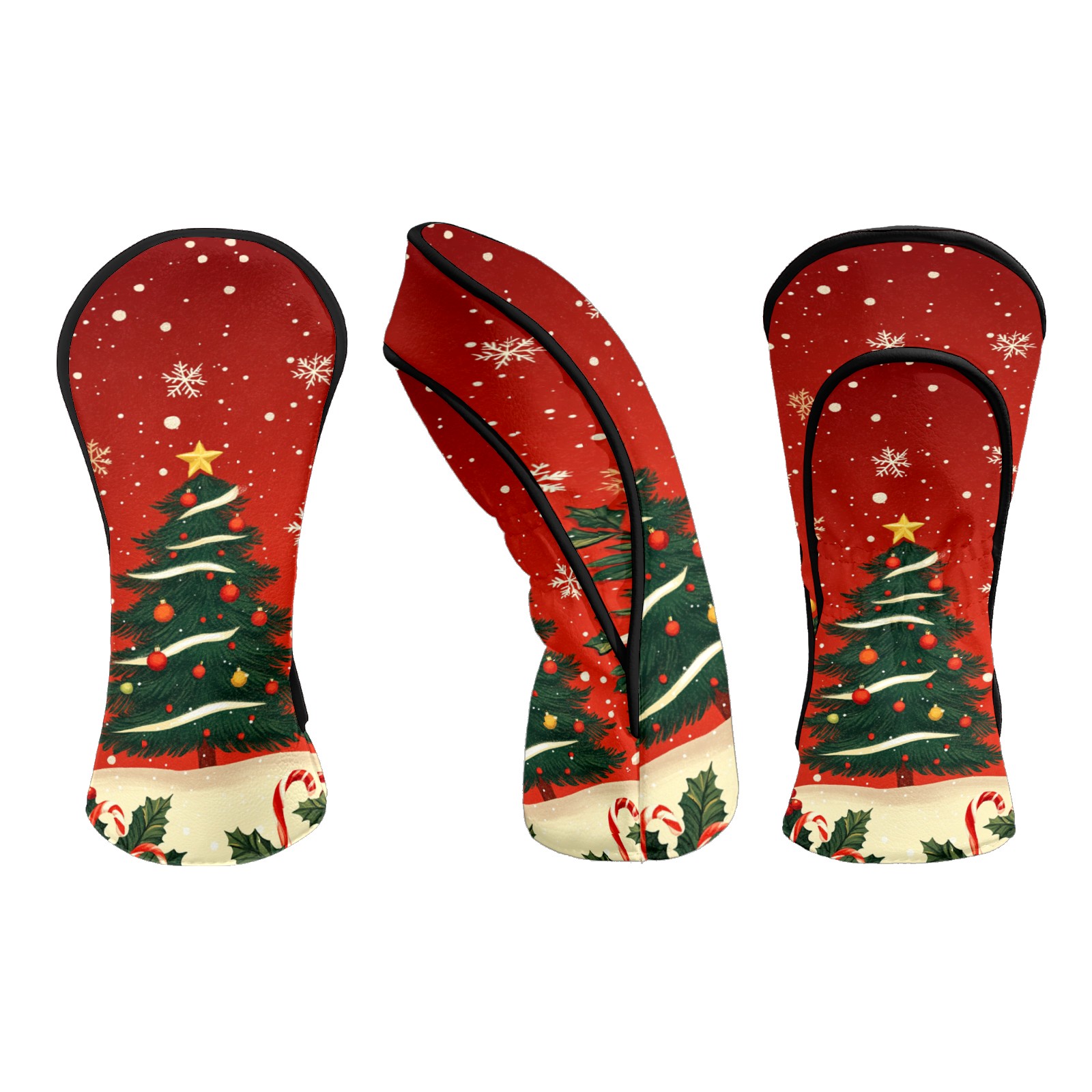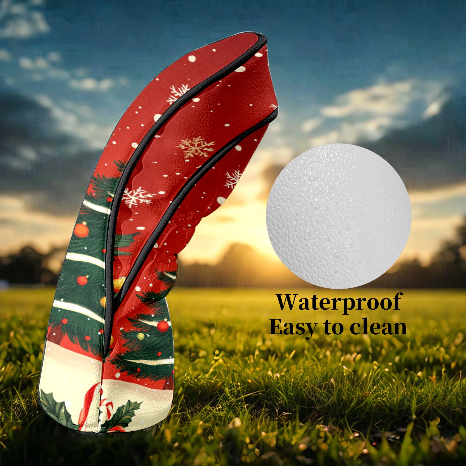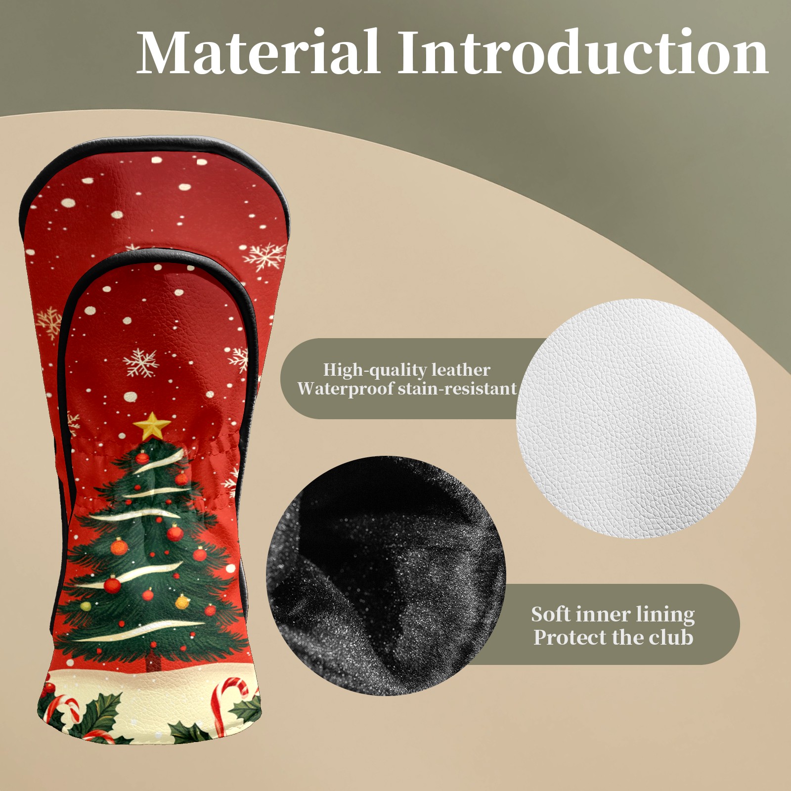 Golf Club Headcovers Waterproof PU Leather, Christmas Tree Pattern Design for Driver Fairway Woods Headcover, Inspired Gifts for Men Women