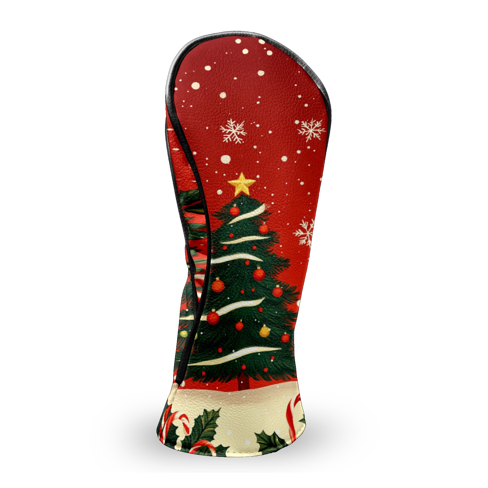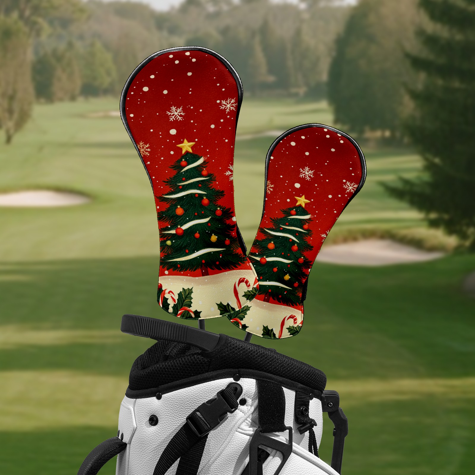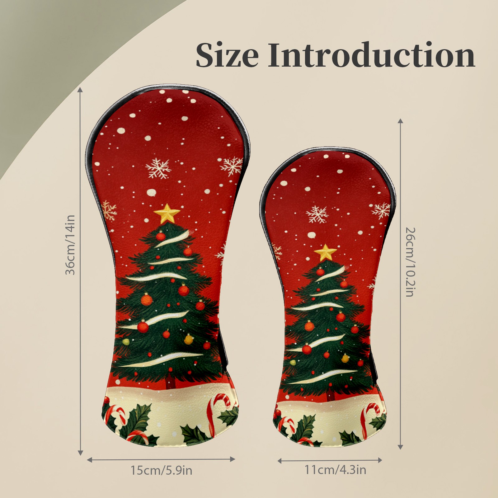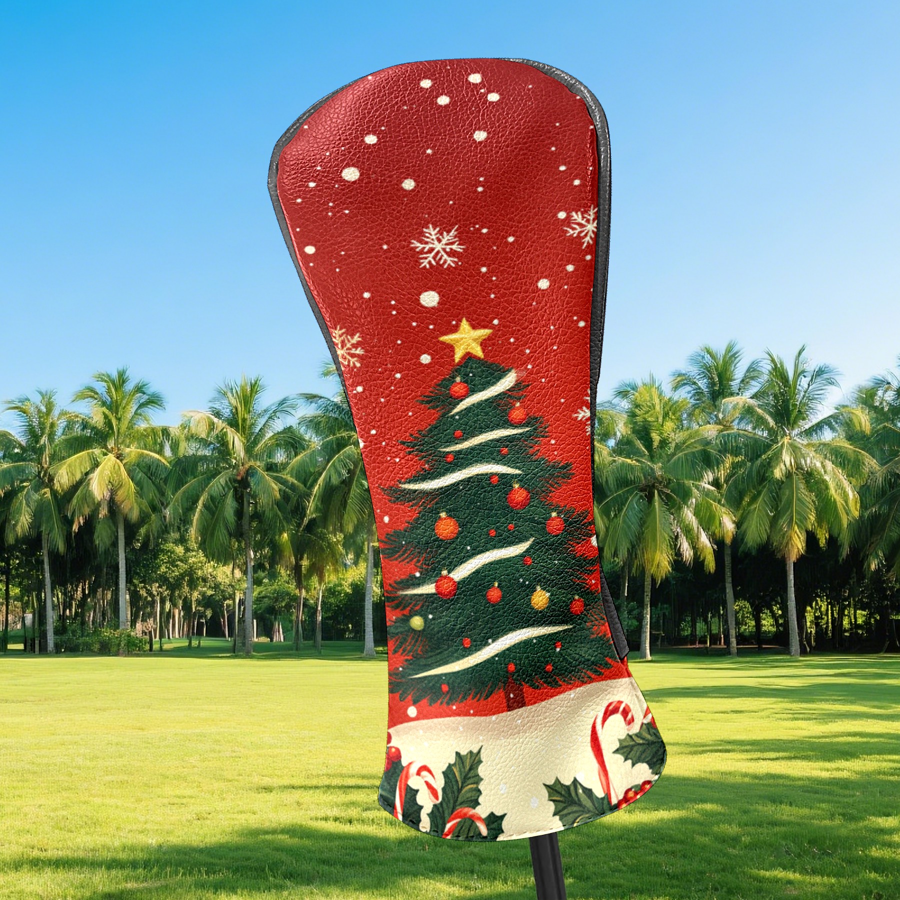 Golf Club Headcovers Waterproof PU Leather, Christmas Tree Pattern Design for Driver Fairway Woods Headcover, Inspired Gifts for Men Women