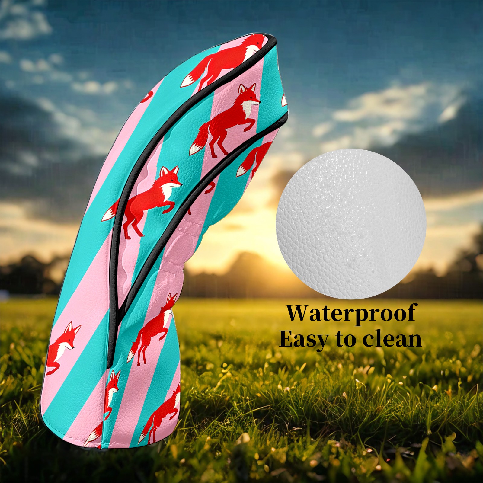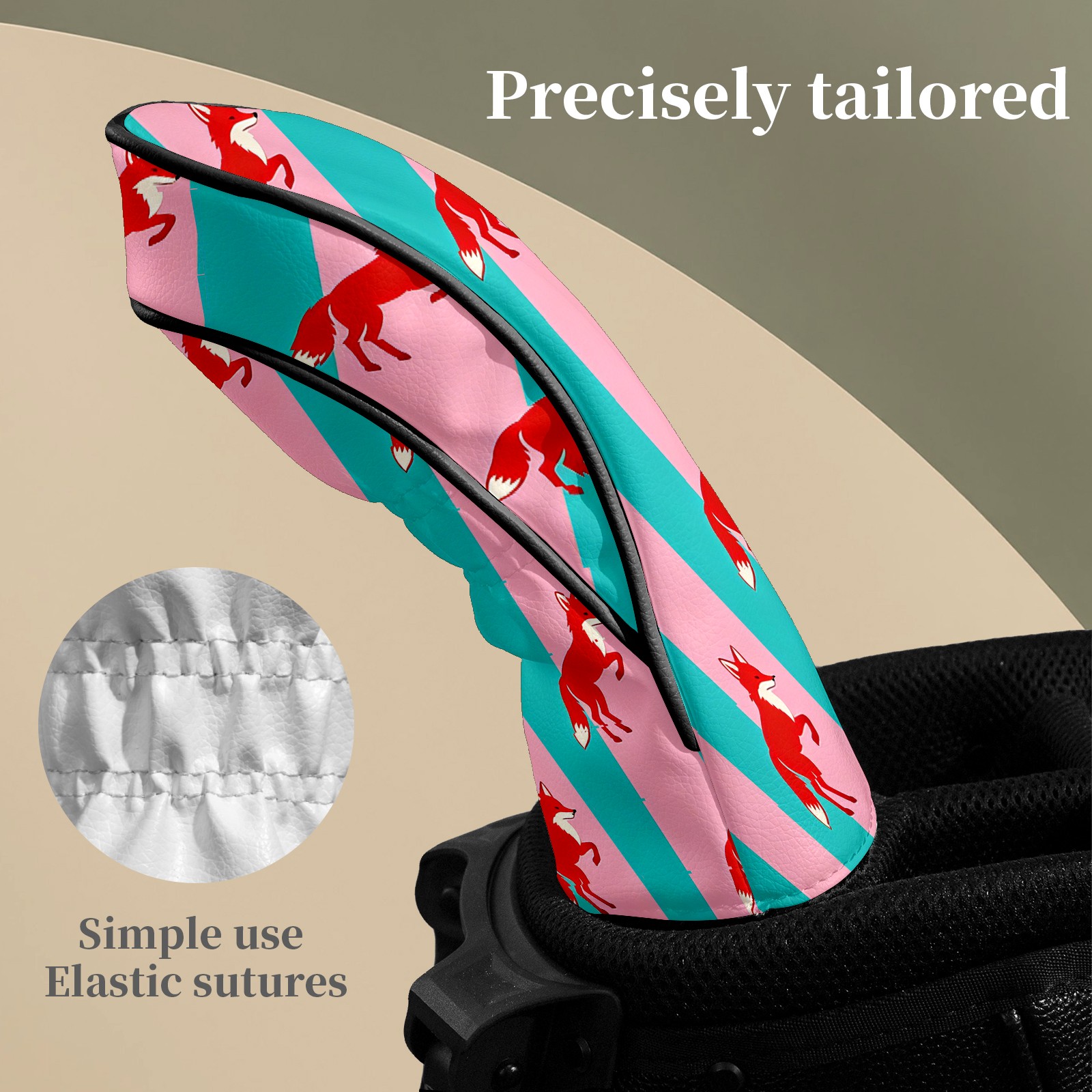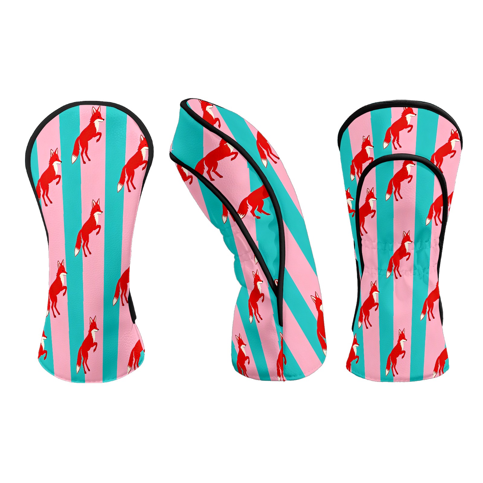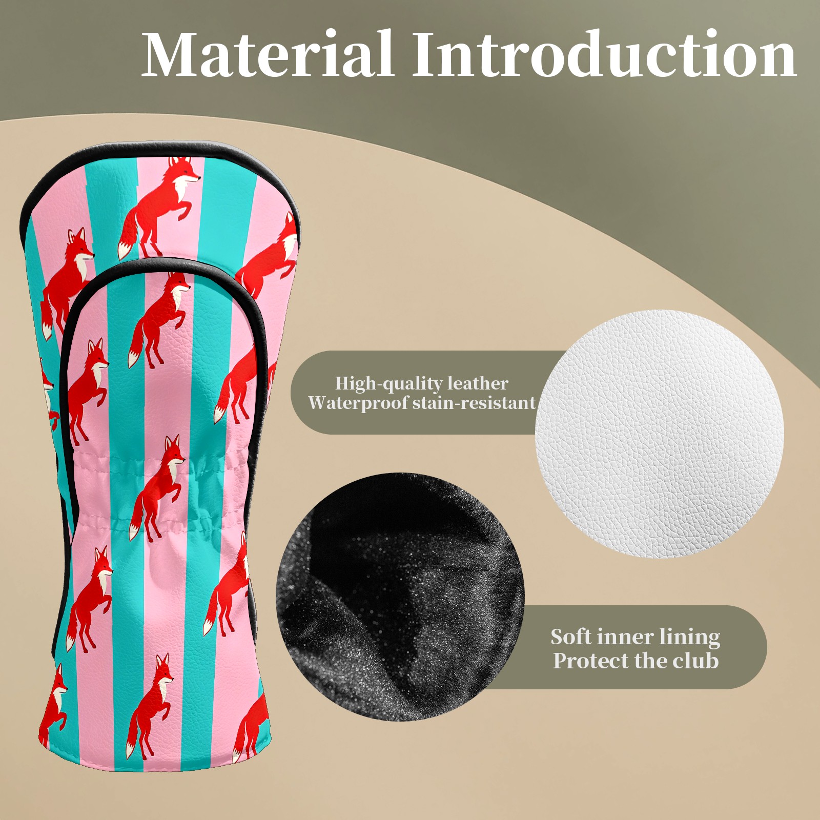 Golf Head Covers Leather Driver Head Cover, Premium Golf Club Covers with Soft Lining Fits Driver Hybrid Fairway 3/5 Wood Cover for Women Men Boys Girls (Red Fox Teal Pink)