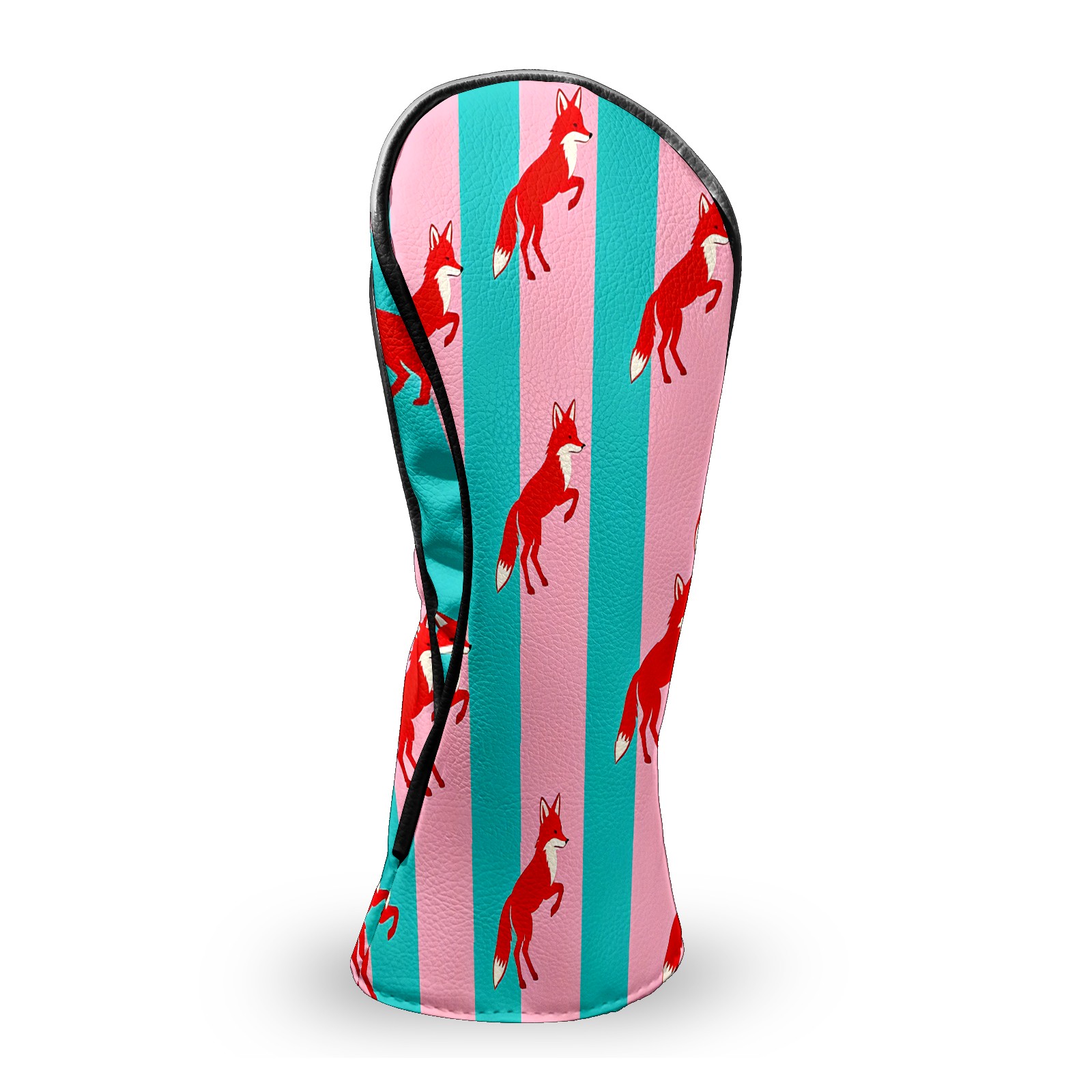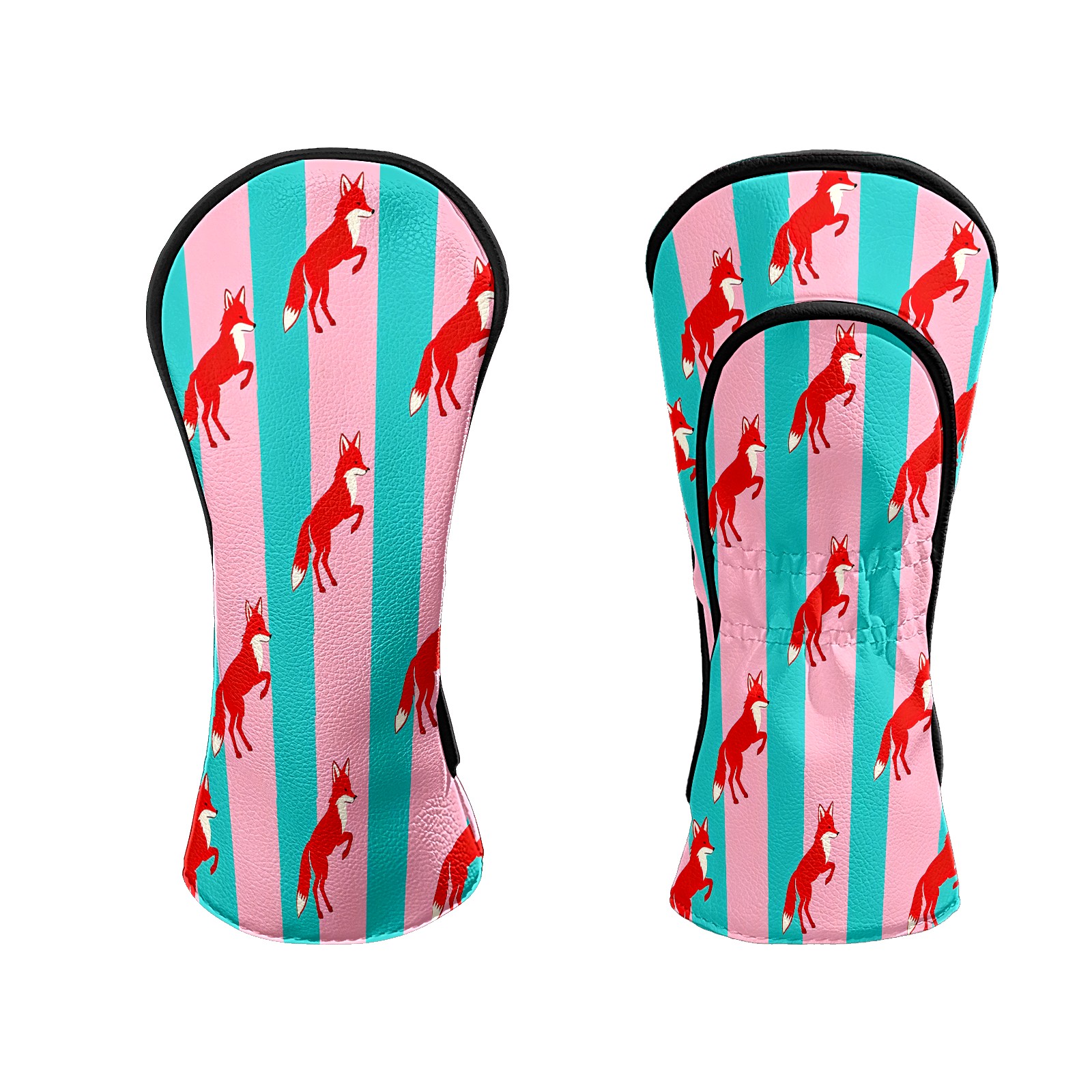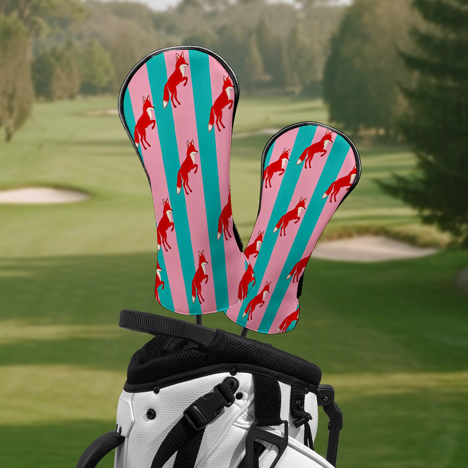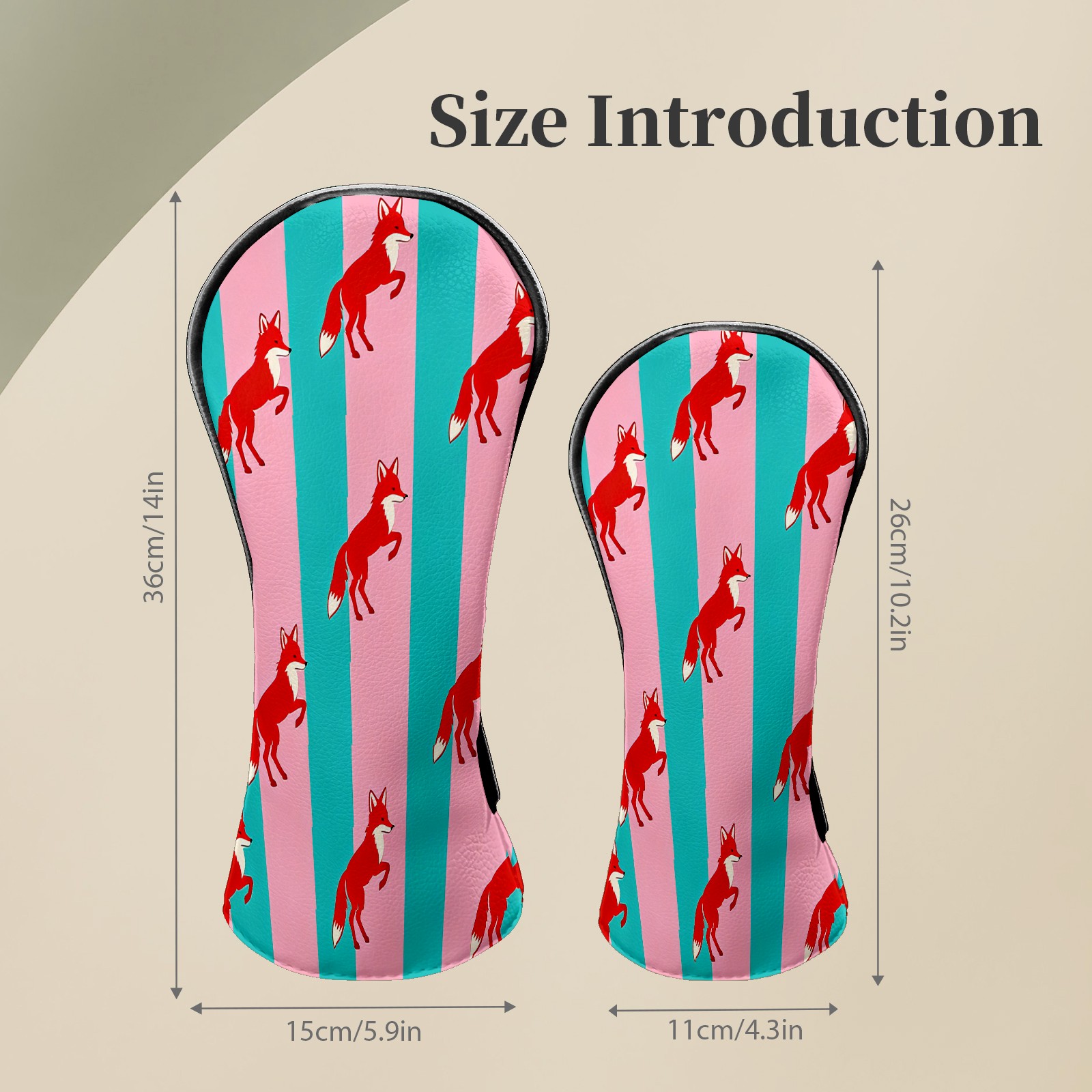 Golf Head Covers Leather Driver Head Cover, Premium Golf Club Covers with Soft Lining Fits Driver Hybrid Fairway 3/5 Wood Cover for Women Men Boys Girls (Red Fox Teal Pink)
