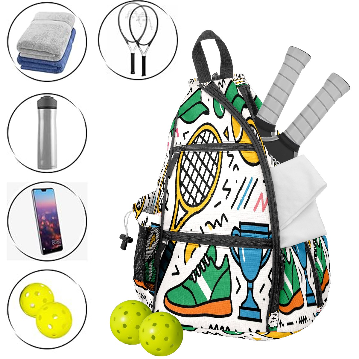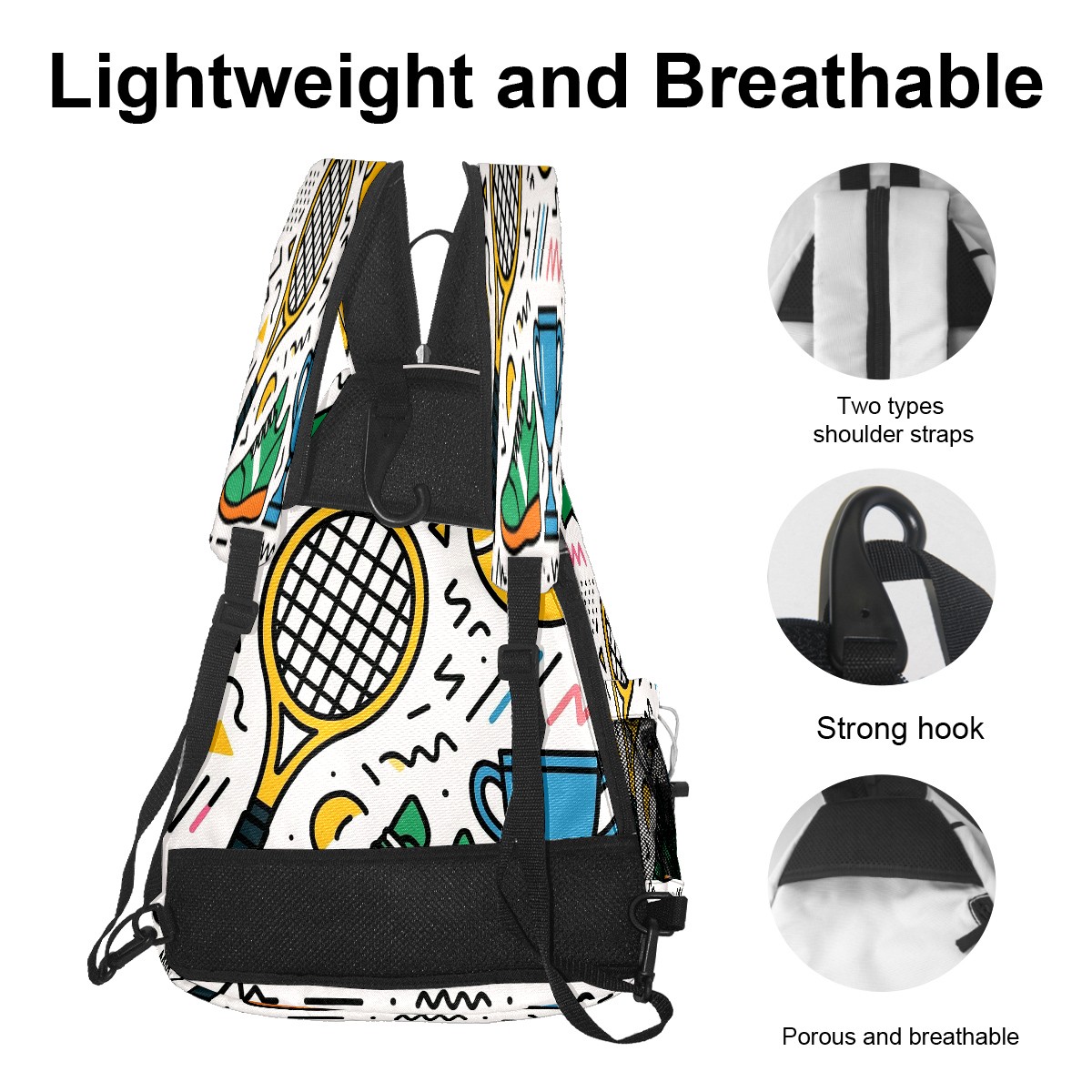 <p>If you’re tired of juggling scattered pickleball gear, or settling for a one-note sports bag that only works on the court — this <strong>exclusive original pickleball backpack</strong> made for you.</p><p><strong>Spacious Pickleball Storage</strong>: Fits 2 pickleball paddles + full game gear, no extra bags required</p><p><strong>Switchable Convertible Straps</strong>: 10-second switch between backpack/shoulder/crossbody, matches any activity</p><p><strong>Breathable &amp; Lightweight</strong>: No sticky sweat buildup, comfortable for long pickleball matches</p><p><strong>Exclusive Original Prints &amp; Durable</strong>: One-of-a-kind designs + scratch-resistant fabric, stylish &amp; long-lasting</p><p><strong>Multi-Scenario Versatile</strong>: Doubles as commute/short trip bag, 1 bag for all needs</p>