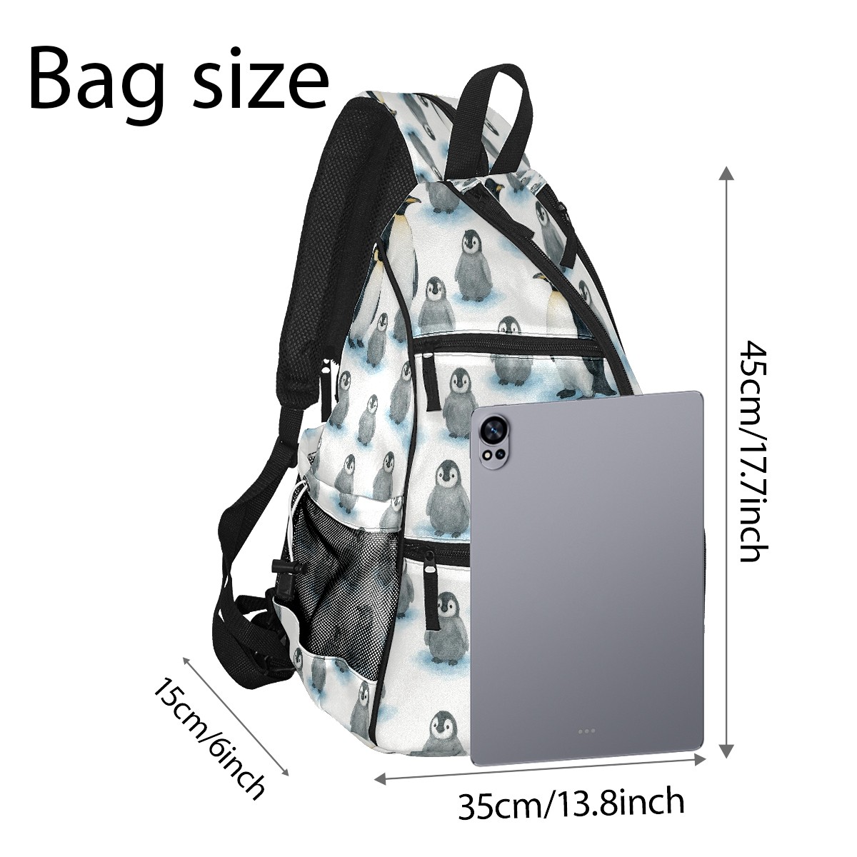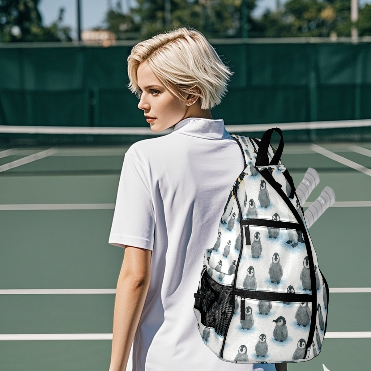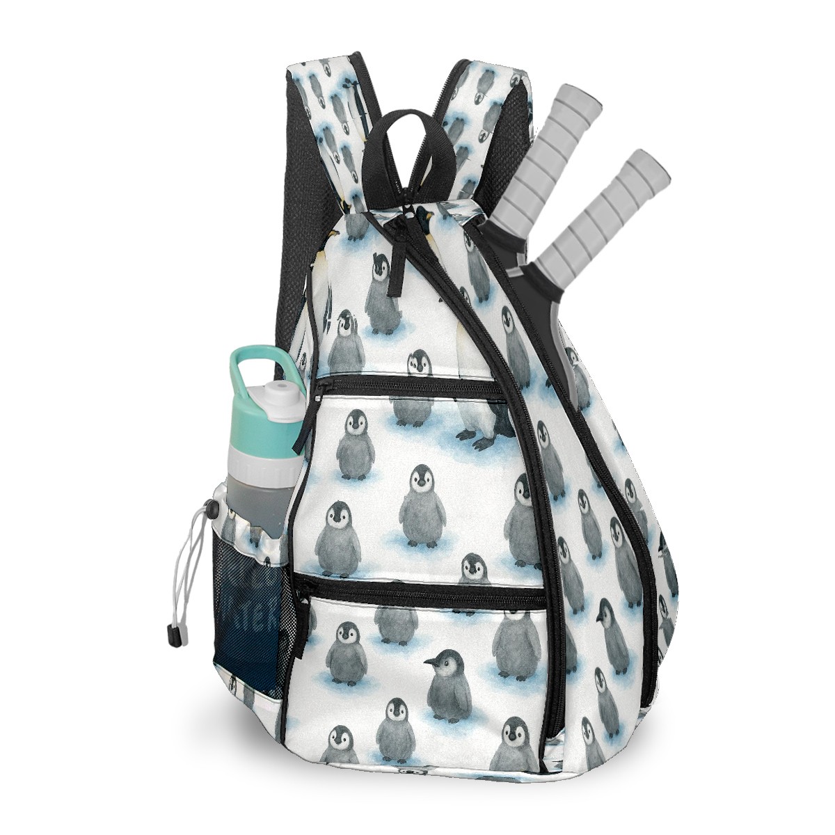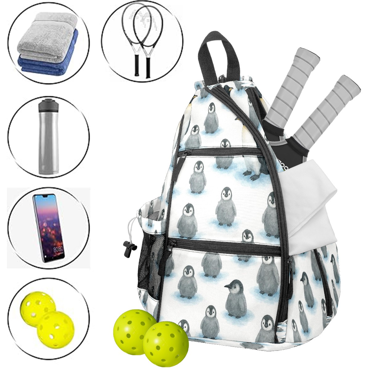 Counullo Pickleball Backpack - Convertible Shoulder Straps, Lightweight Breathable Cute Penguin Gray Bag, Fits 2 Paddles, Balls & Gear (6x13.8x17.7 in) | Gifts for Sports Lovers