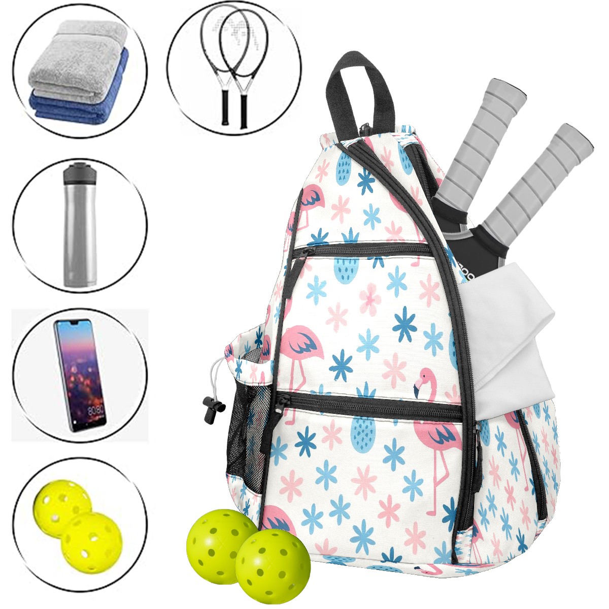 Counullo Pickleball Backpack - Convertible Shoulder Straps, Lightweight Breathable Flamingo Pineapple Pink Bag, Fits 2 Paddles, Balls & Gear (6x13.8x17.7 in) | Gifts for Sports Lovers