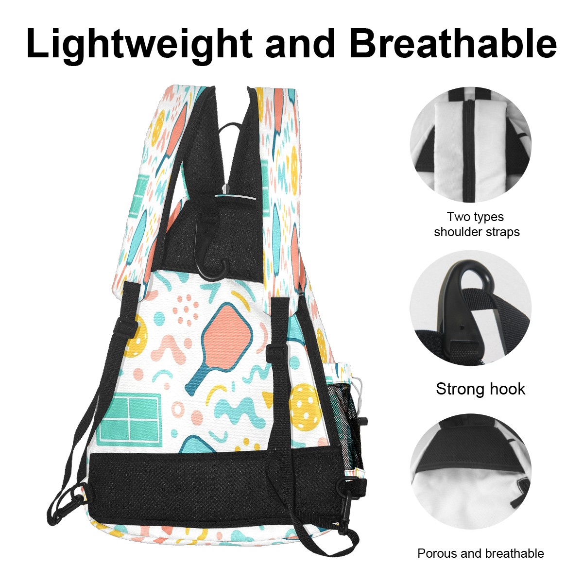 <p>If you’re tired of juggling scattered pickleball gear, or settling for a one-note sports bag that only works on the court — this <strong>exclusive original pickleball backpack</strong> made for you.</p><p><strong>Spacious Pickleball Storage</strong>: Fits 2 pickleball paddles + full game gear, no extra bags required</p><p><strong>Switchable Convertible Straps</strong>: 10-second switch between backpack/shoulder/crossbody, matches any activity</p><p><strong>Breathable &amp; Lightweight</strong>: No sticky sweat buildup, comfortable for long pickleball matches</p><p><strong>Exclusive Original Prints &amp; Durable</strong>: One-of-a-kind designs + scratch-resistant fabric, stylish &amp; long-lasting</p><p><strong>Multi-Scenario Versatile</strong>: Doubles as commute/short trip bag, 1 bag for all needs</p>