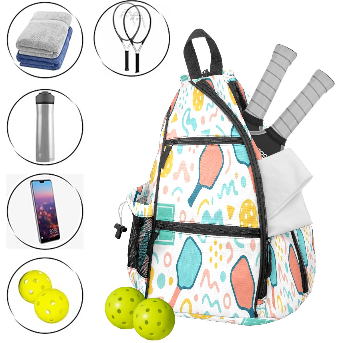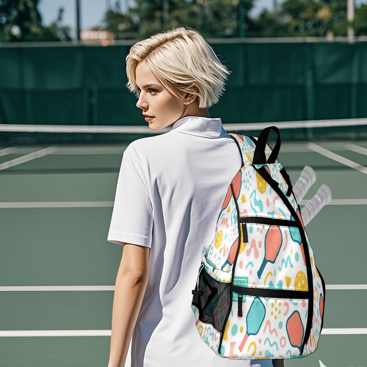 • <p>If you’re tired of juggling scattered pickleball gear, or settling for a one-note sports bag that only works on the court — this <strong>exclusive original pickleball backpack</strong> made for you.</p><p><strong>Spacious Pickleball Storage</strong>: Fits 2 pickleball paddles + full game gear, no extra bags required</p><p><strong>Switchable Convertible Straps</strong>: 10-second switch between backpack/shoulder/crossbody, matches any activity</p><p><strong>Breathable &amp; Lightweight</strong>: No sticky sweat buildup, comfortable for long pickleball matches</p><p><strong>Exclusive Original Prints &amp; Durable</strong>: One-of-a-kind designs + scratch-resistant fabric, stylish &amp; long-lasting</p><p><strong>Multi-Scenario Versatile</strong>: Doubles as commute/short trip bag, 1 bag for all needs</p>